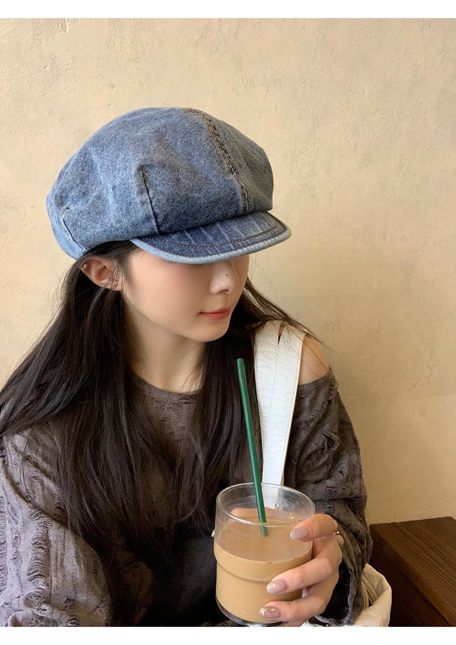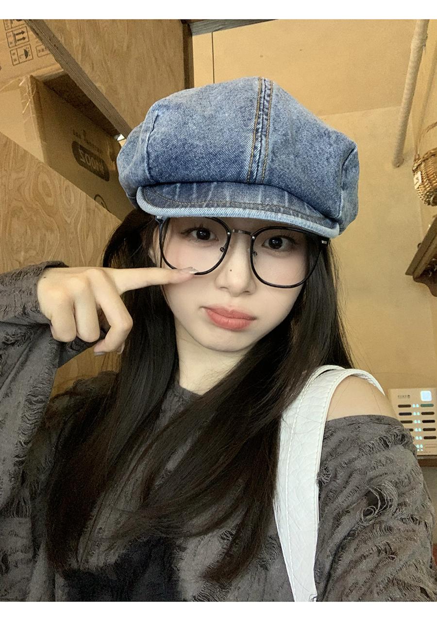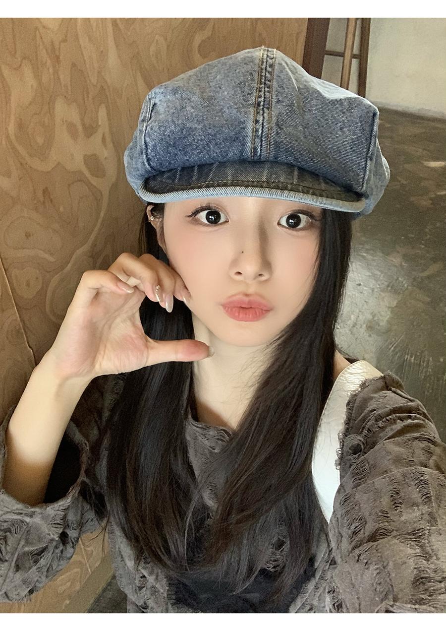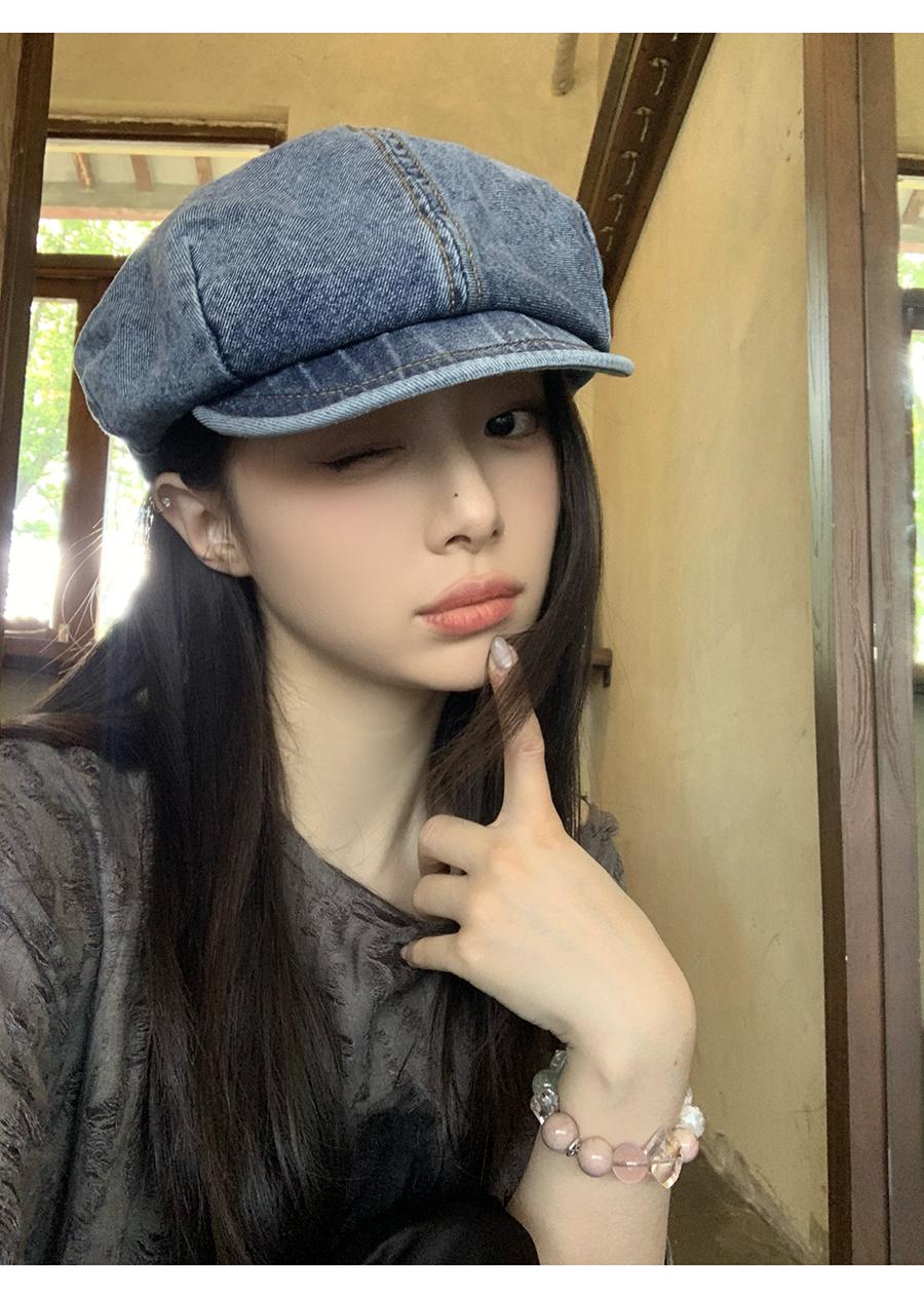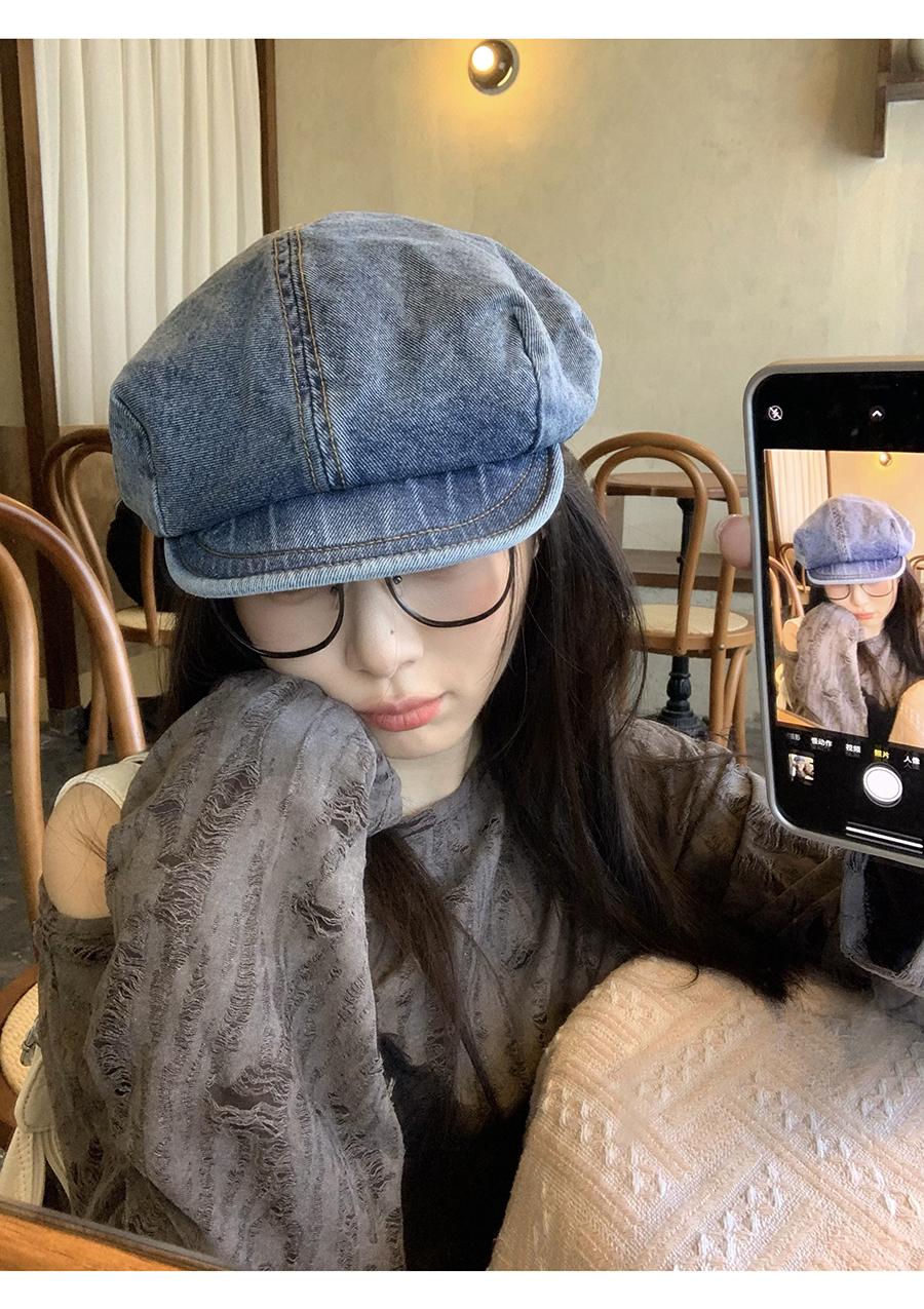 Boina de mezclilla lavada vintage estilo japonés para mujer, primavera y otoño, cabeza grande, ala corta, que muestra la cara, pequeña, combinable con todo, arte, periódico, sombrero infantil