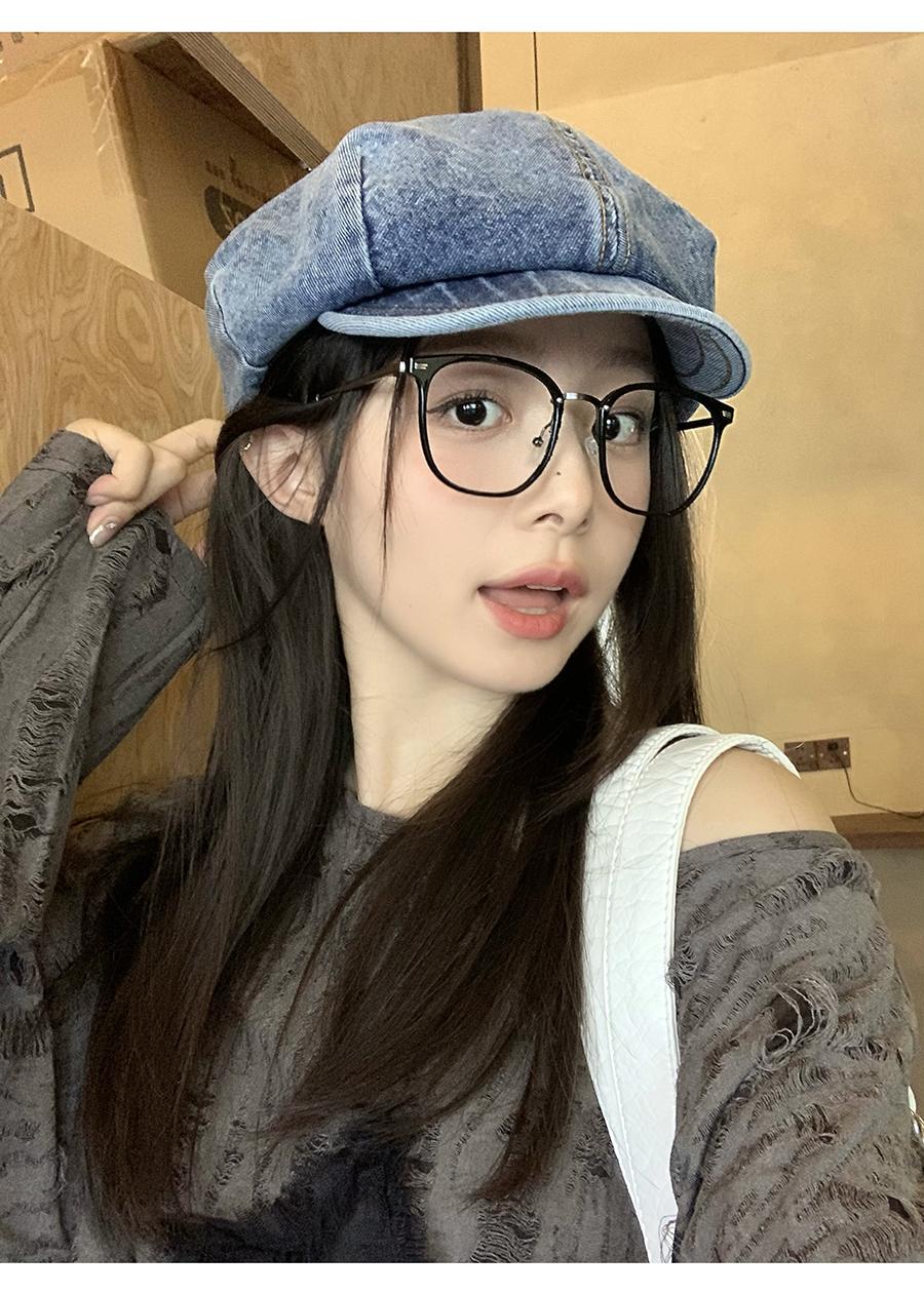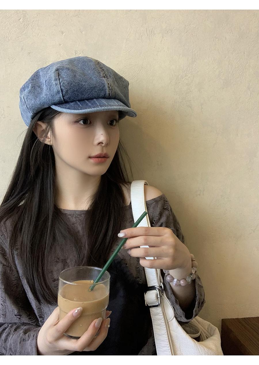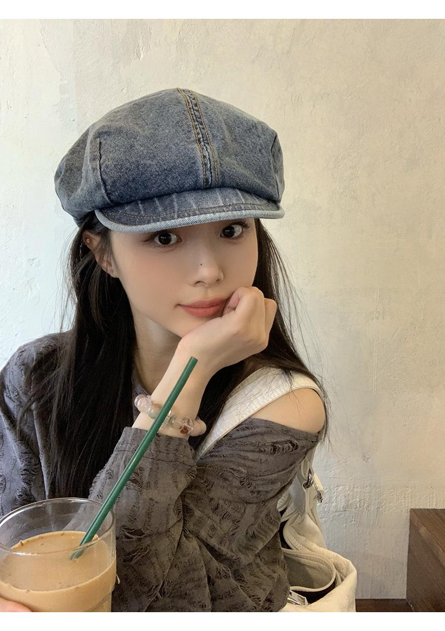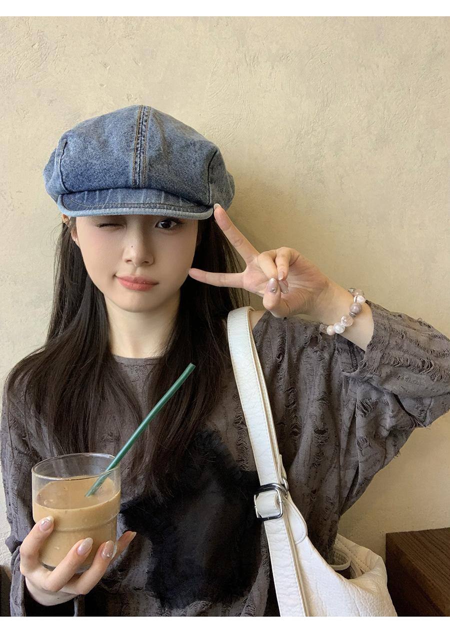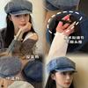 Boina de mezclilla lavada vintage estilo japonés para mujer, primavera y otoño, cabeza grande, ala corta, que muestra la cara, pequeña, combinable con todo, arte, periódico, sombrero infantil