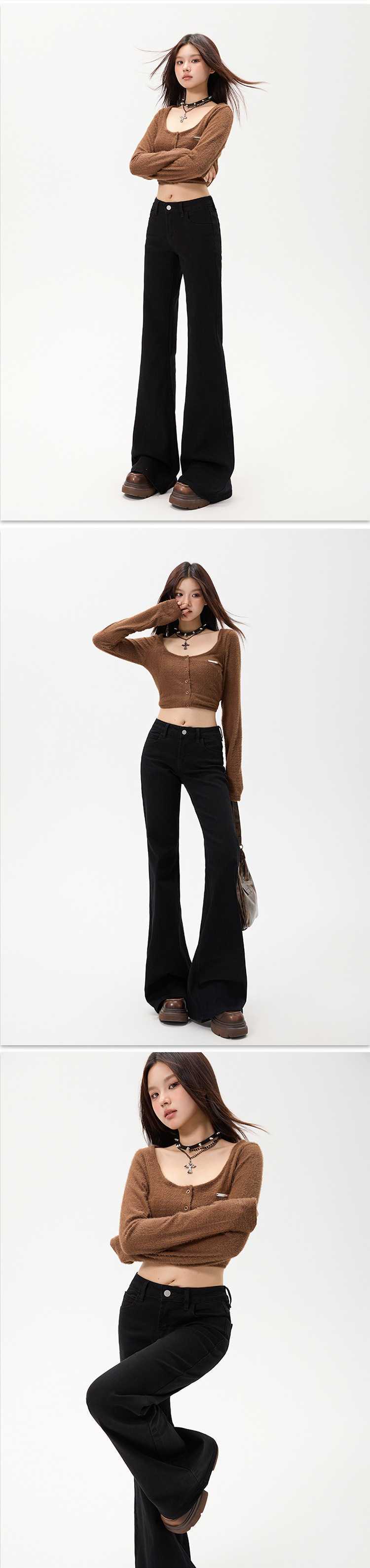 Vaqueros de cintura baja estilo americano High Street, otoño e invierno, vaqueros suaves, recién llegados, Micro-La Jeans, pantalones elásticos de aspecto ajustado para mujer
