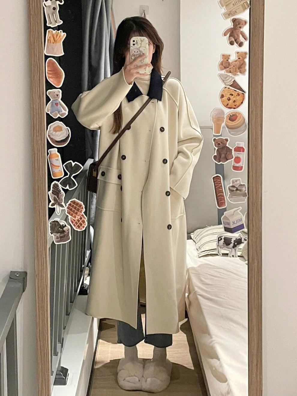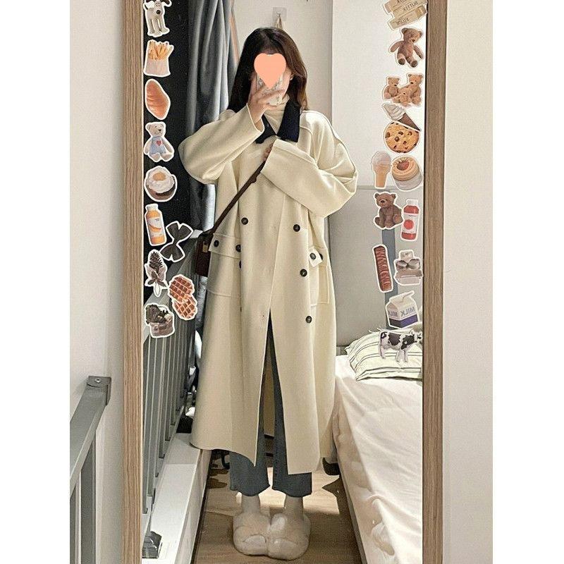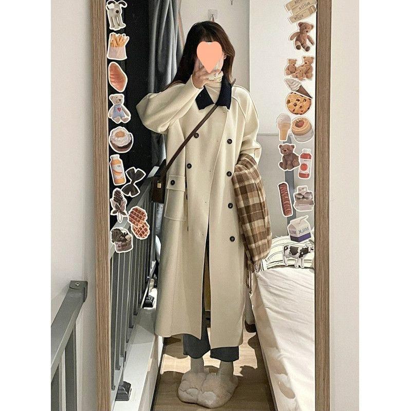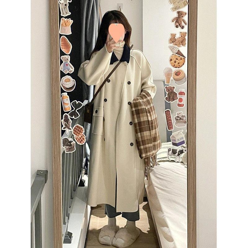 Abrigo de lana suave para mujer estilo coreano, versátil, con solapa, abrigo de lana elegante pequeño para mujer de longitud media