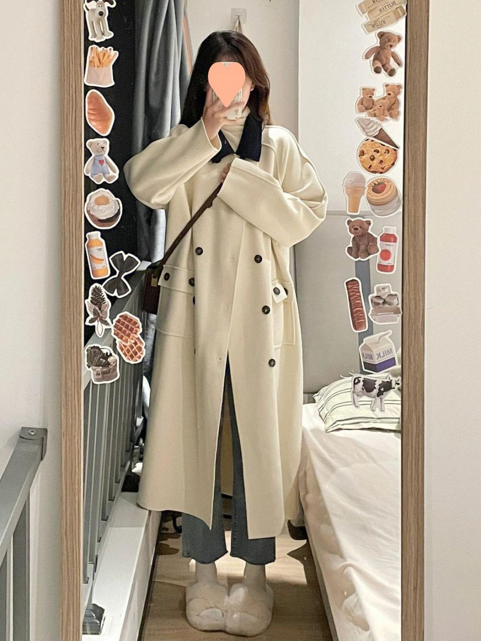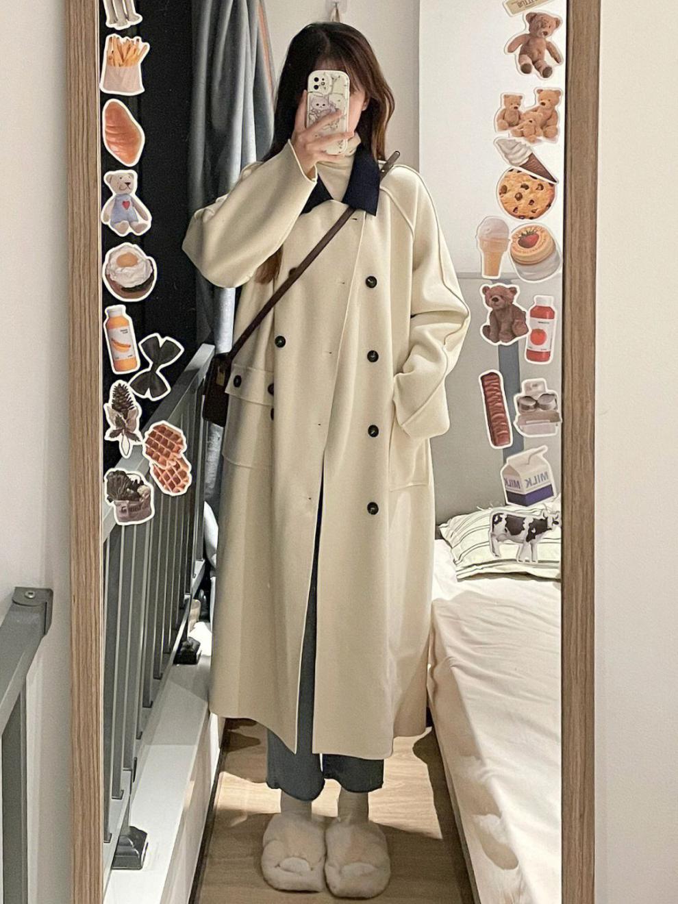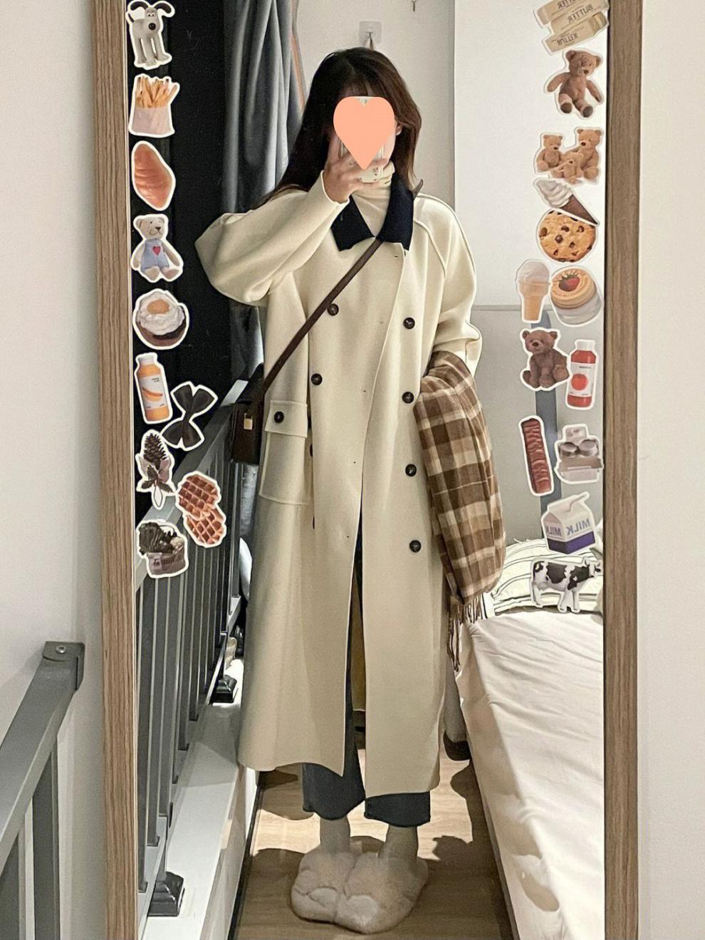Abrigo de lana suave para mujer estilo coreano, versátil, con solapa, abrigo de lana elegante pequeño para mujer de longitud media