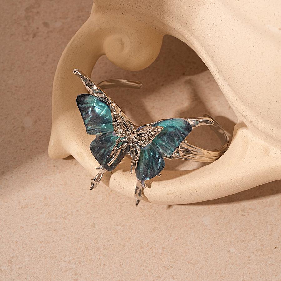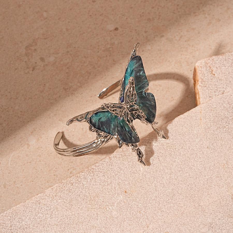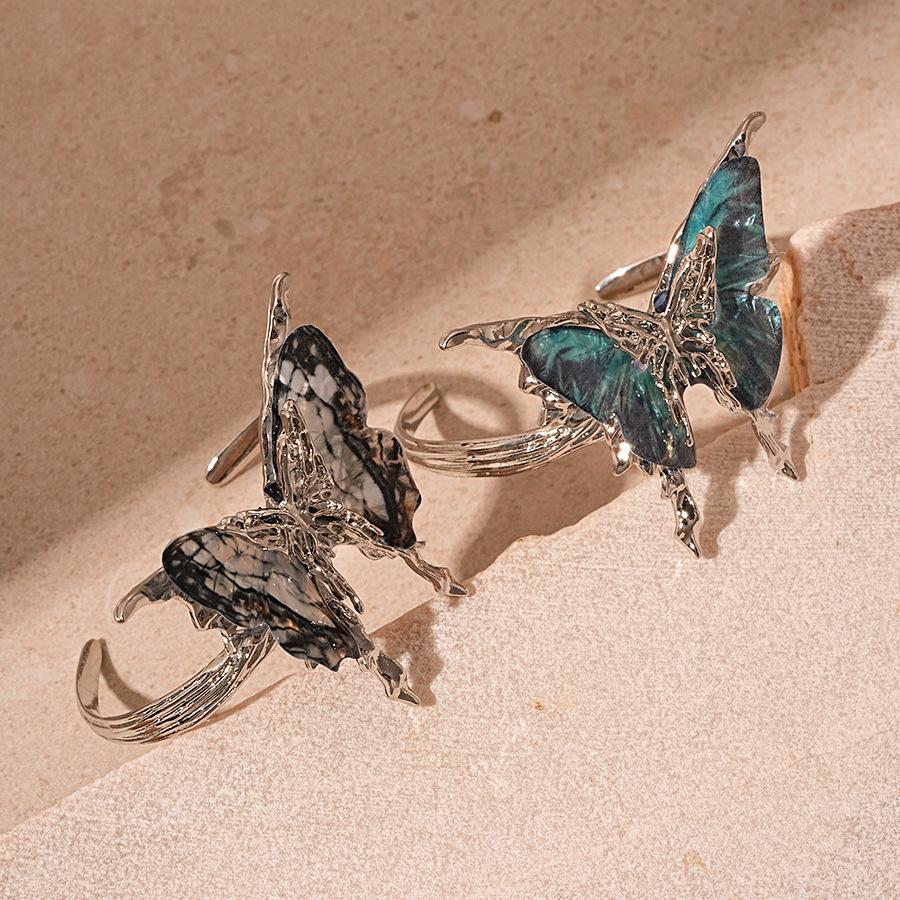 Pulsera Abierta Plisada Multicapa de Resina Vintage de Mariposa Personalidad Nicho Europea y Americana Elegante de Alta Gama Geométrica para Mujer
