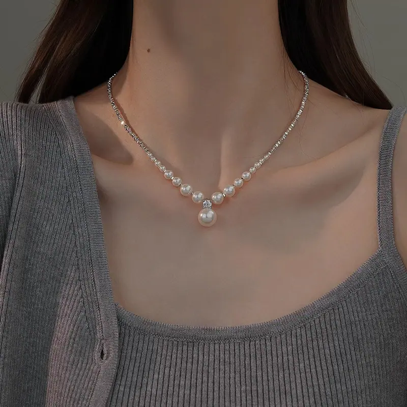 Collar de Plata Esterlina S925 Gradiente Diamante Sonrisa Perla Shijia Plata Rota Gipsófila para Mujer Lujo Ligero