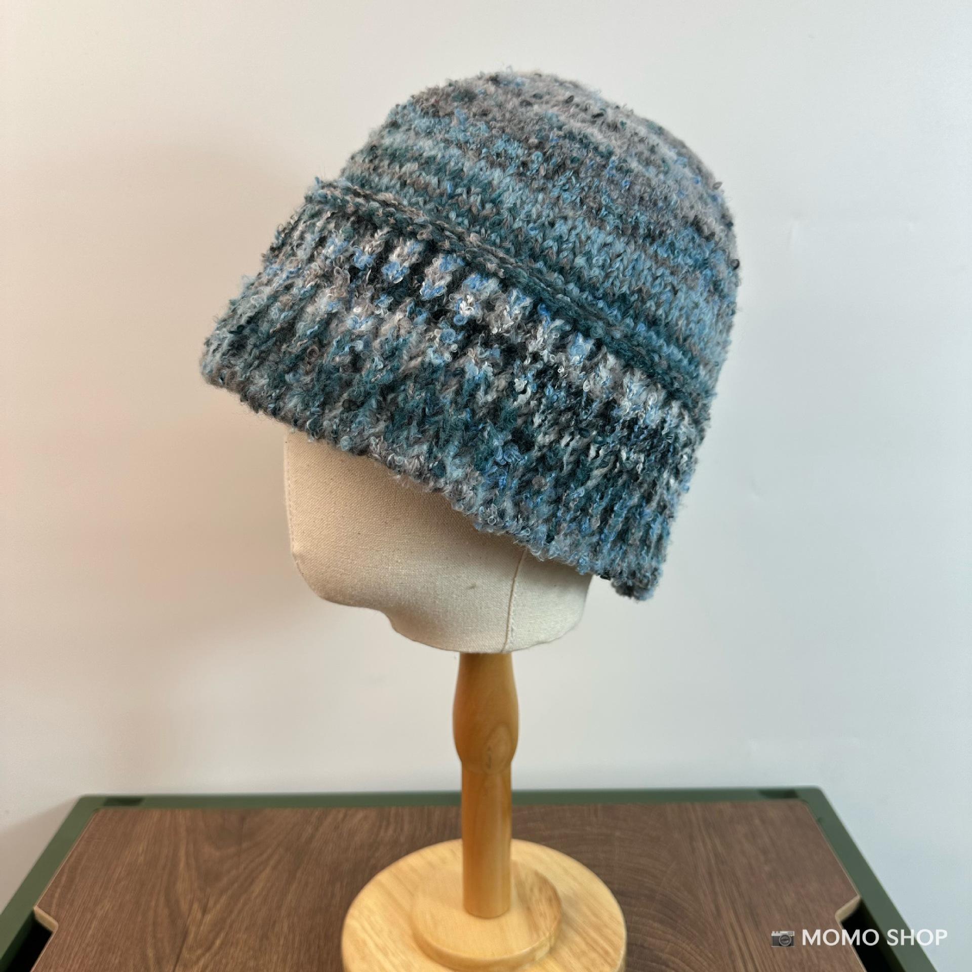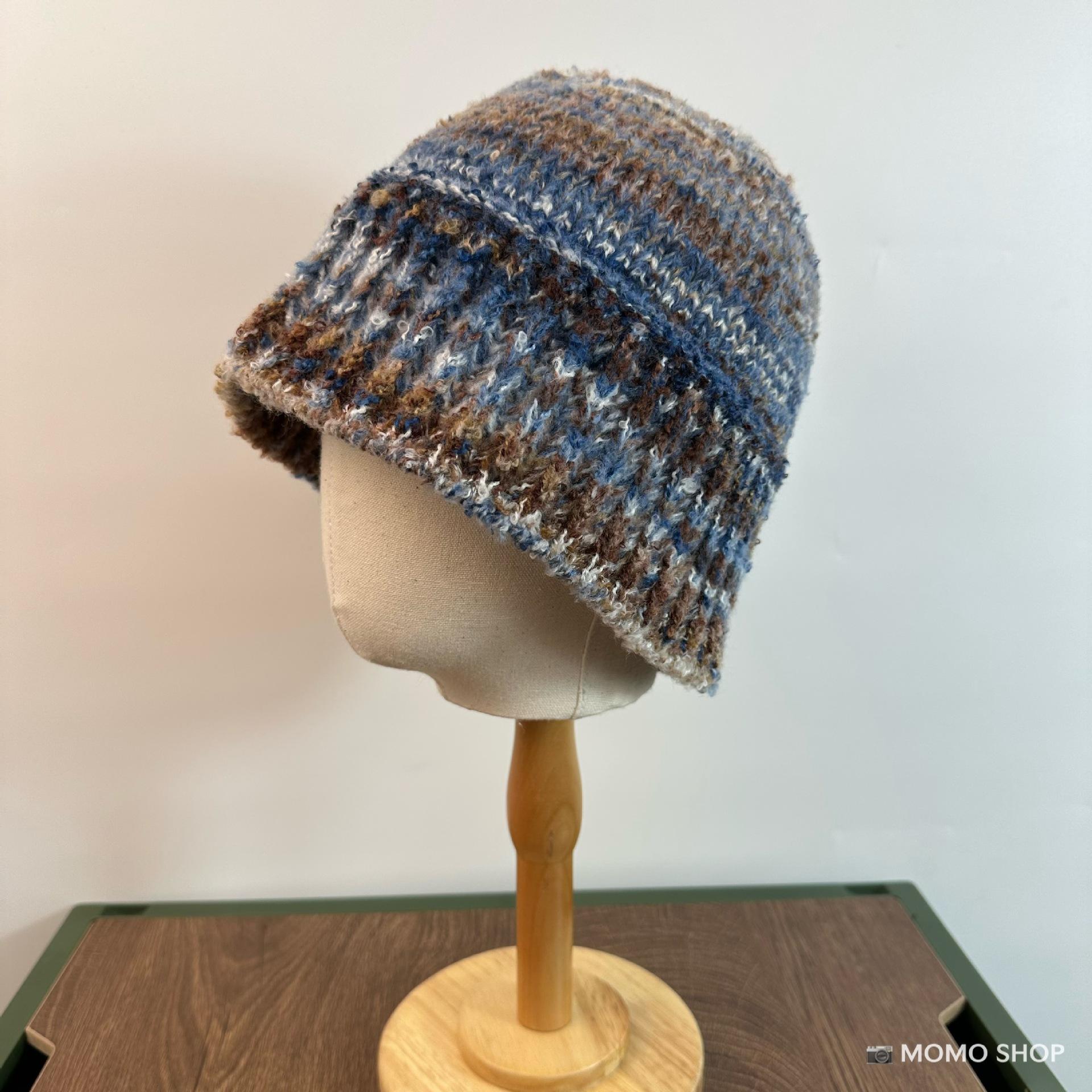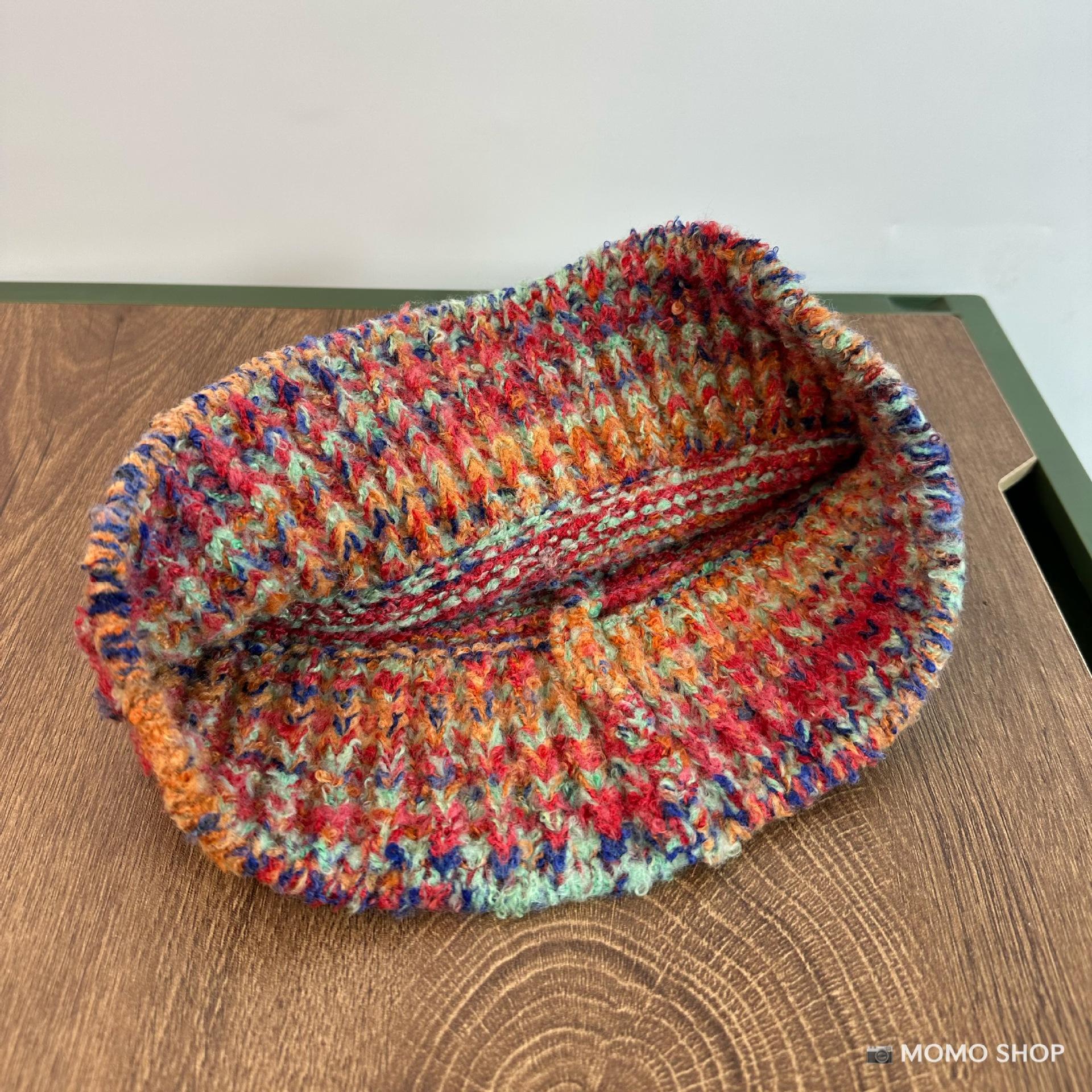 Gorro de pescador de punto pequeño con diseño de nicho, de lana con degradado de color retro, para mujer, otoño e invierno, cálido, con protección para las orejas