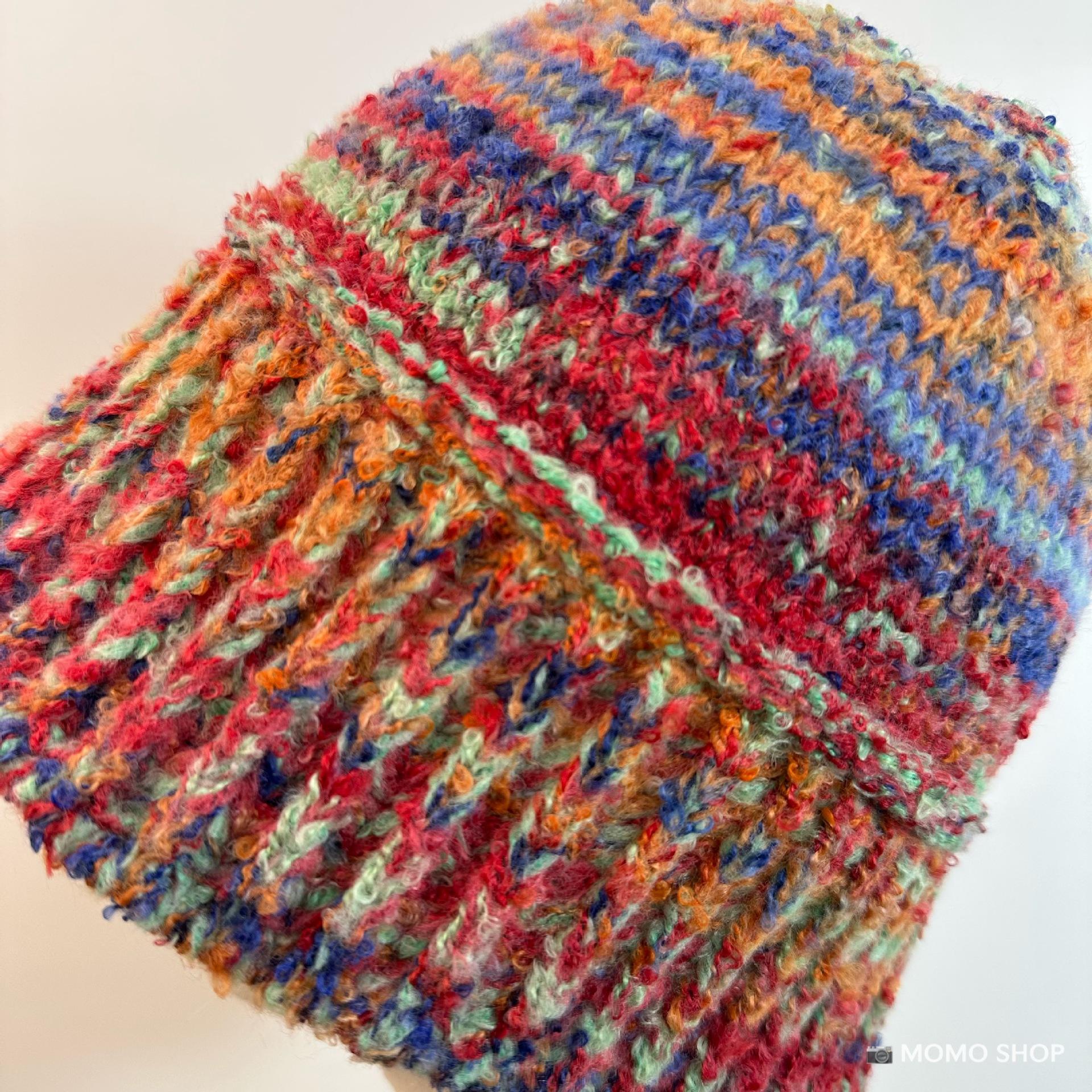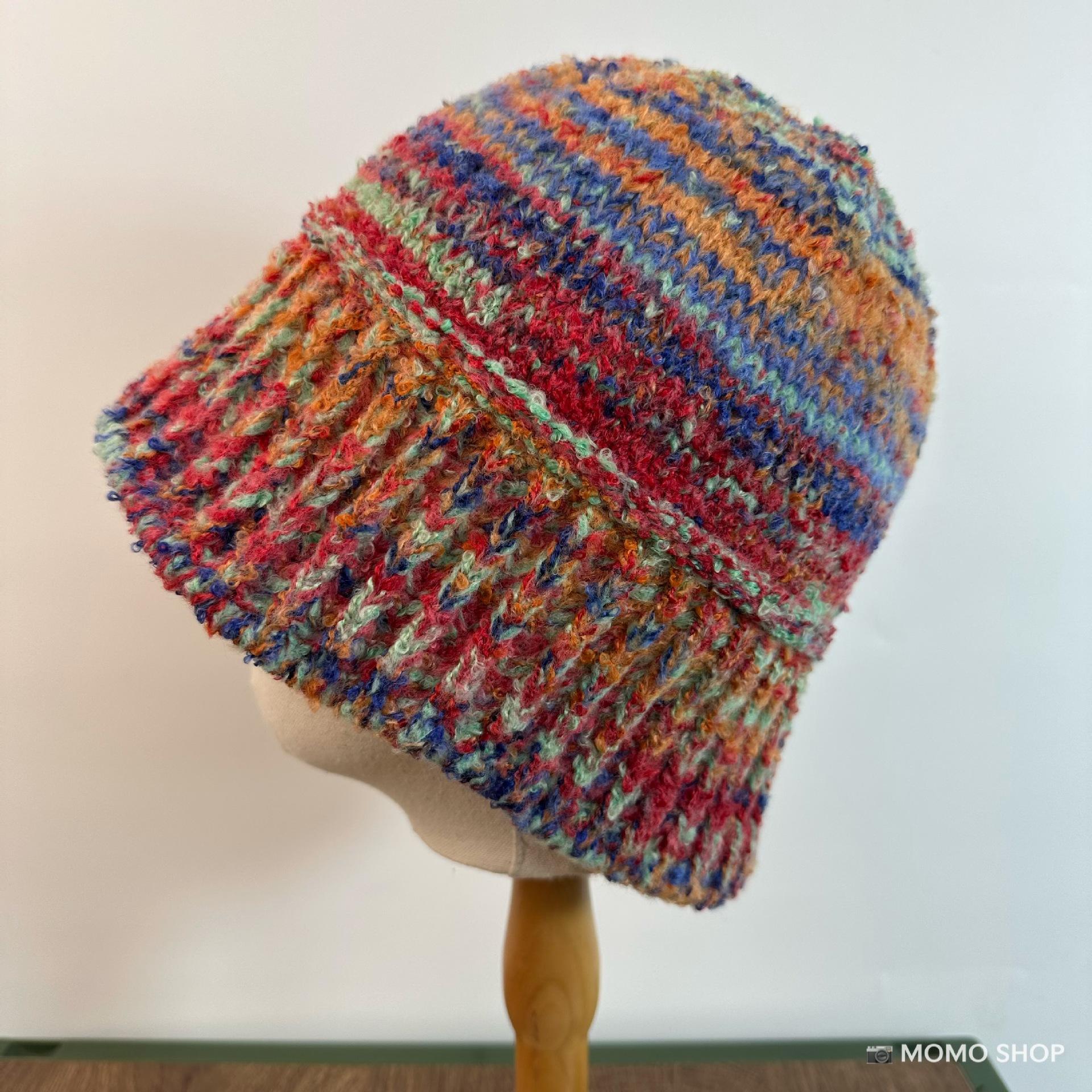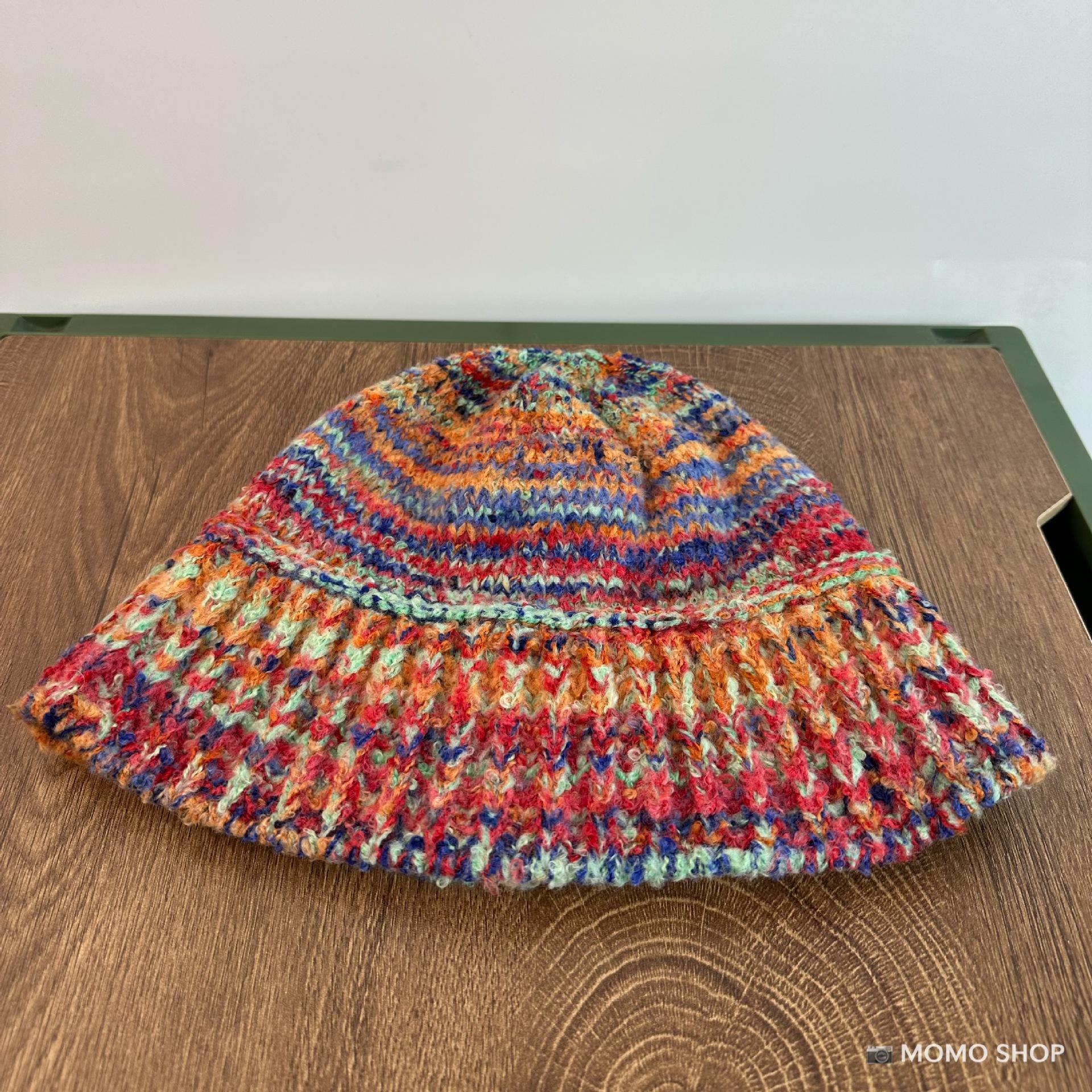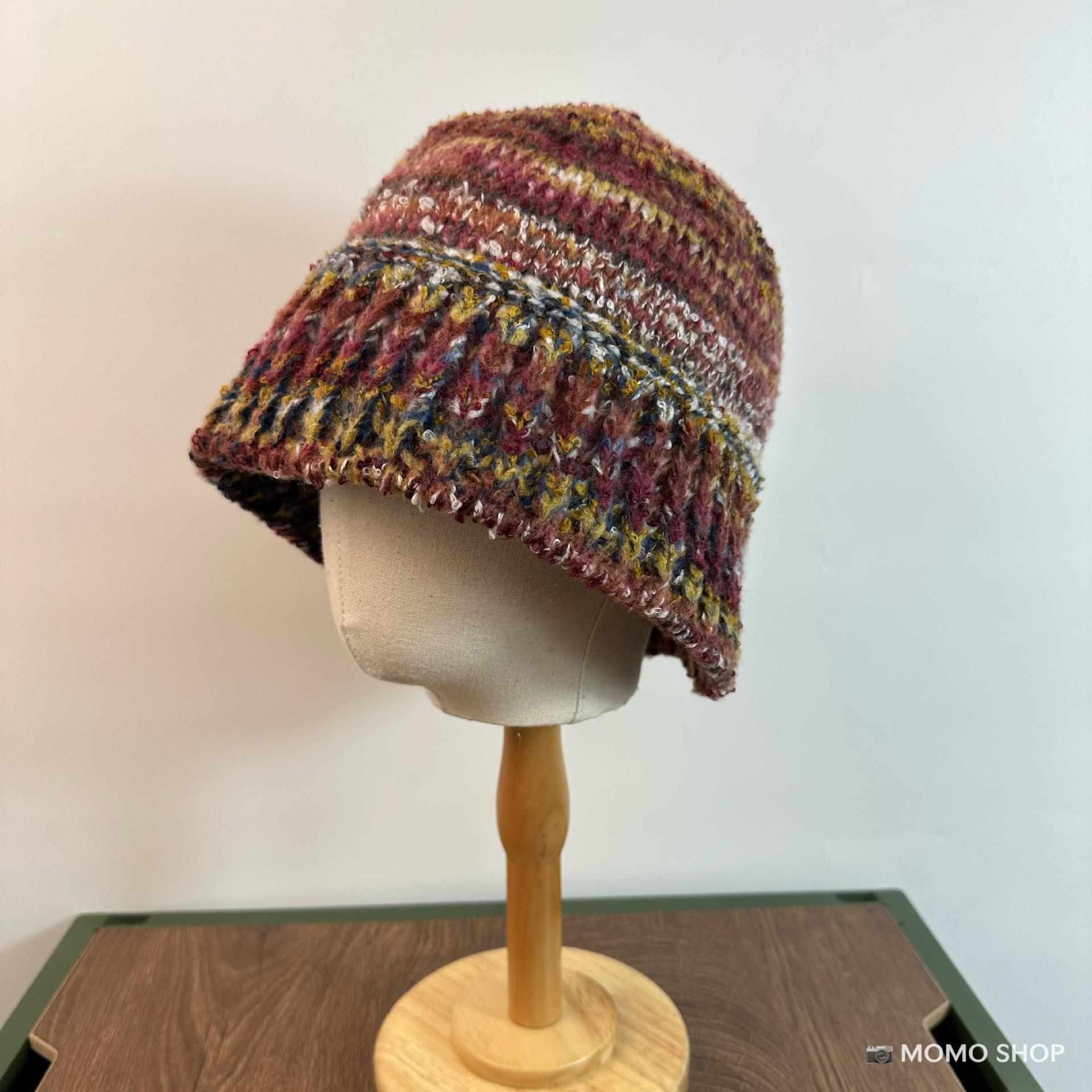 Gorro de pescador de punto pequeño con diseño de nicho, de lana con degradado de color retro, para mujer, otoño e invierno, cálido, con protección para las orejas