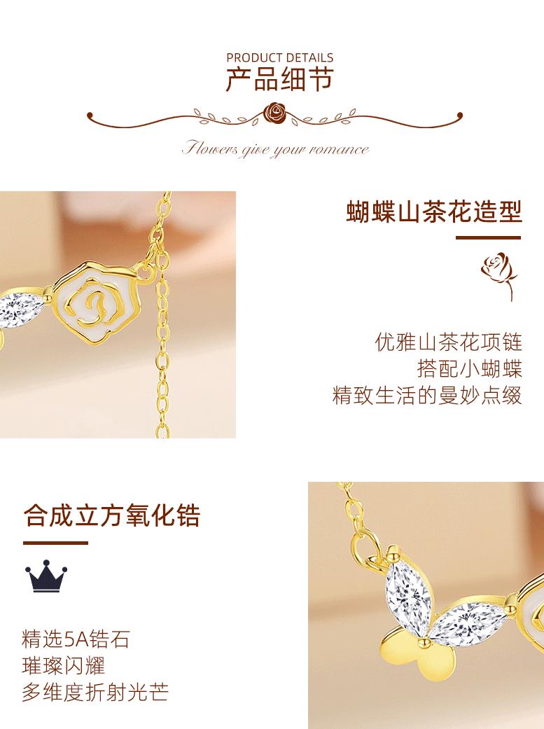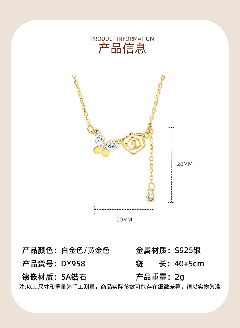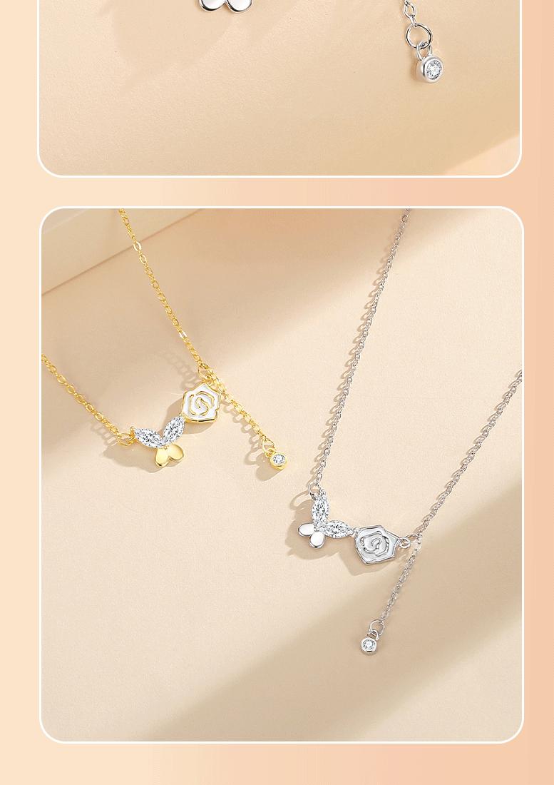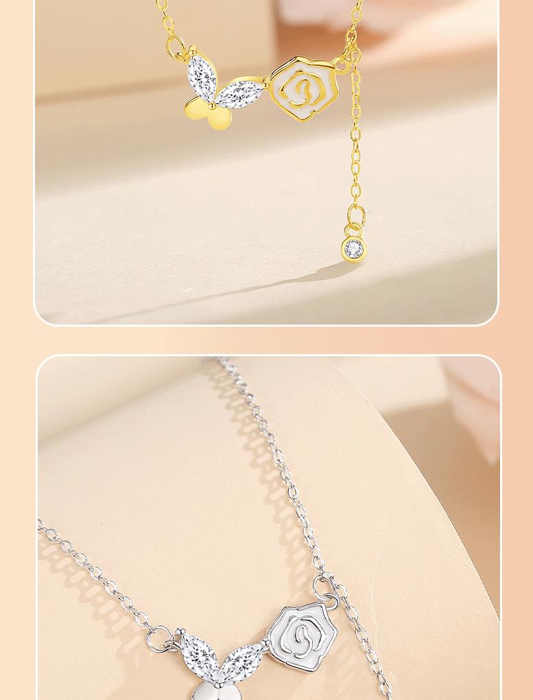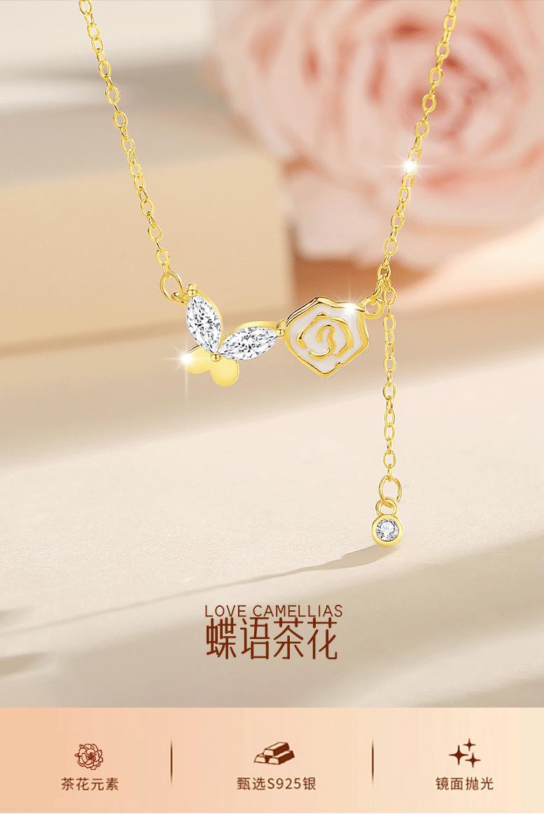 Collar con borla de mariposa y camelia de estilo japonés y coreano en plata de ley S925, ligero, lujoso, con colgante de flor de alta gama y cadena para clavícula.