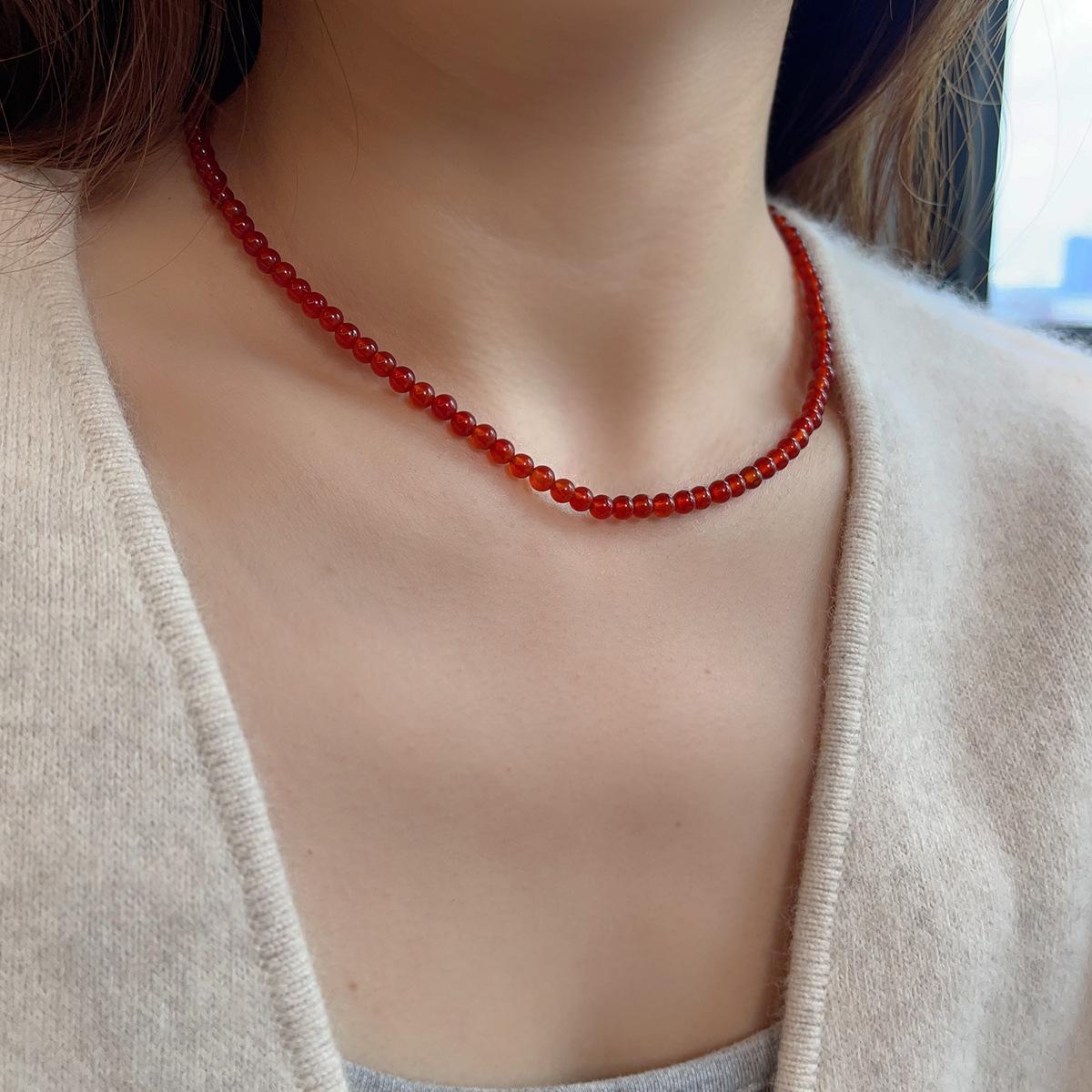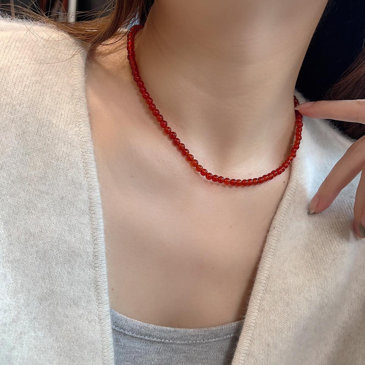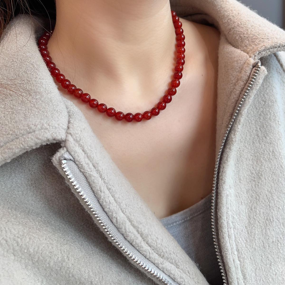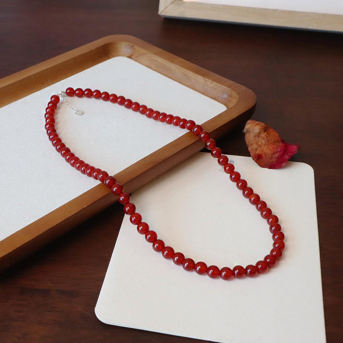 Nuevo collar de ágata roja natural china con cuentas de plata de ley 925 para clavícula, collar a juego para otoño e invierno para mujer.