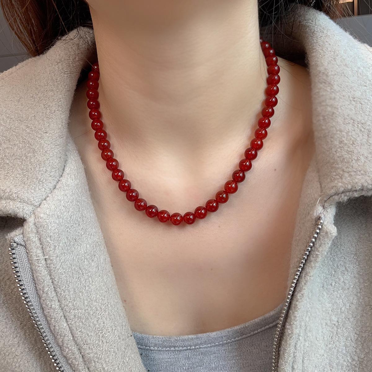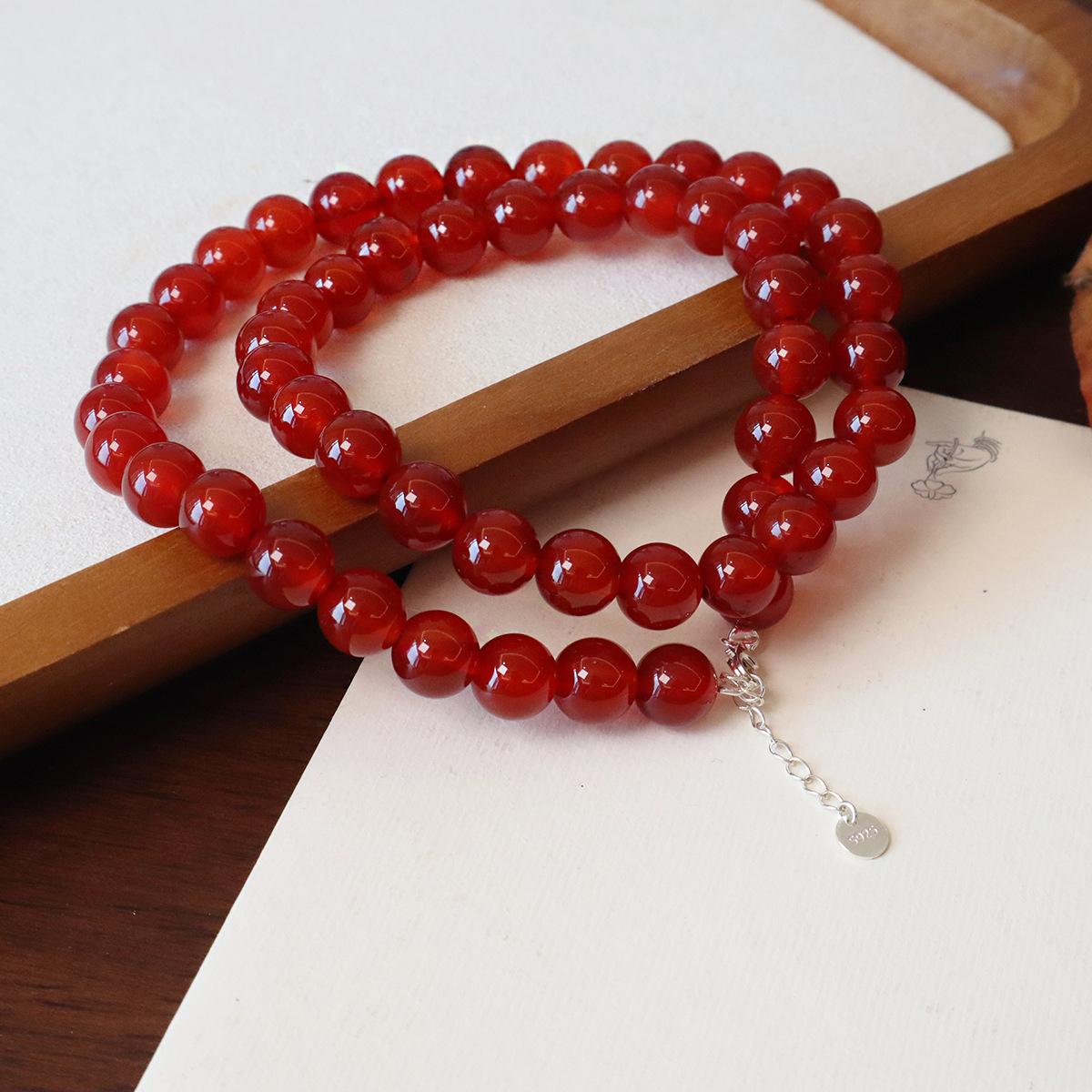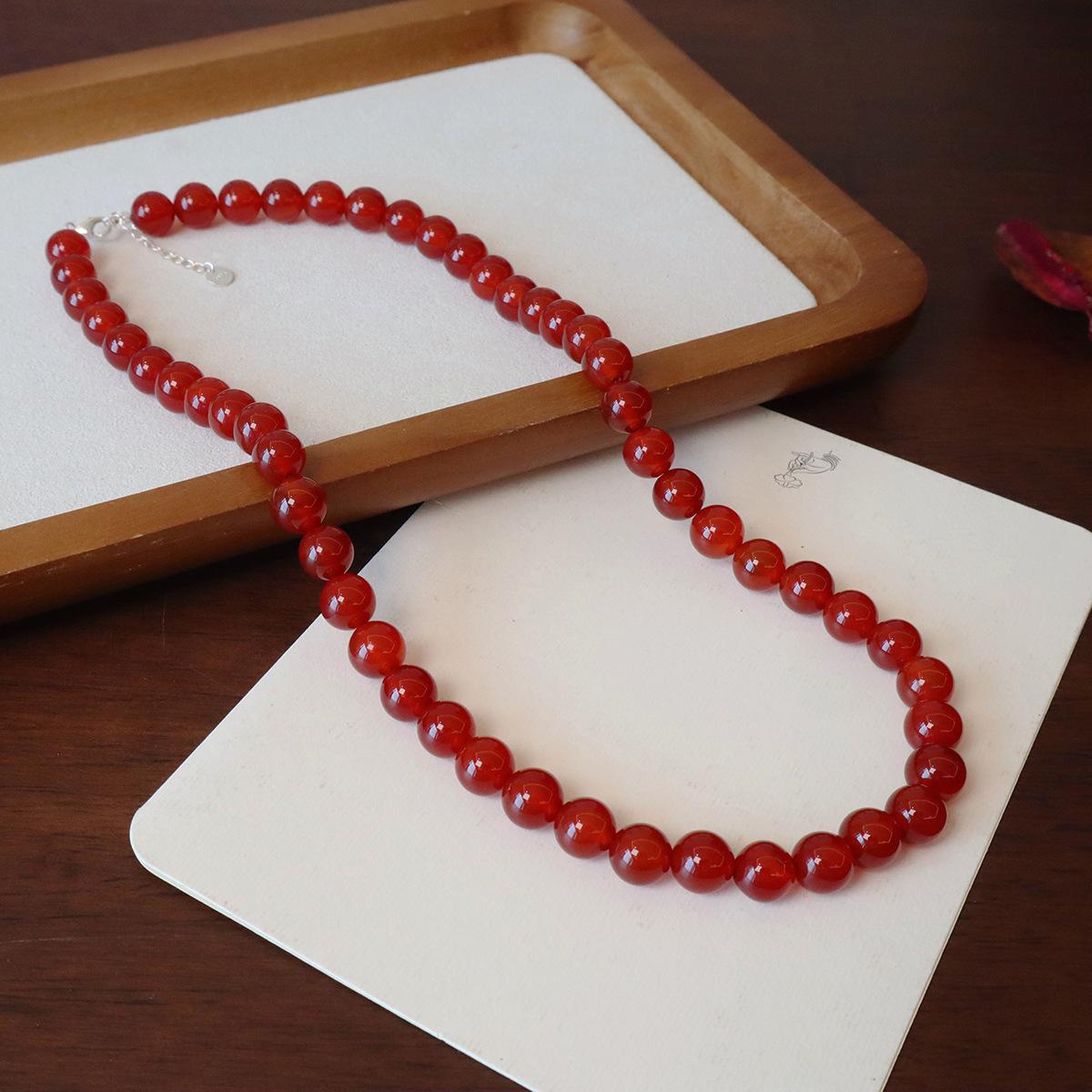 Nuevo collar de ágata roja natural china con cuentas de plata de ley 925 para clavícula, collar a juego para otoño e invierno para mujer.