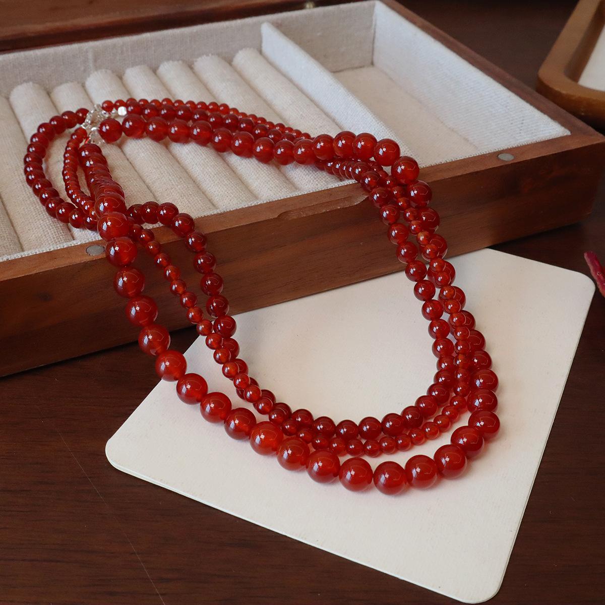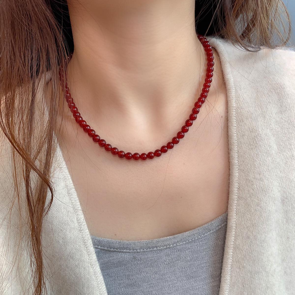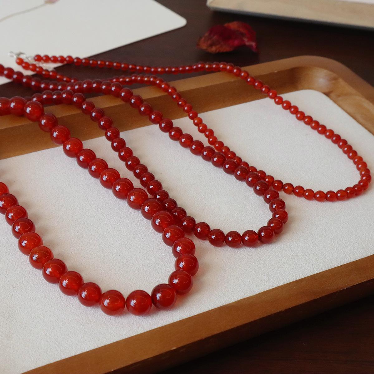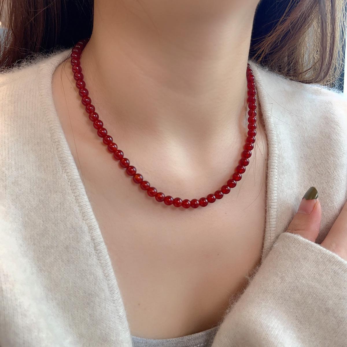 Nuevo collar de ágata roja natural china con cuentas de plata de ley 925 para clavícula, collar a juego para otoño e invierno para mujer.