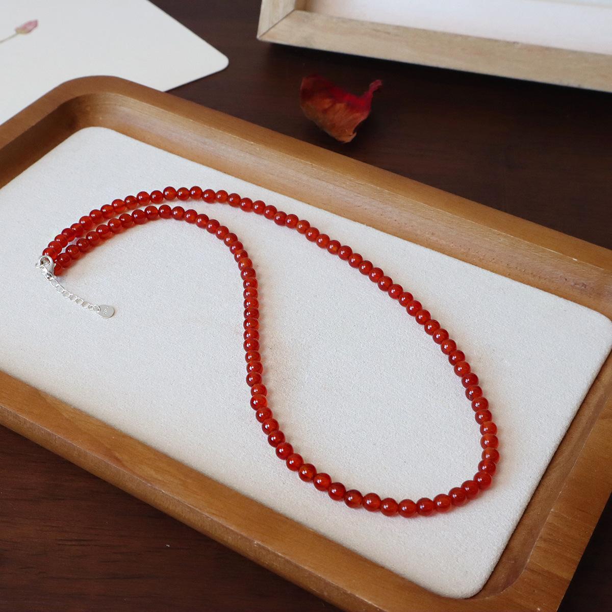4mm natural red agate sterling silver necklace