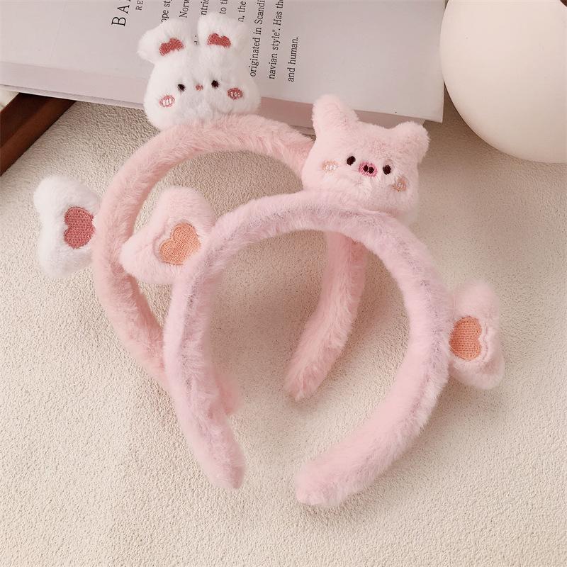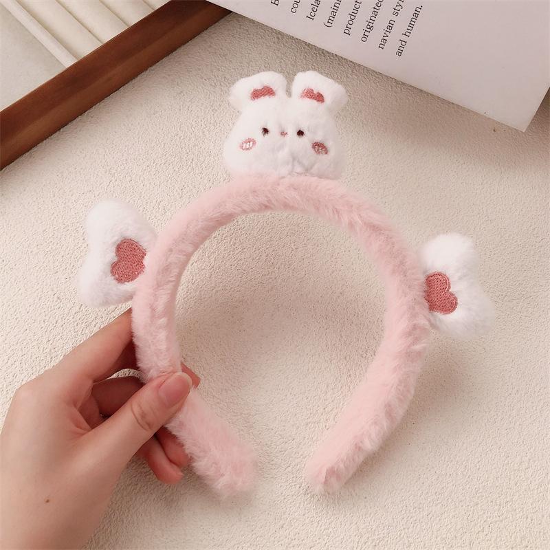 Banda para el cabello prensada con dibujos animados para lavarse la cara, estilo coreano, para mujer, con adorable oso y conejo, antideslizante, para el cabello