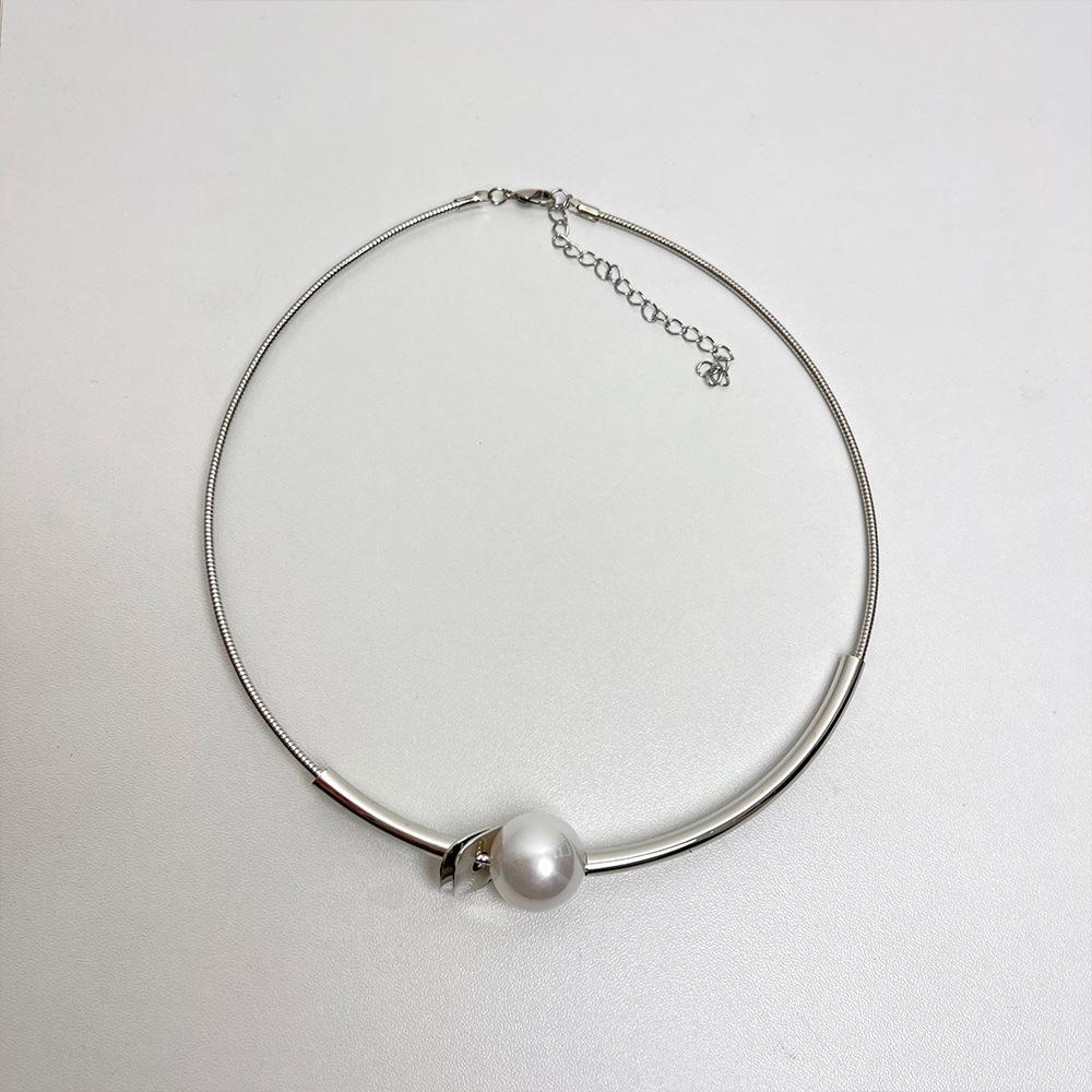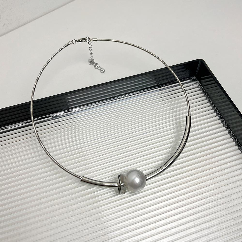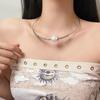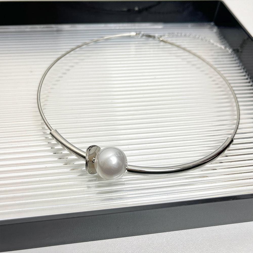 Gargantilla de metal con perlas estilo retro francés, ligera, de lujo, elegante, de alta gama, con diseño de nicho y cadena para clavícula.