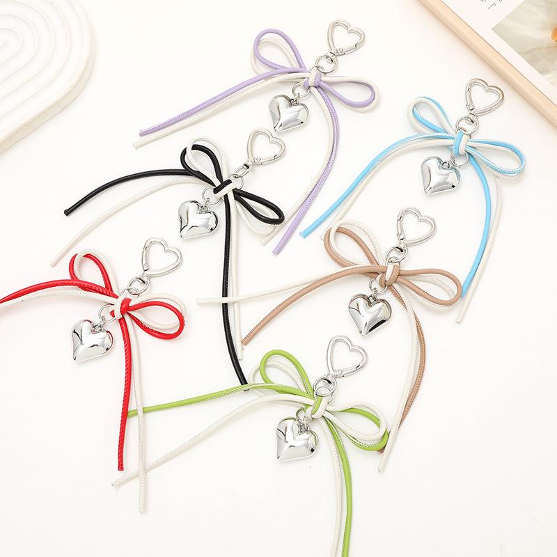 Nuevo estilo de cuerda de cuero con lazo de amor, colgante para funda de teléfono móvil, llavero, accesorio colgante, hebilla de amor, cordón para teléfono móvil