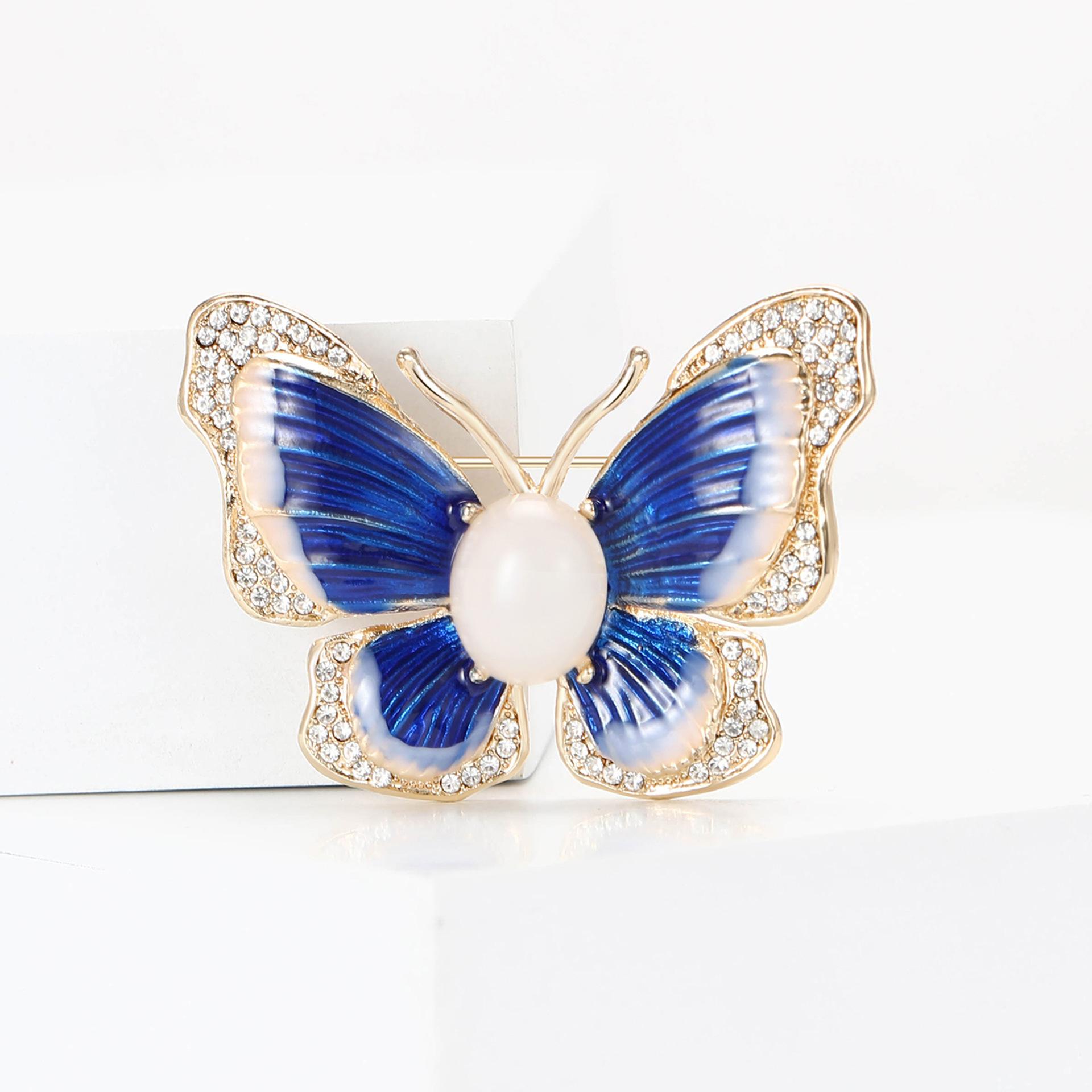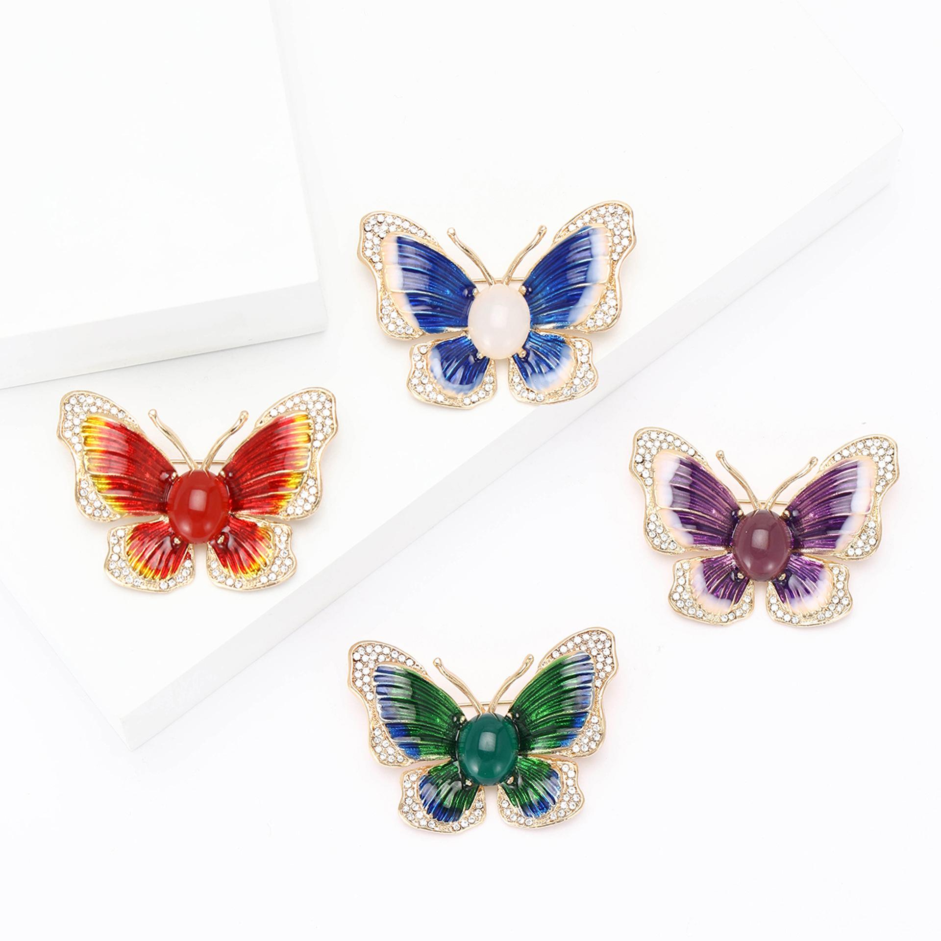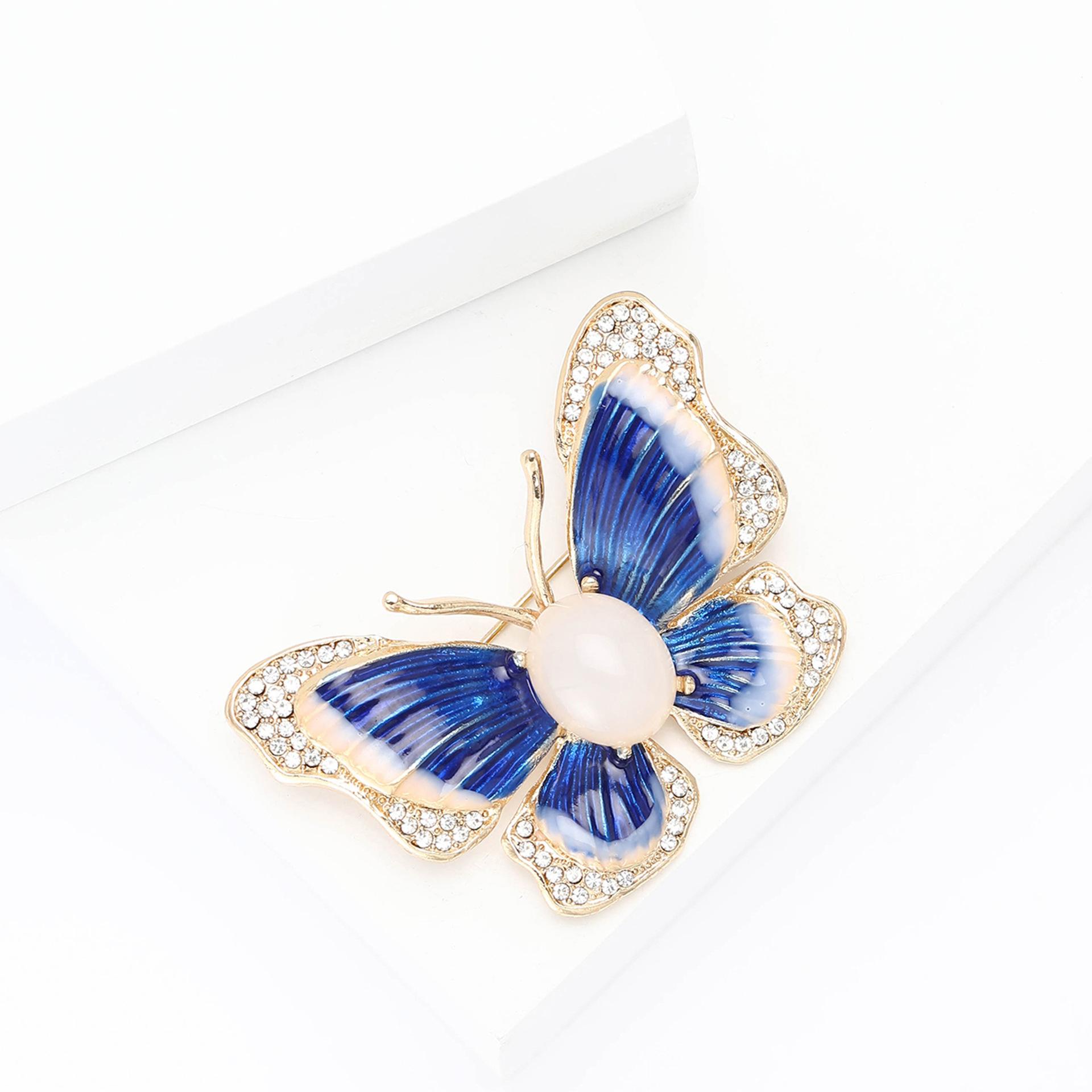 Broche de mariposa con diamantes de imitación y esmalte de aleación de alta gama para mujer, creativo, para traje, vestido, ramillete, joyería