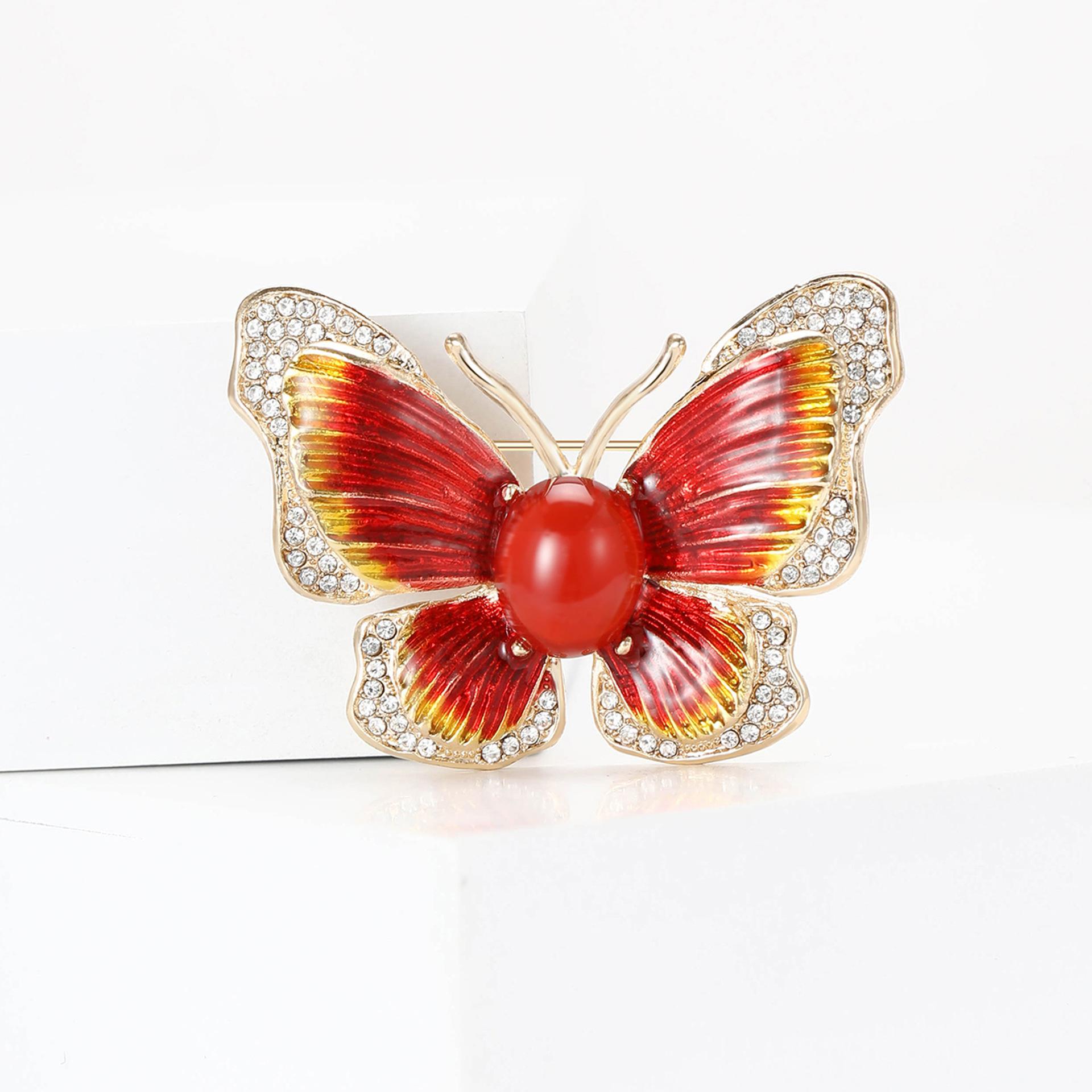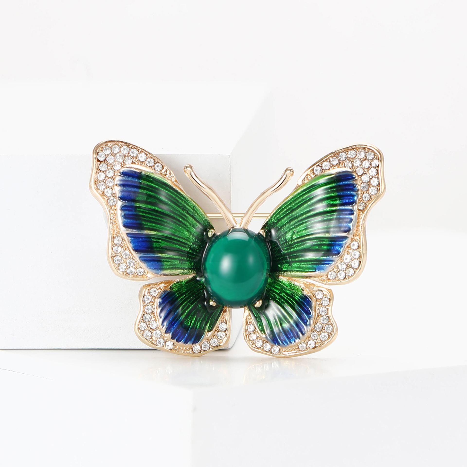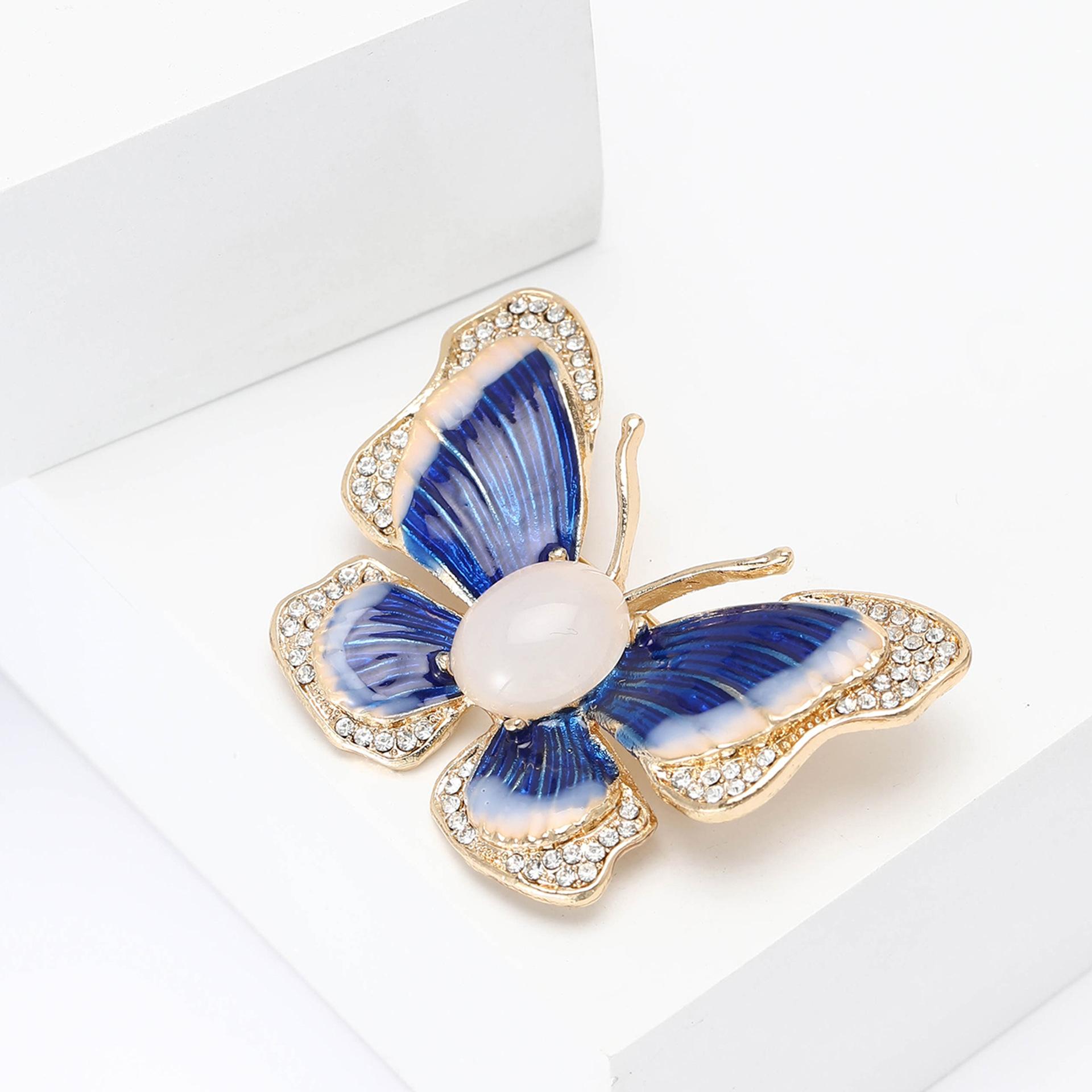 Broche de mariposa con diamantes de imitación y esmalte de aleación de alta gama para mujer, creativo, para traje, vestido, ramillete, joyería
