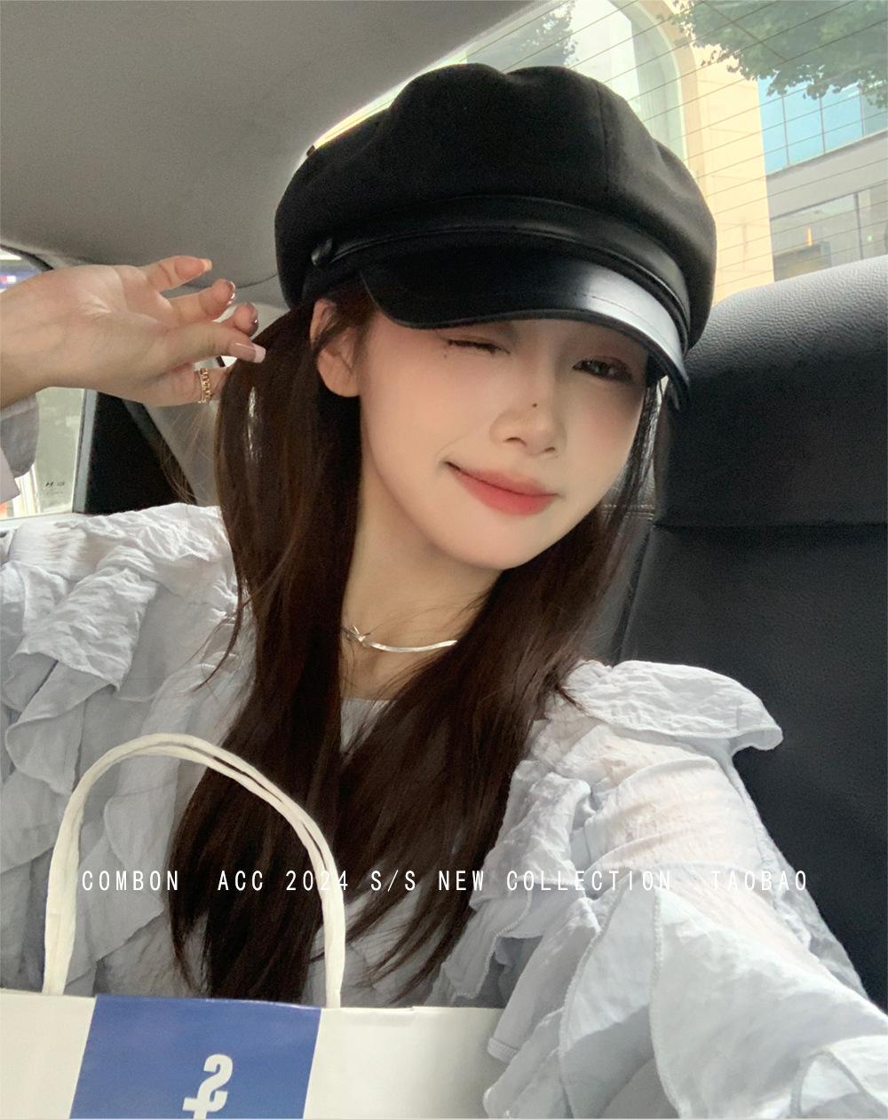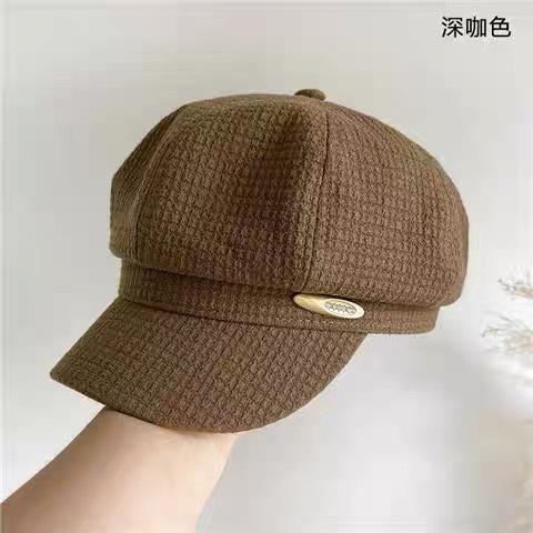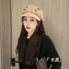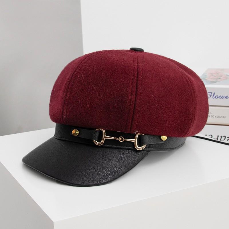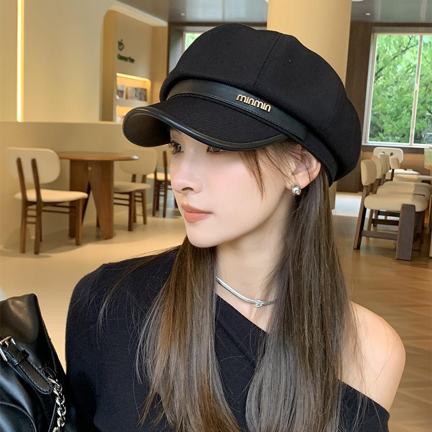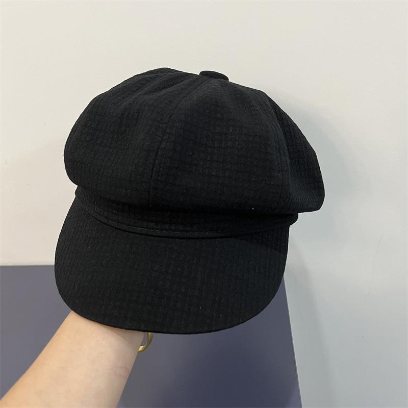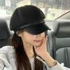 Boina Negra Japonesa para Mujer Otoño e Invierno Lana Vintage Sombrero de Repartidor Sombrero Octagonal Pequeño que Muestra la Cara Sombrero de Pintor Artístico Moderno