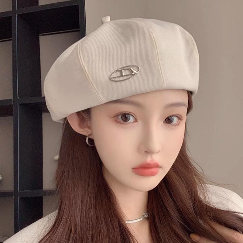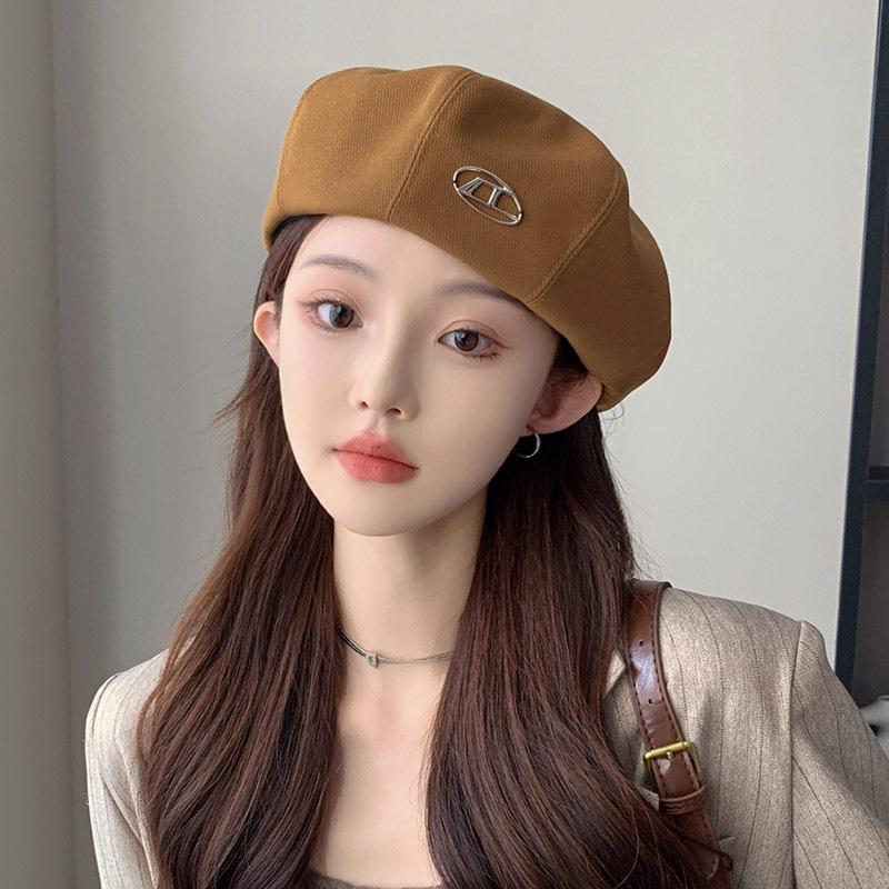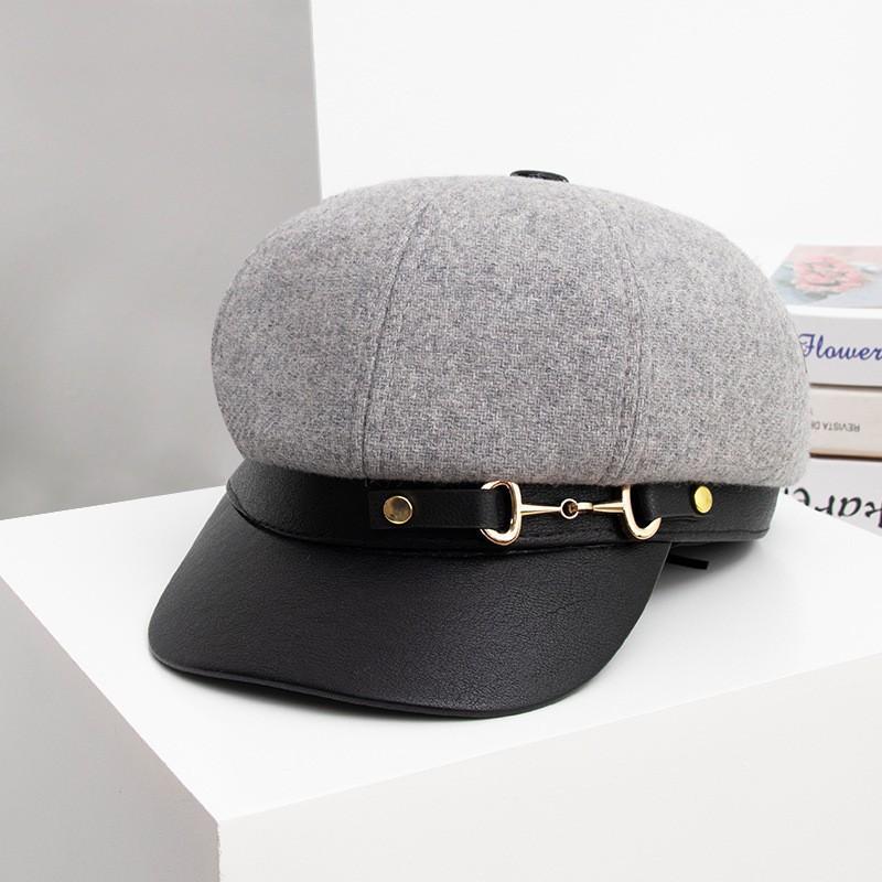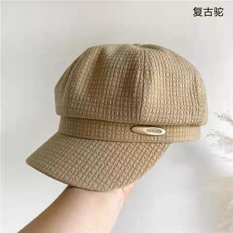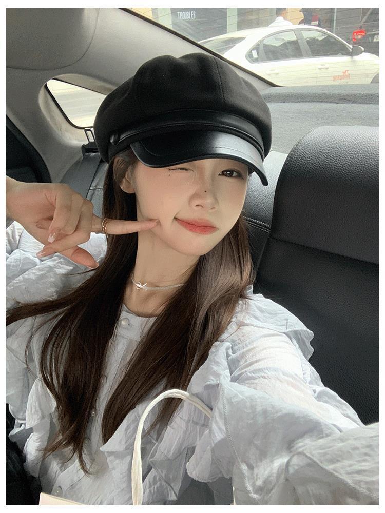 Boina Negra Japonesa para Mujer Otoño e Invierno Lana Vintage Sombrero de Repartidor Sombrero Octagonal Pequeño que Muestra la Cara Sombrero de Pintor Artístico Moderno