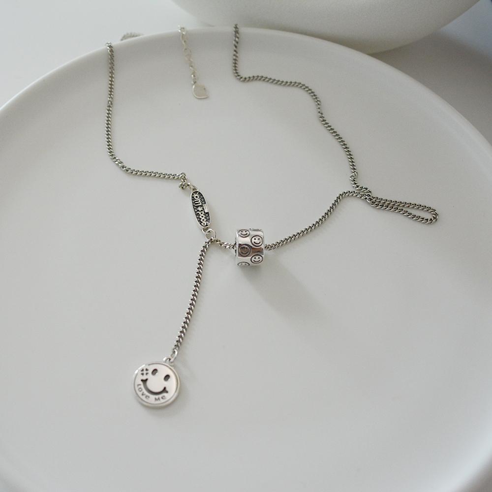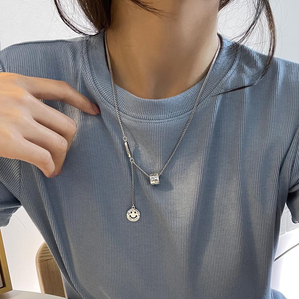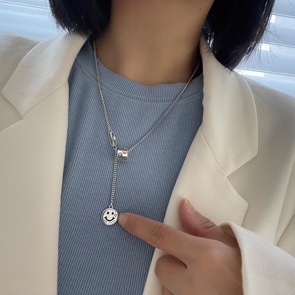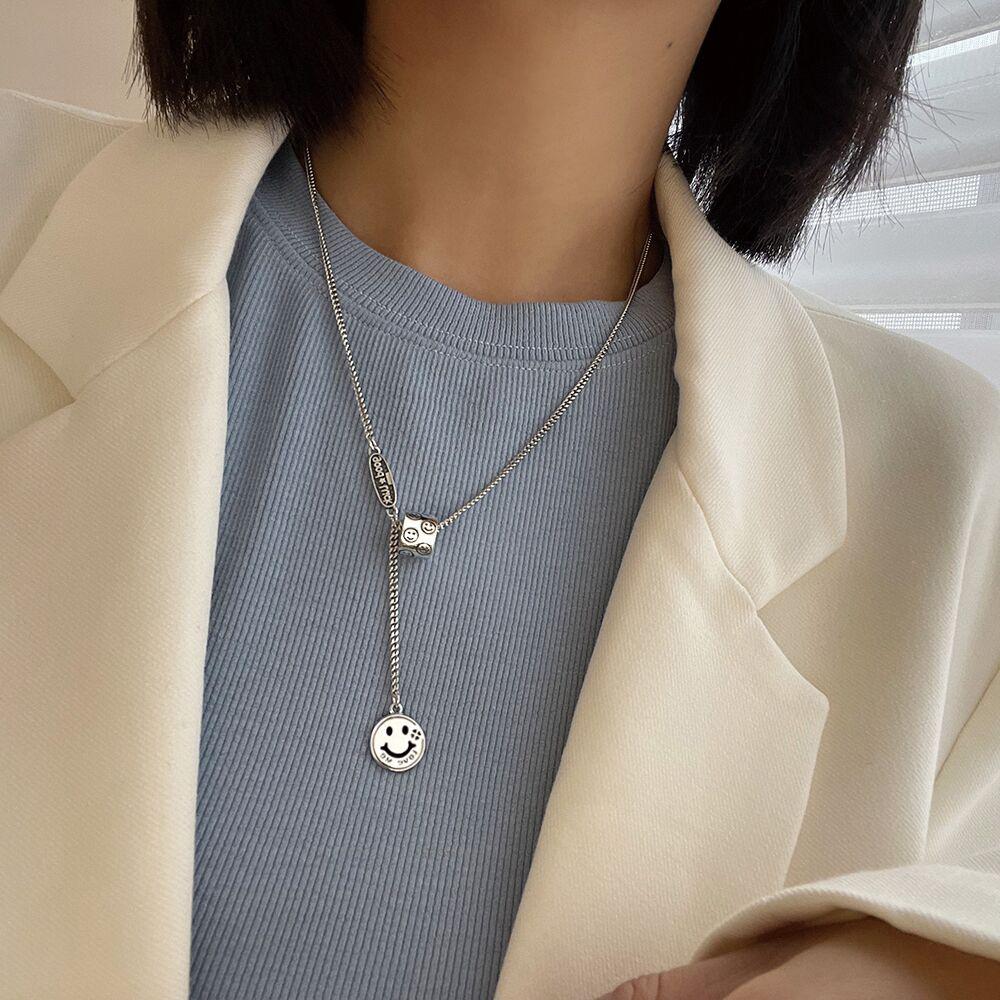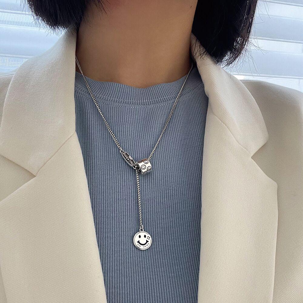 Collar con cuentas de transferencia de cara sonriente coreana para hombre pequeño, cadena de suéter para mujer, estilo hip hop de otoño e invierno 2023.