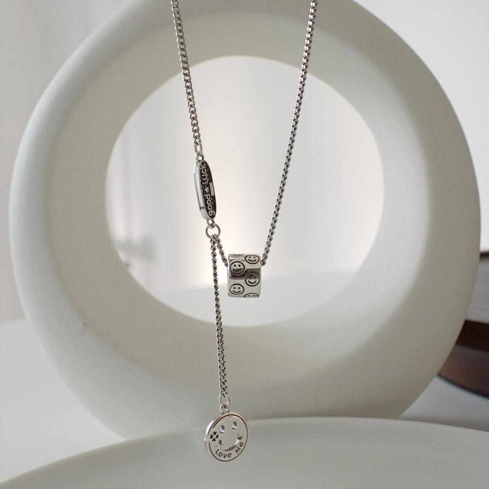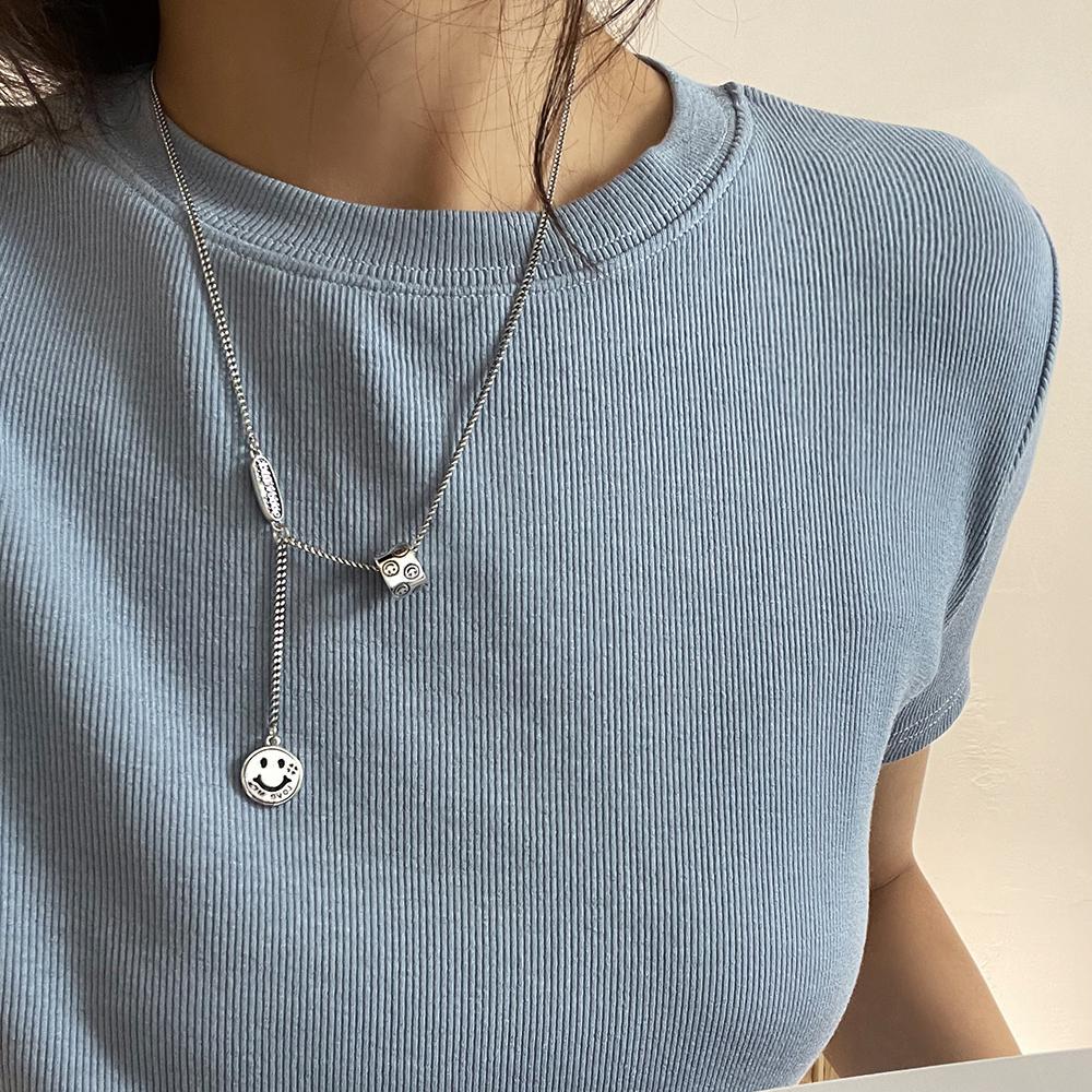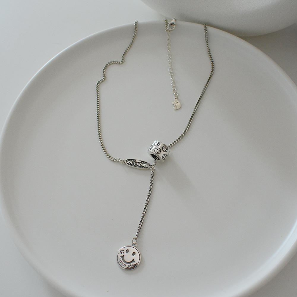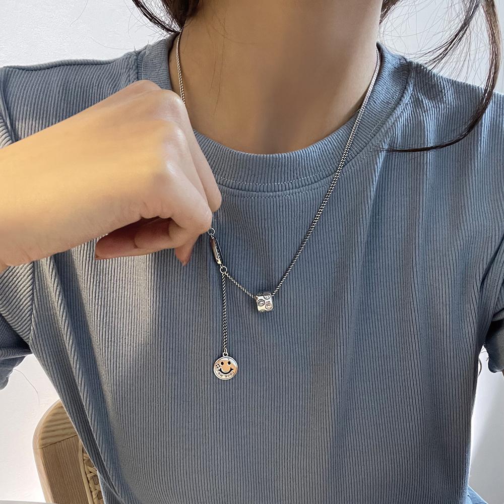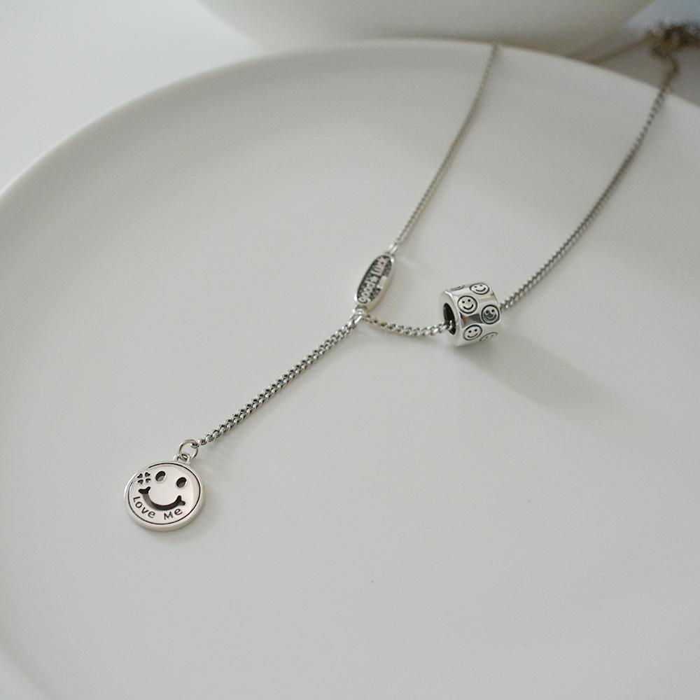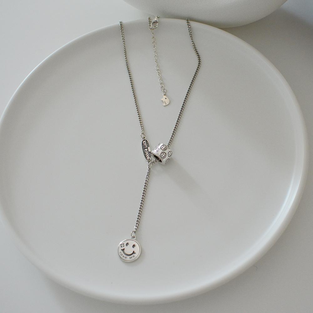 Collar con cuentas de transferencia de cara sonriente coreana para hombre pequeño, cadena de suéter para mujer, estilo hip hop de otoño e invierno 2023.