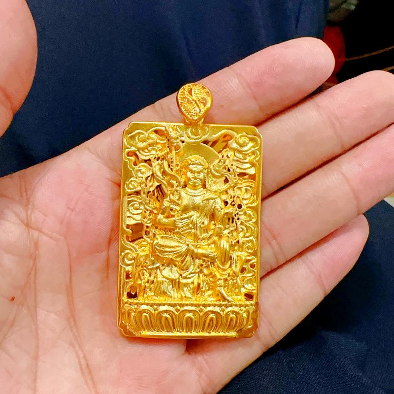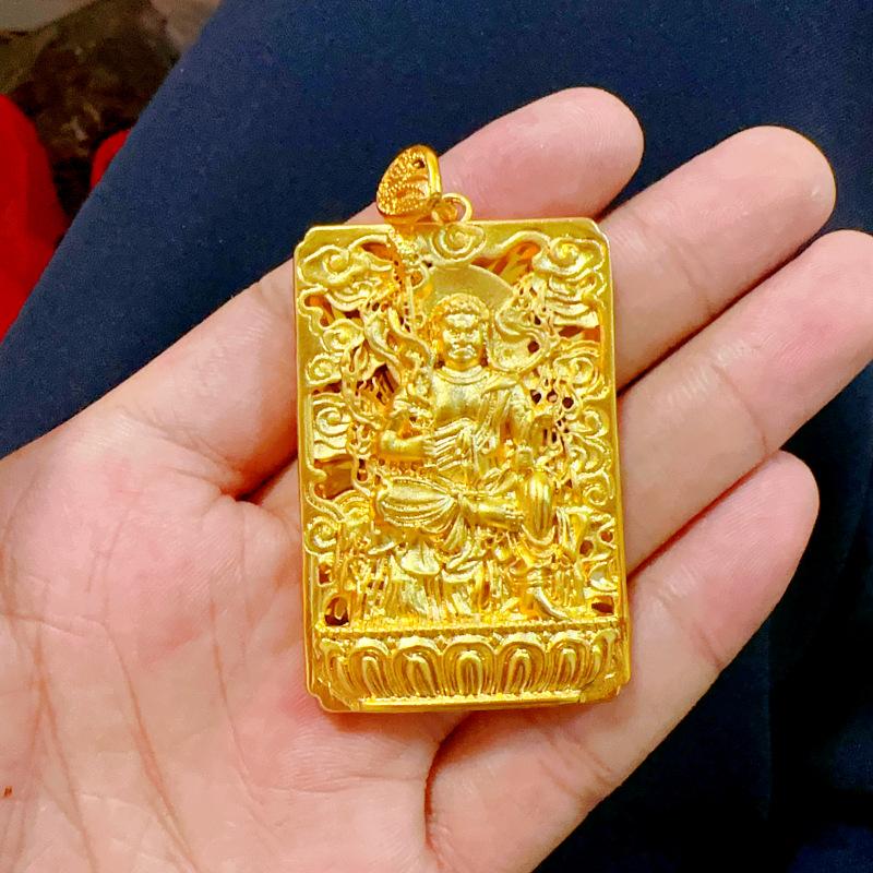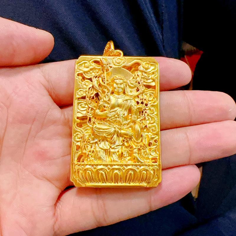 Nuevo colgante vietnamita de oro arena con el santo patrón del zodíaco, sin movimiento, colgante de amuleto de Buda con placa cuadrada Mingwang para hombres y mujeres, collar protector corporal