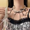 Collar de perlas estilo Chanel retro con lazo y diamantes, estilo princesa romántica, con nicho avanzado y elegante cadena para clavícula.