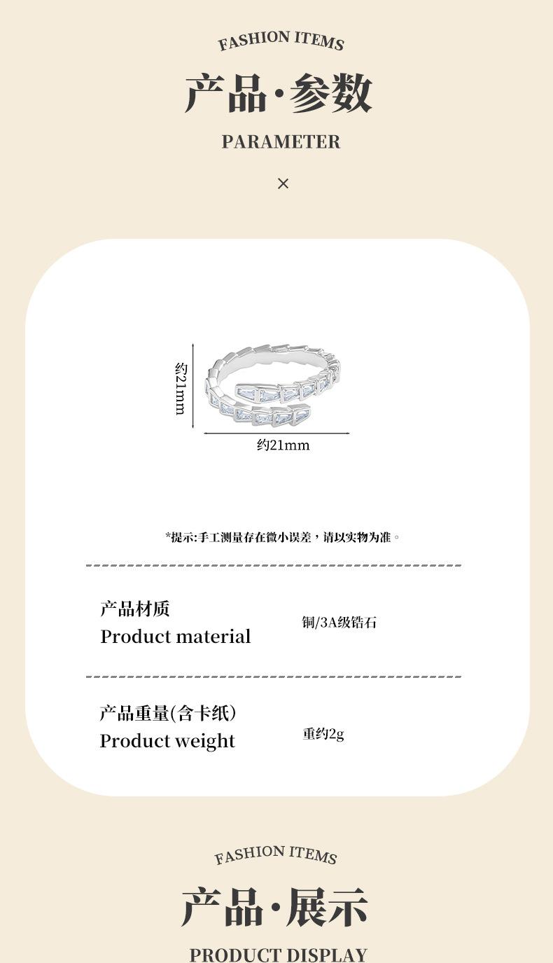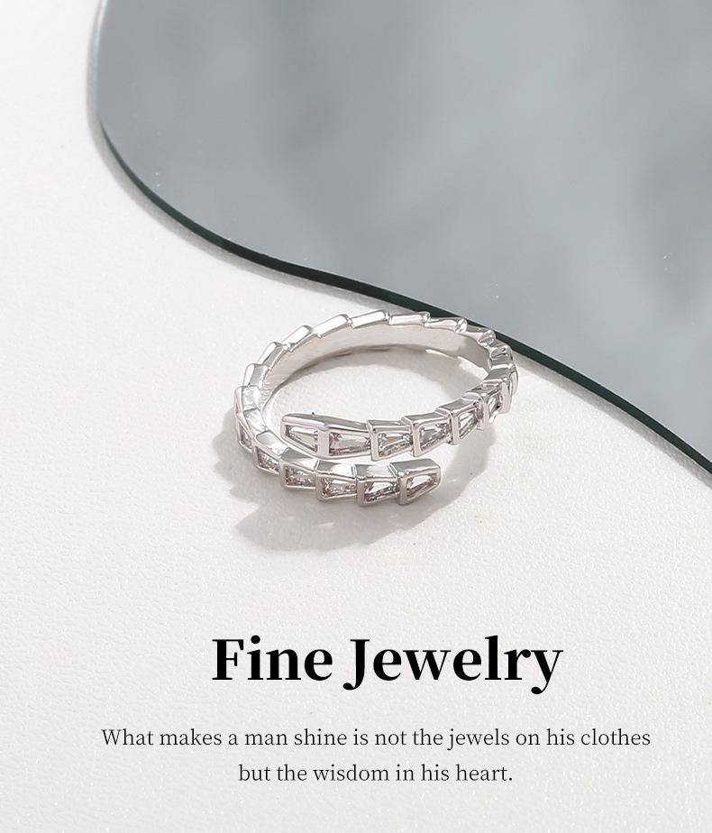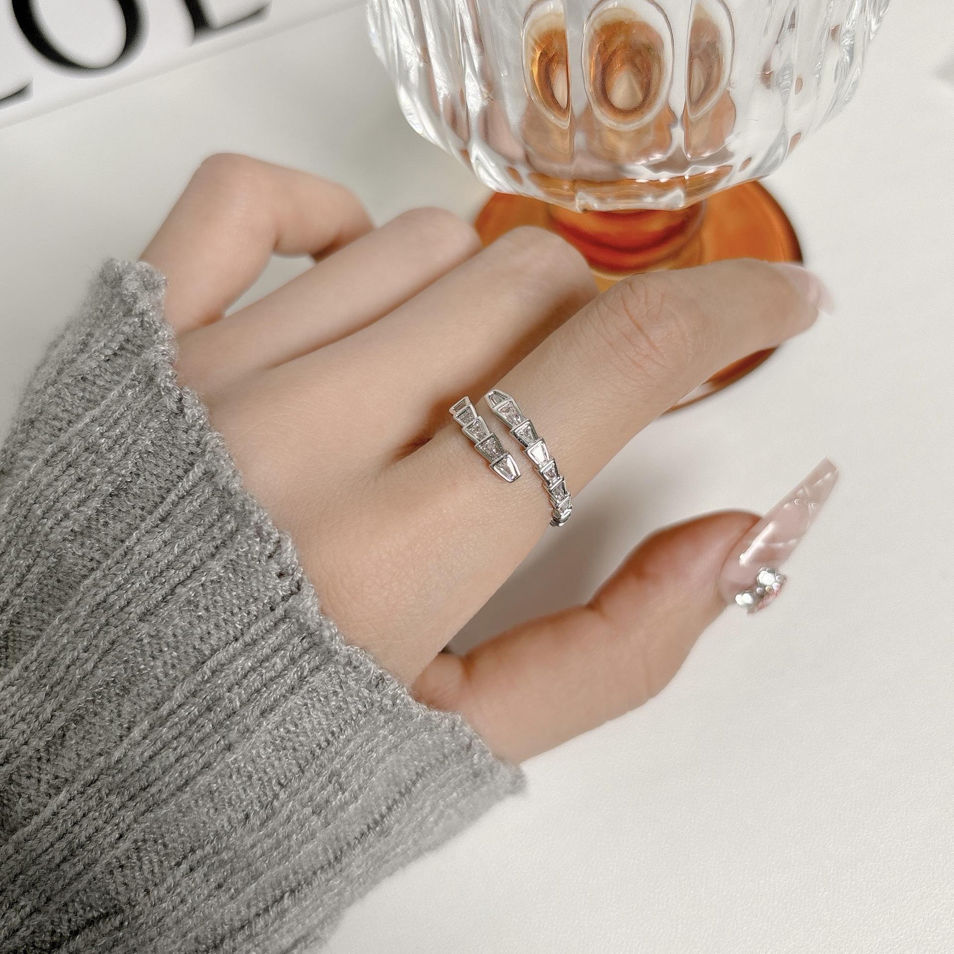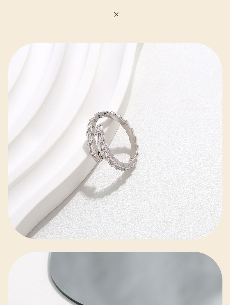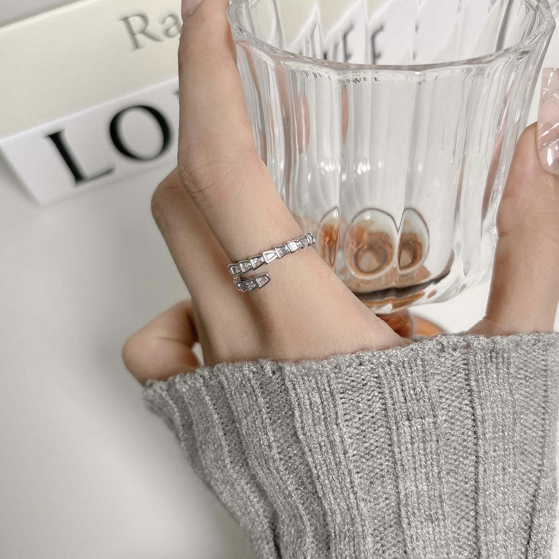 Anillo Abierto de Circonita Blanca con Forma de Hueso de Serpiente Anillo Elegante para Mujer Nicho de Alta Gama Estilo Lujo Accesible Moda Personalizada Anillo para Dedo Índice