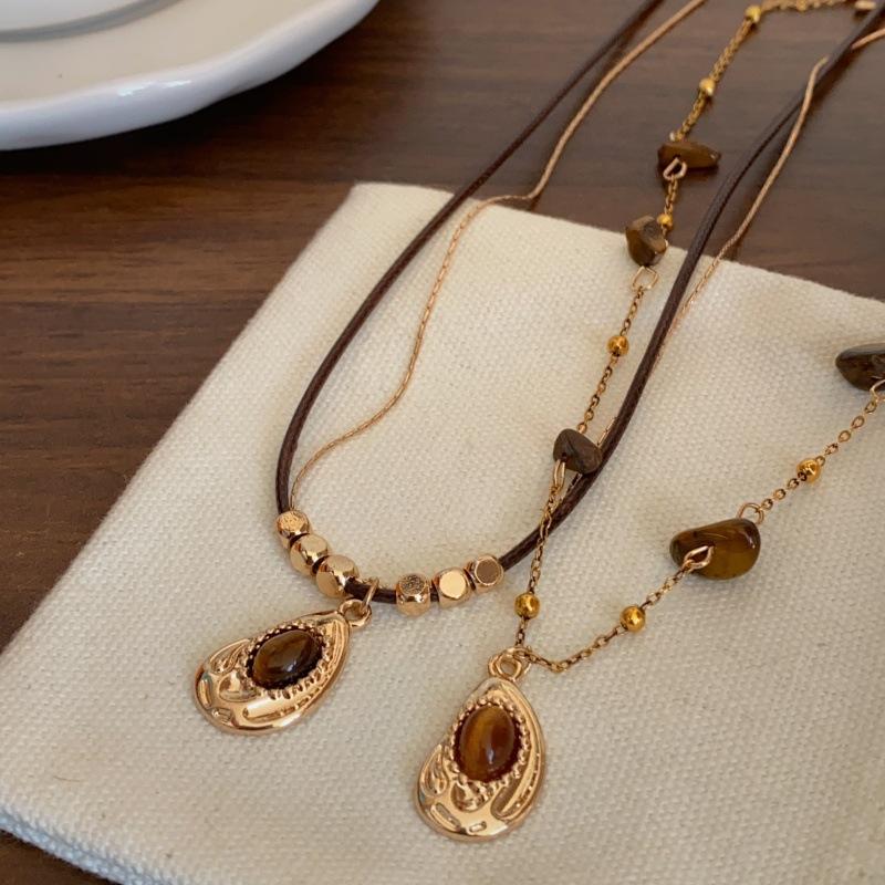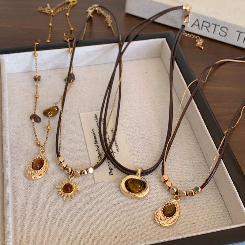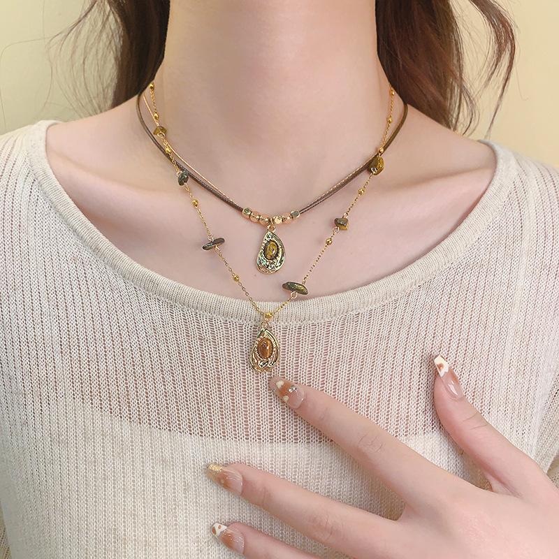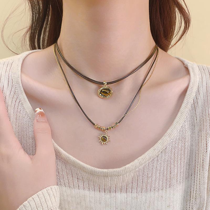 Collar doble con piedra de ojo de tigre y estrella de estilo bohemio para mujer, delicada cadena de clavícula de nicho, nueva cadena de suéter 2024