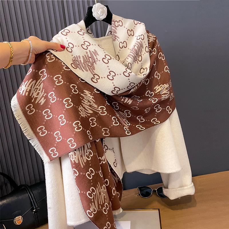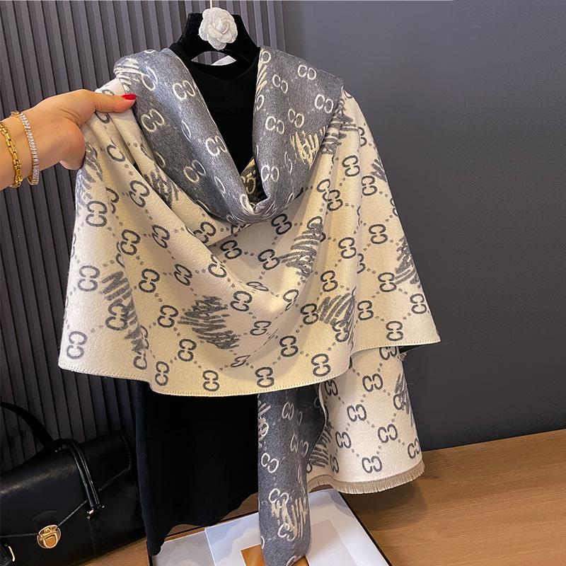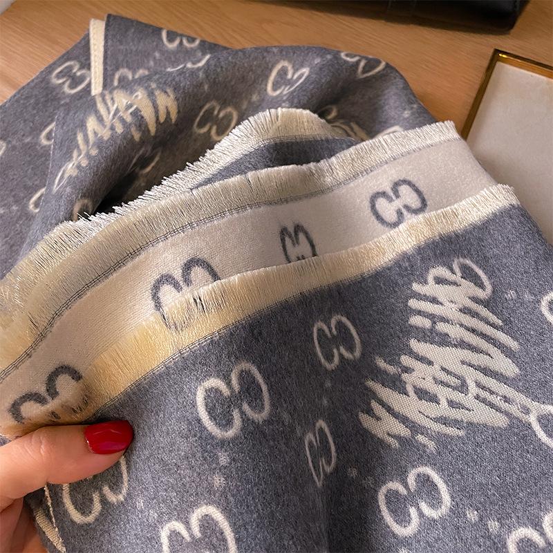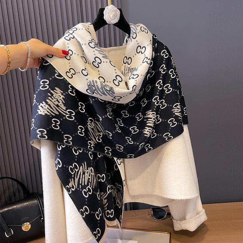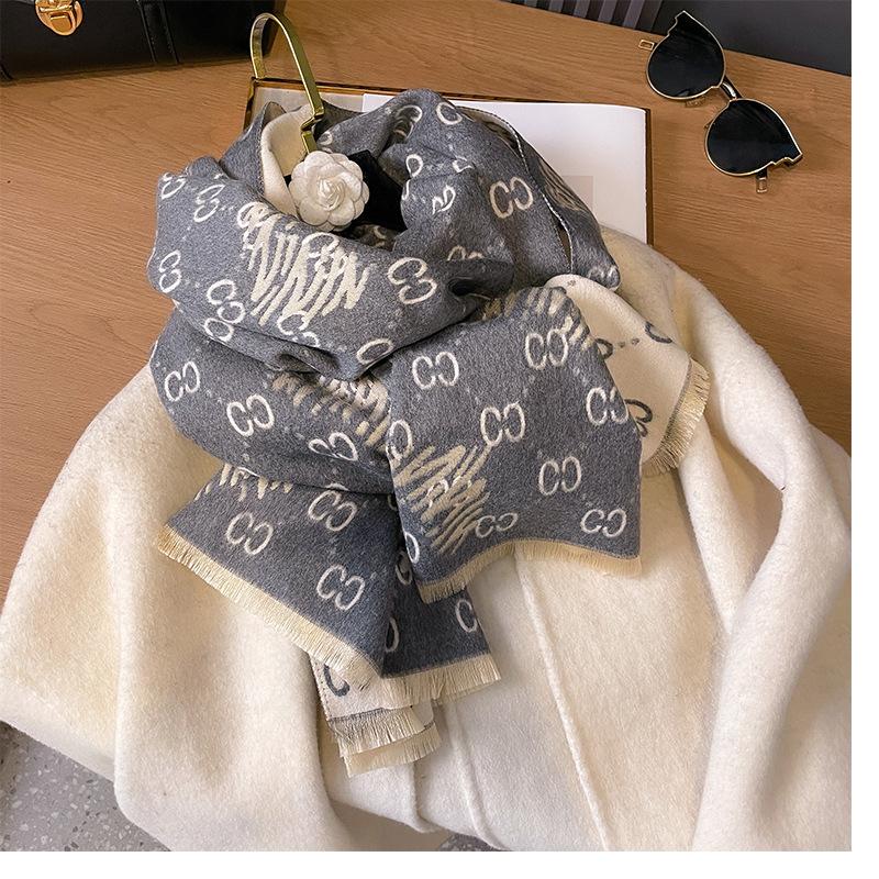 Bufanda de cachemira cálida de doble cara para mujer, estilo europeo y americano, de otoño e invierno, con aire acondicionado, de lana tipo chal.