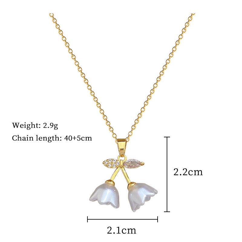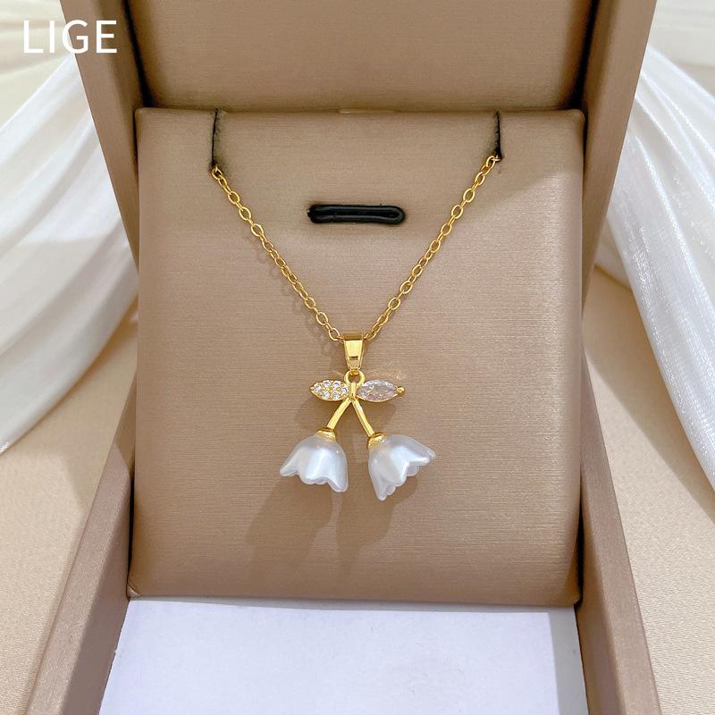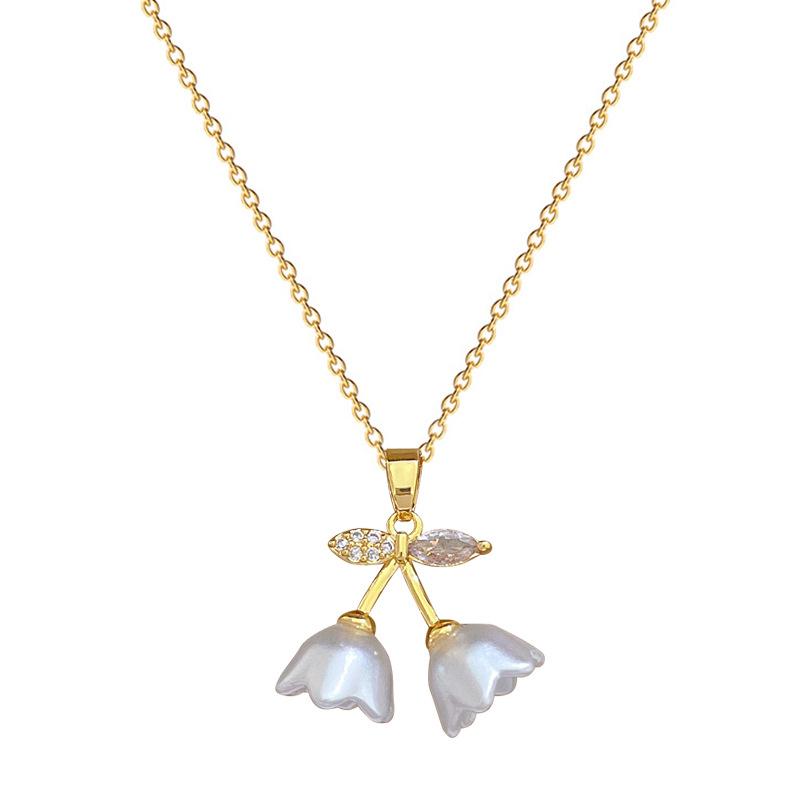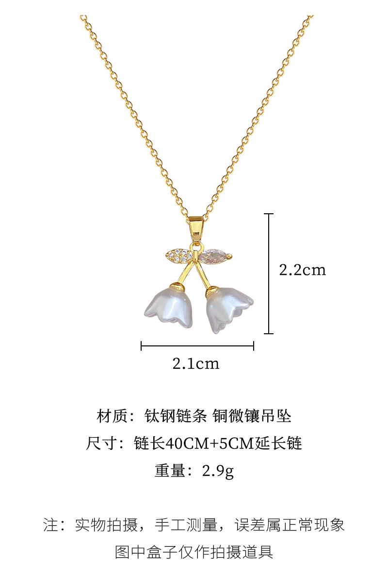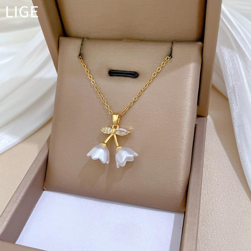 [Acero de titanio] Elegante collar de diamantes con forma de campana, trompeta y flor, de lujo, para mujer, cadena de clavícula combinable, cadena de acero de titanio.