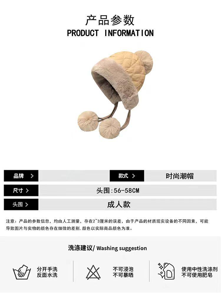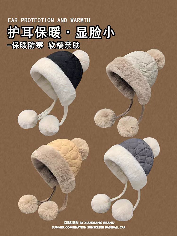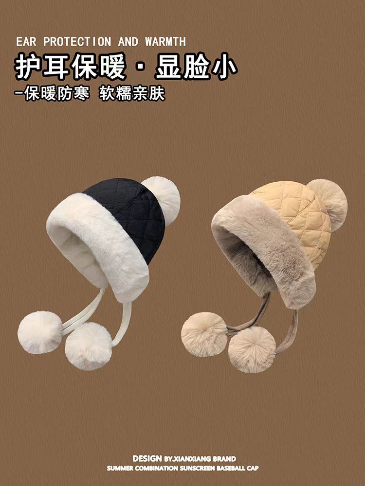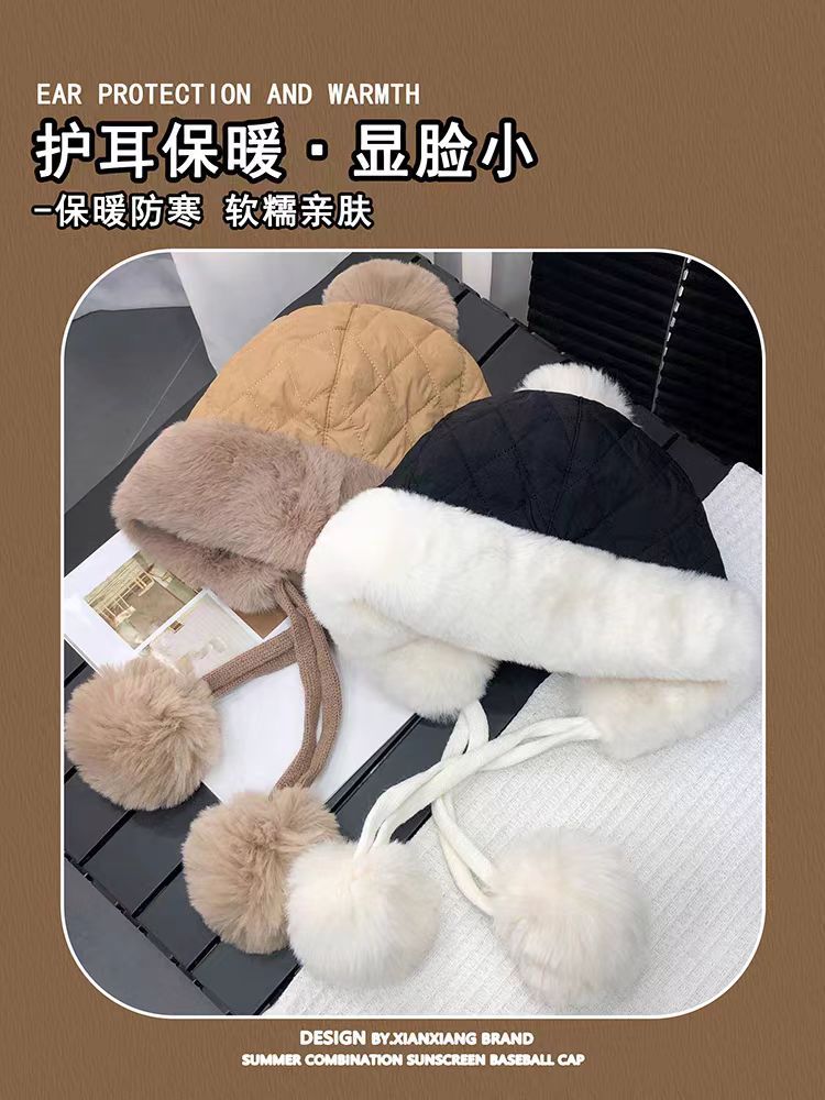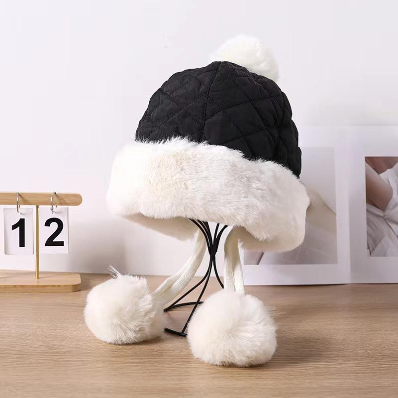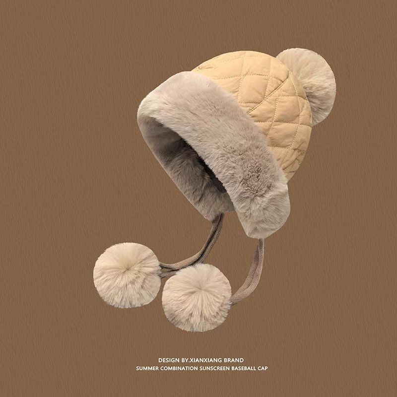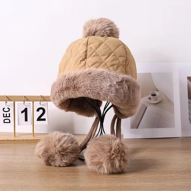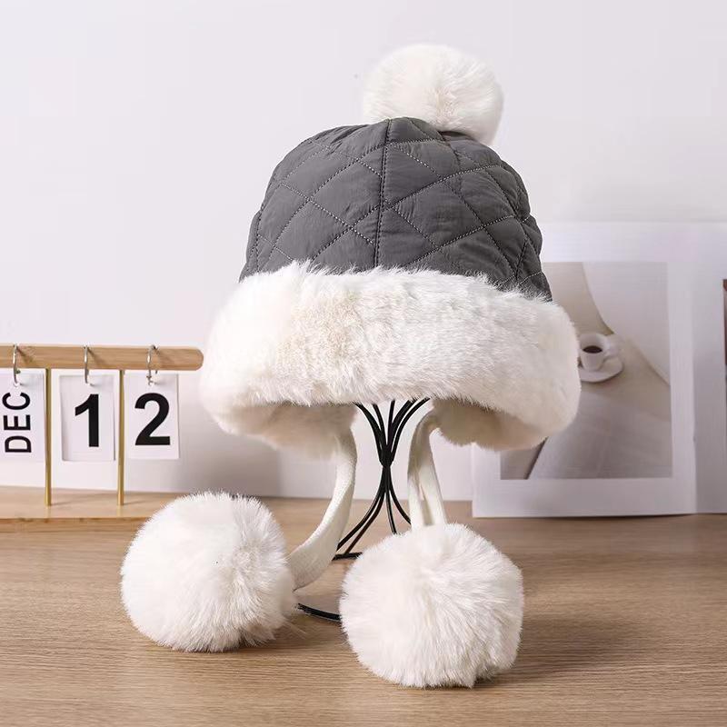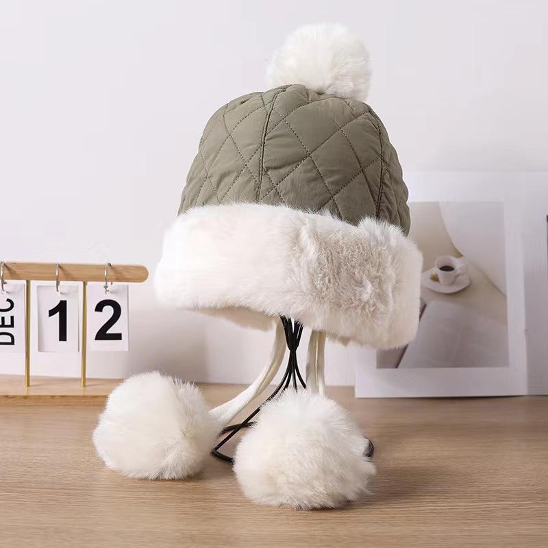 Sombrero de Invierno para Mujer Grueso Cálido Sombrero Lei Feng Felpa Protección para las Orejas Lindo Tejido a Punto a Prueba de Frío del Norte Plumón Esquí Moda