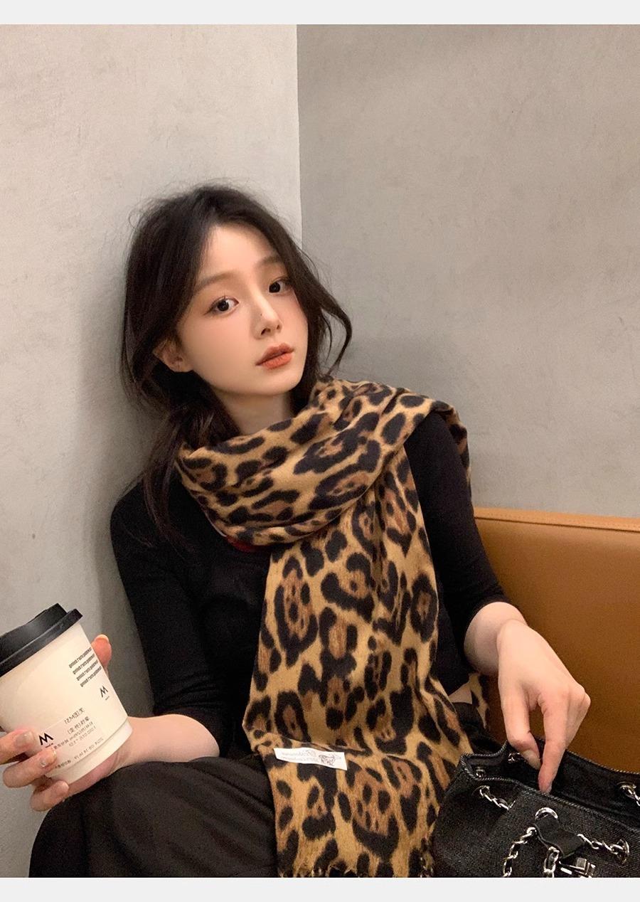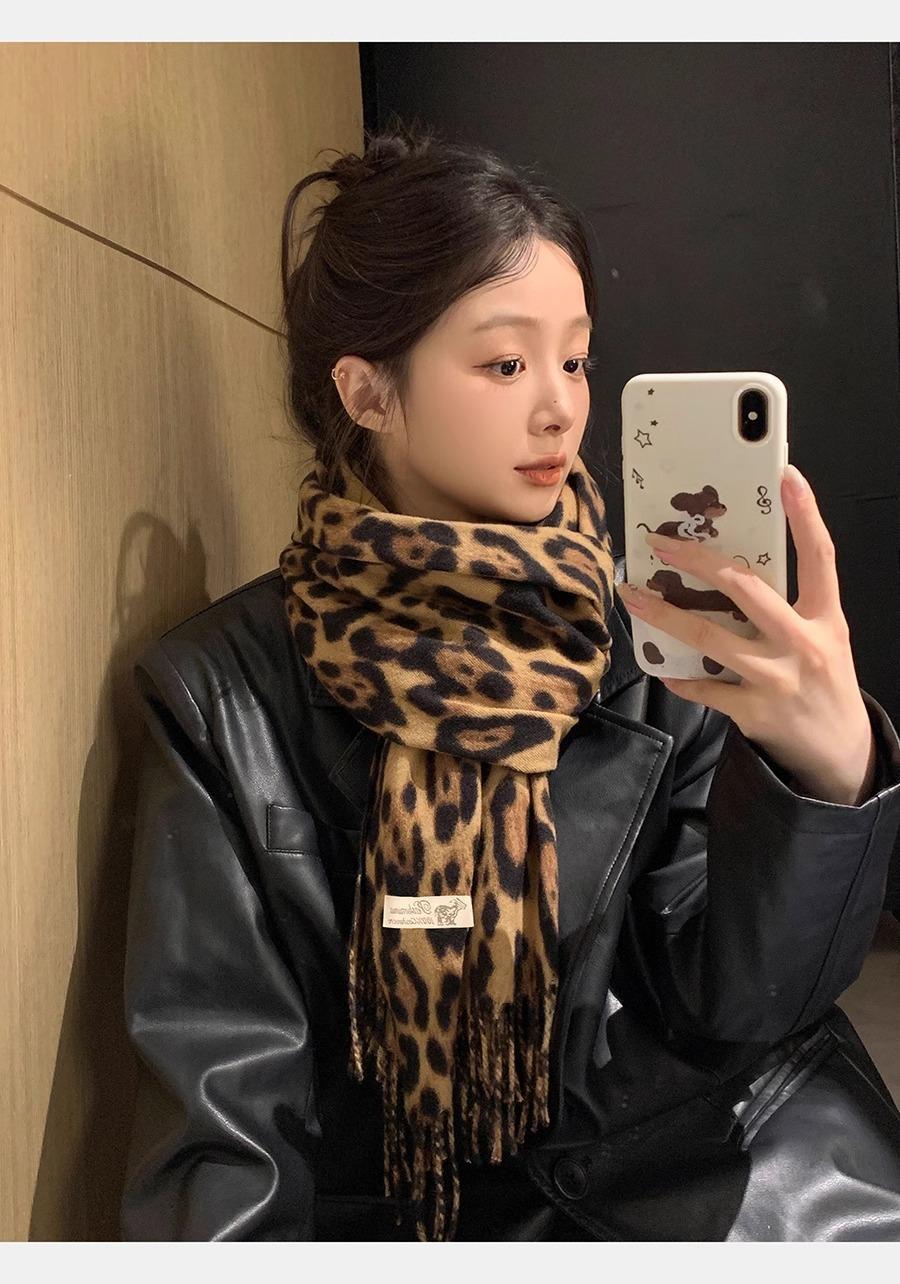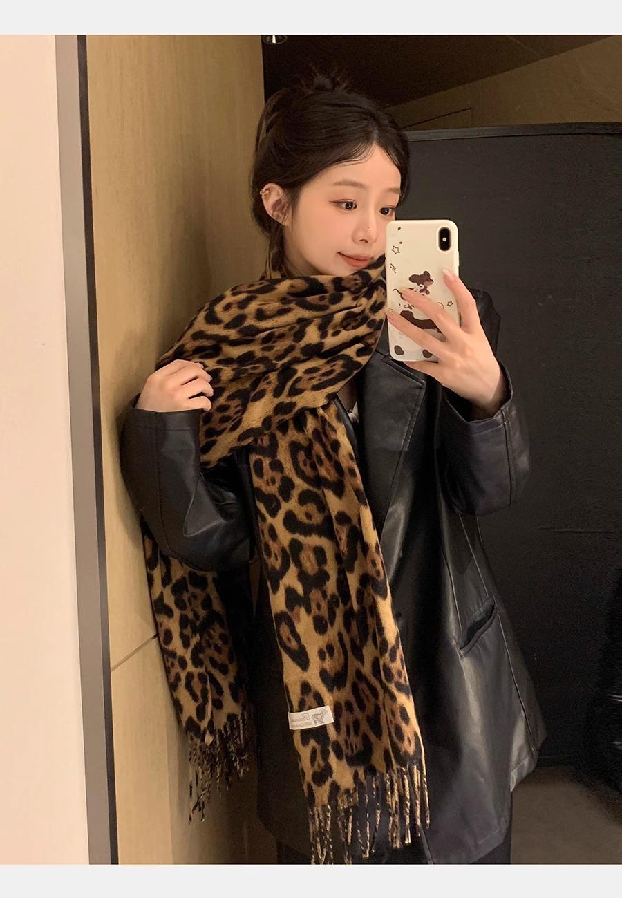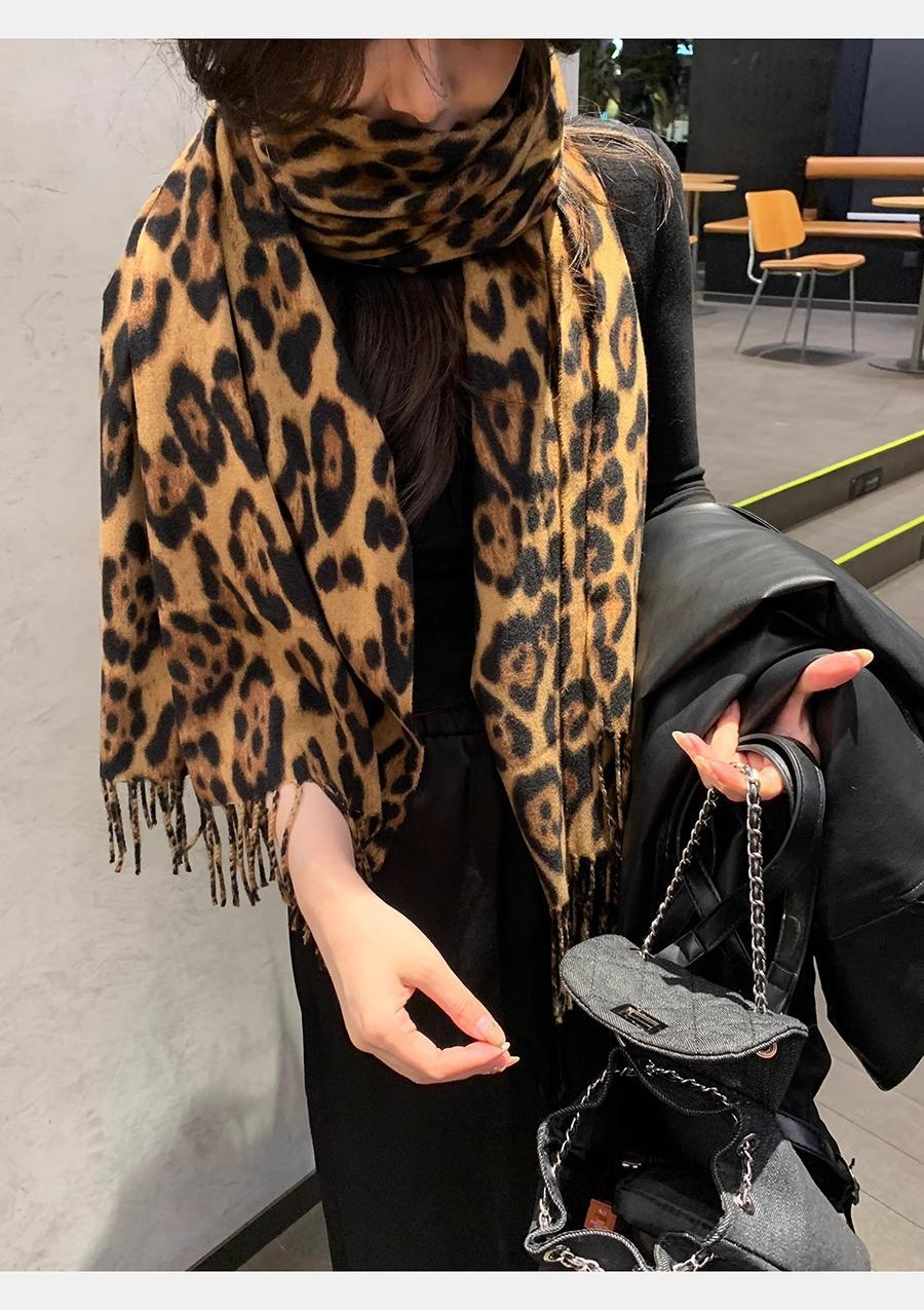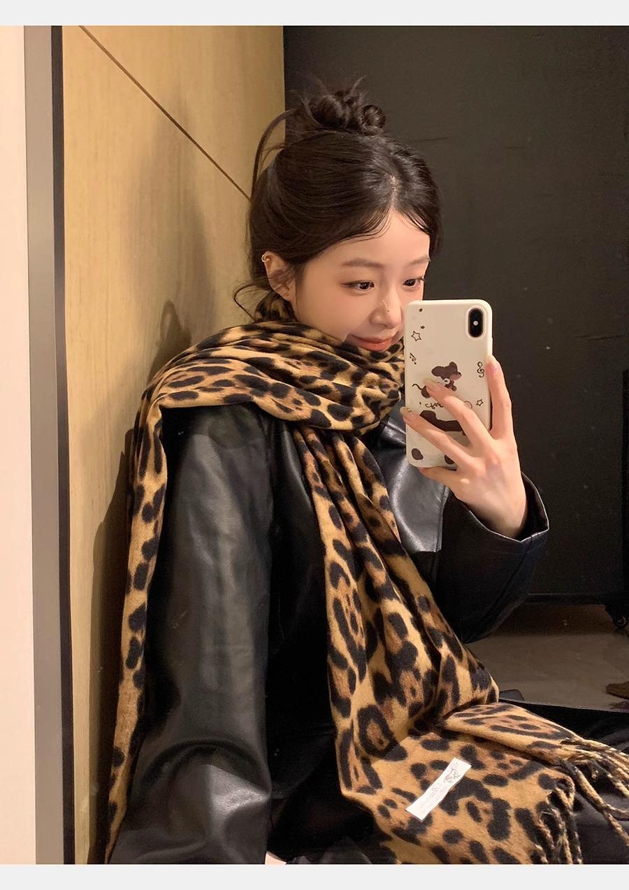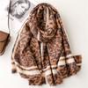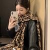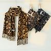 Nueva bufanda chal con borlas de cachemira de imitación de moda coreana europea y americana gruesa y cálida con estampado de leopardo de otoño e invierno