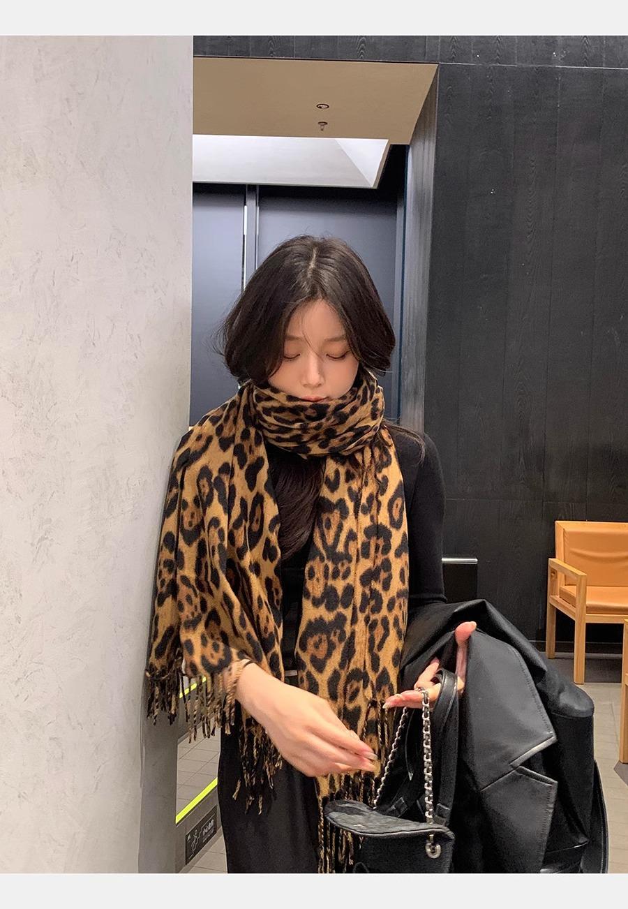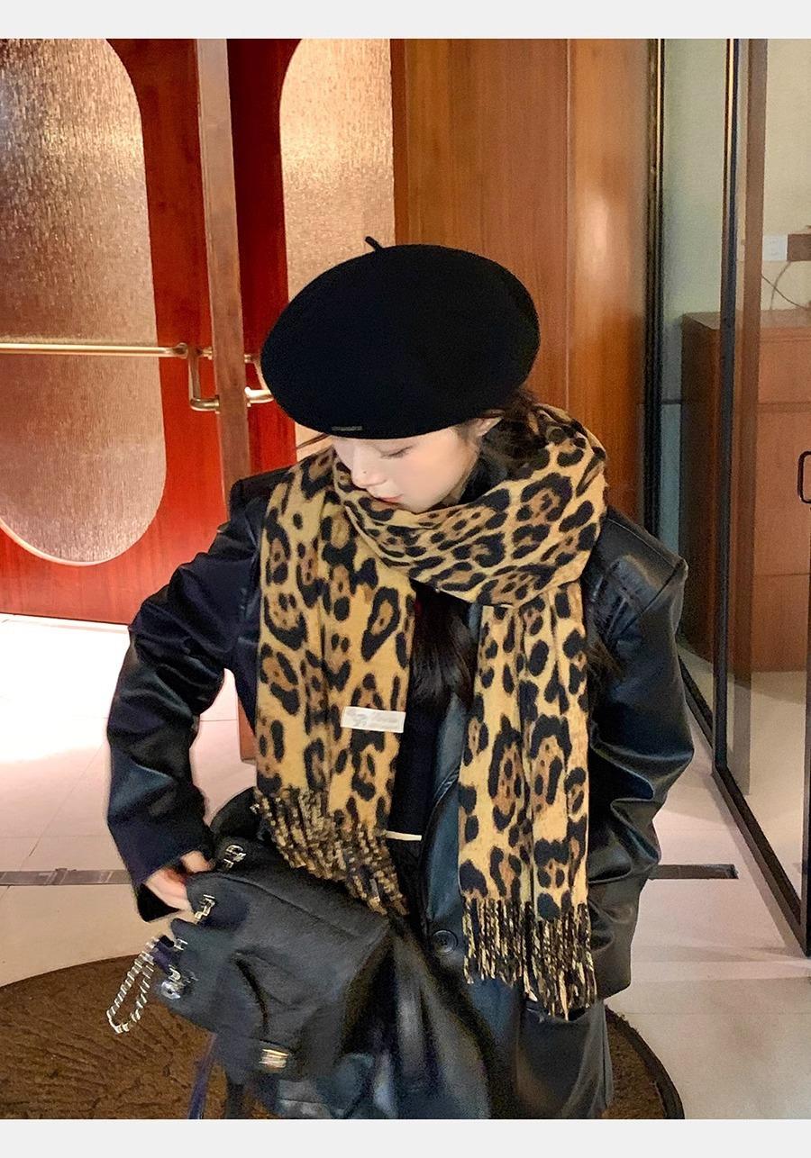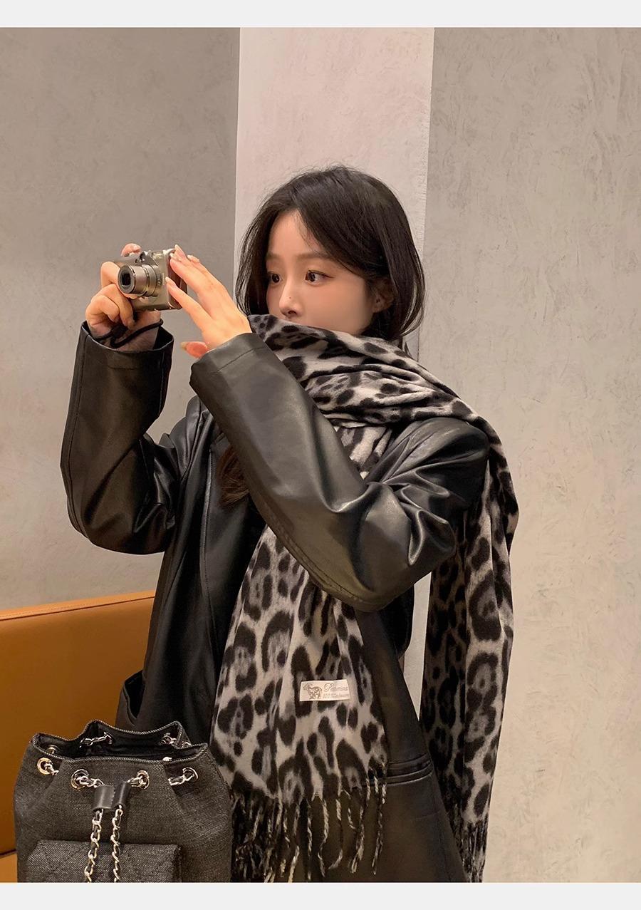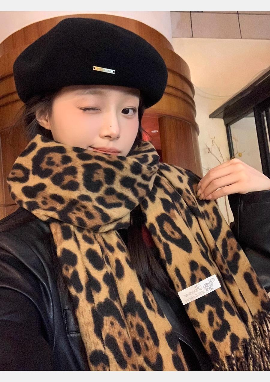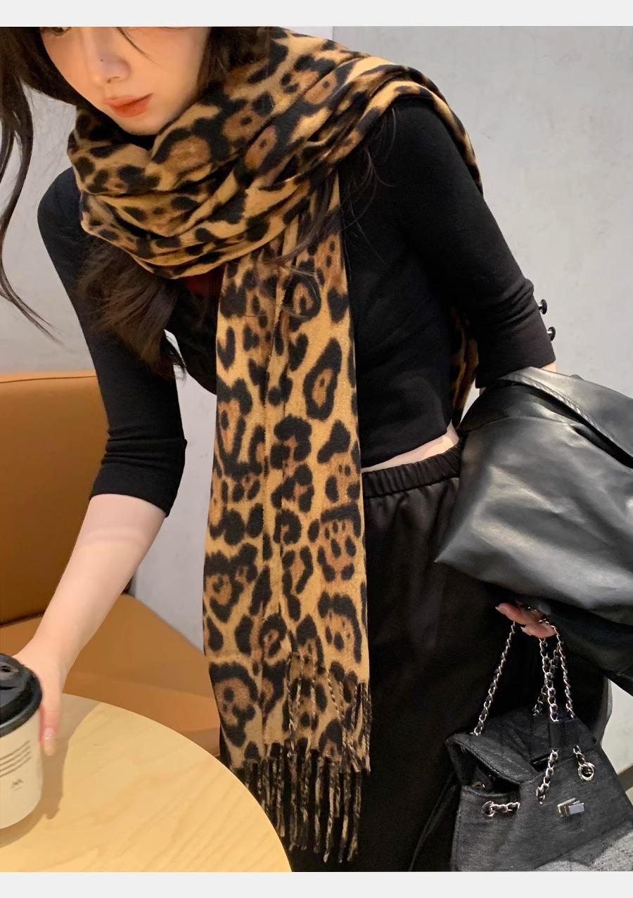 Nueva bufanda chal con borlas de cachemira de imitación de moda coreana europea y americana gruesa y cálida con estampado de leopardo de otoño e invierno