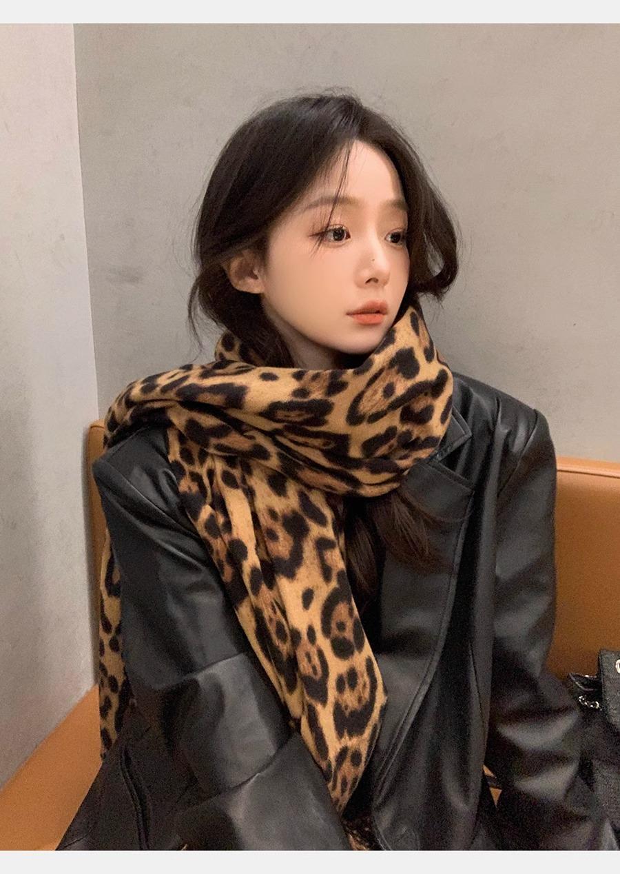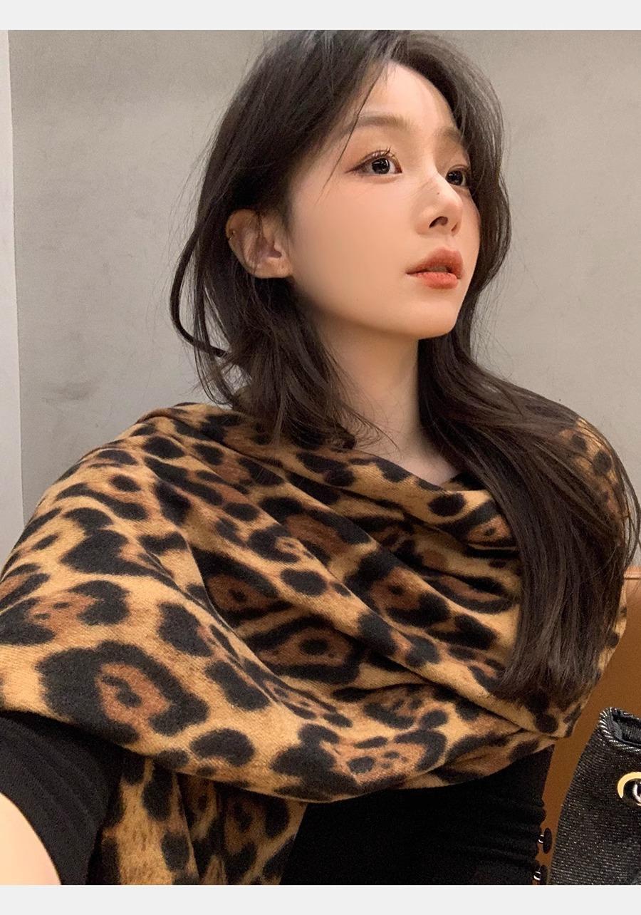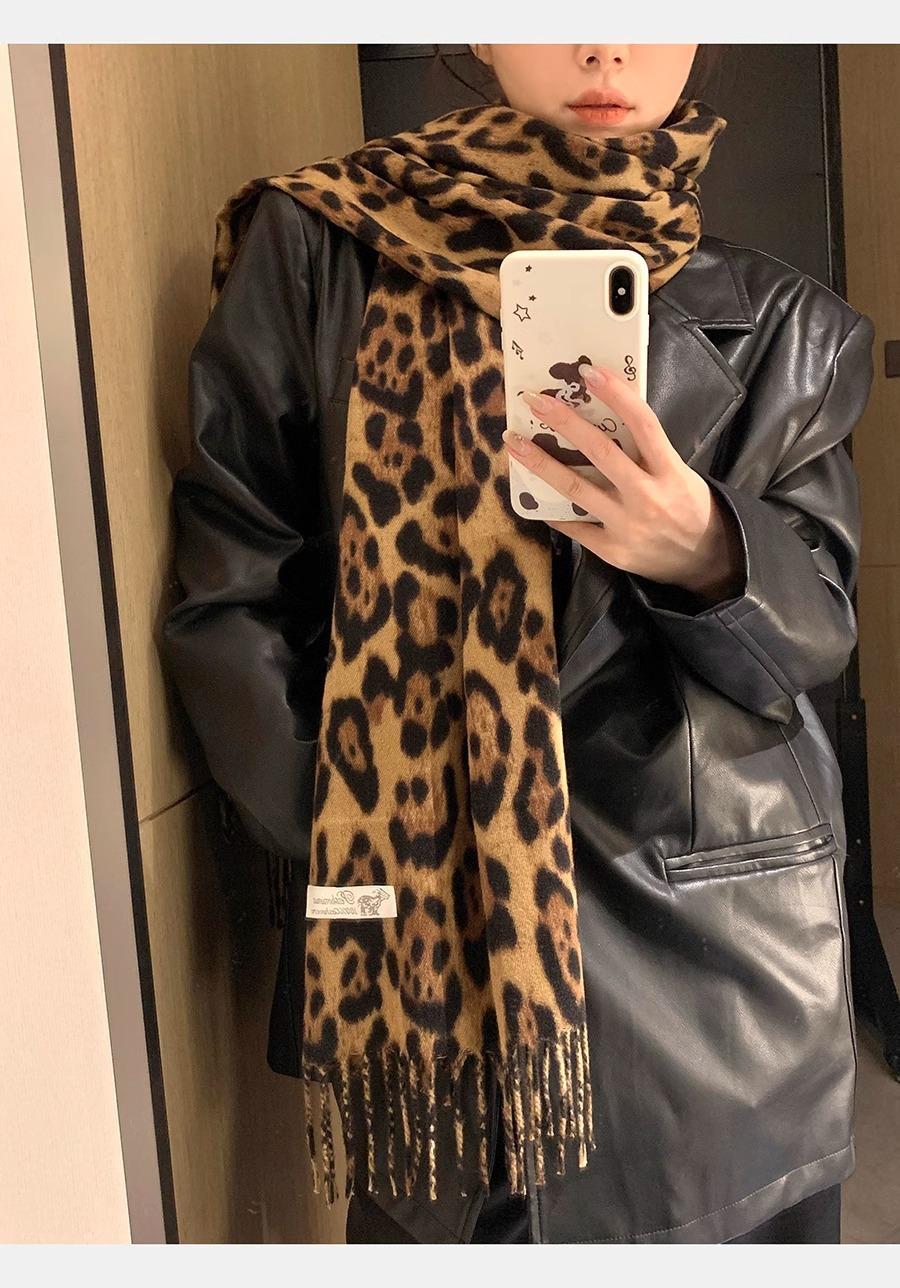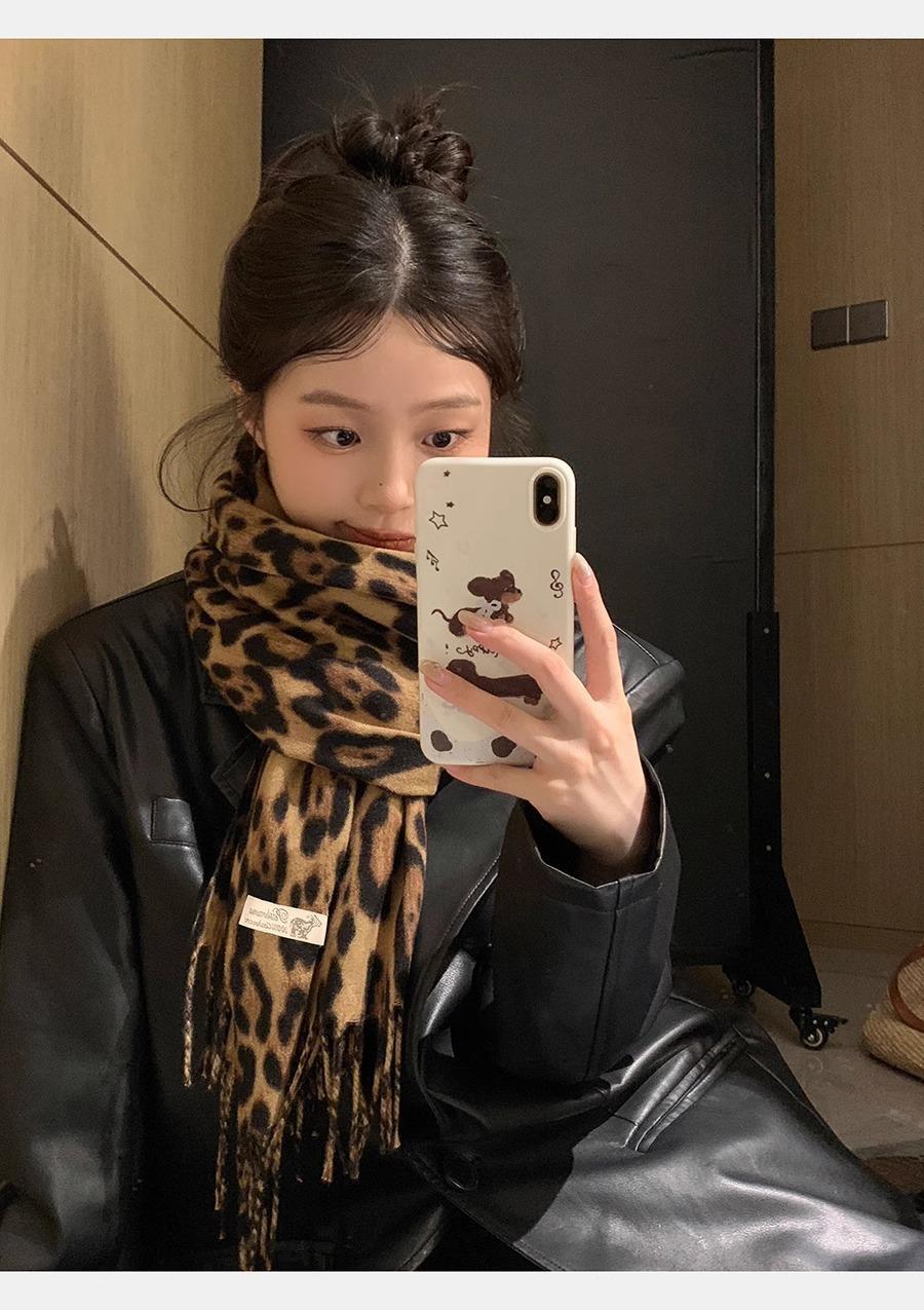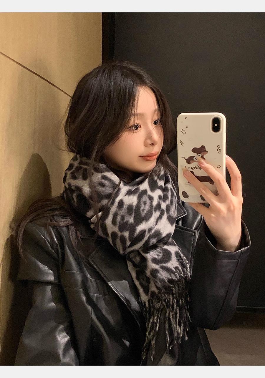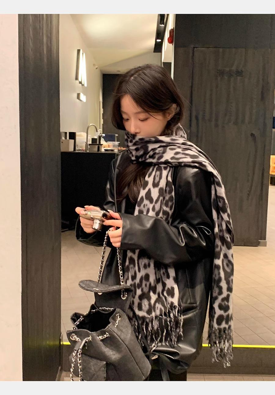 Nueva bufanda chal con borlas de cachemira de imitación de moda coreana europea y americana gruesa y cálida con estampado de leopardo de otoño e invierno