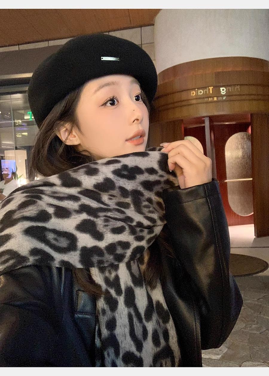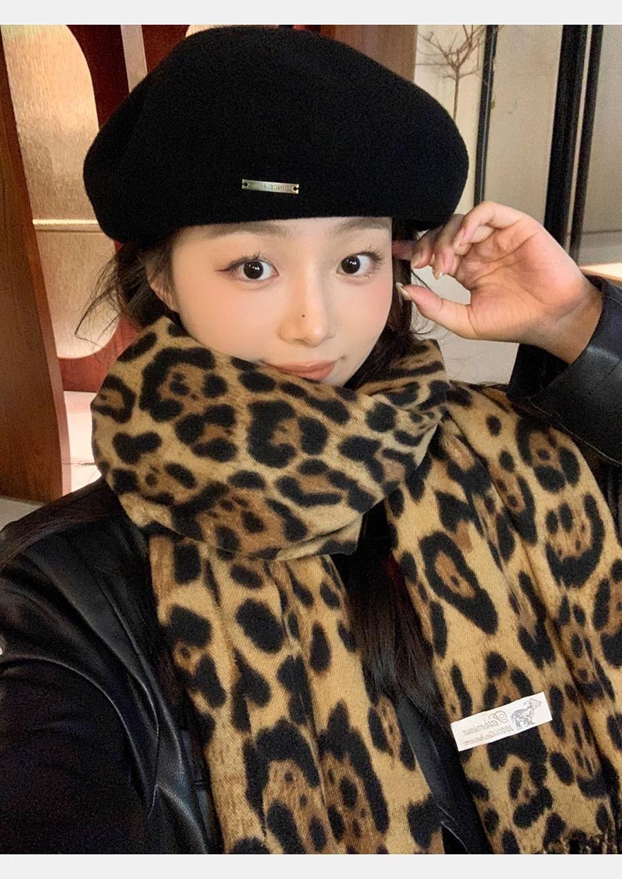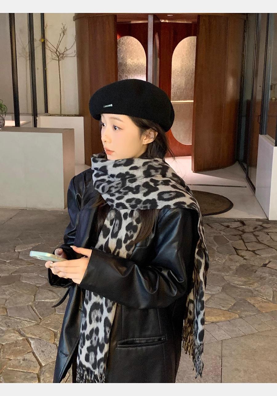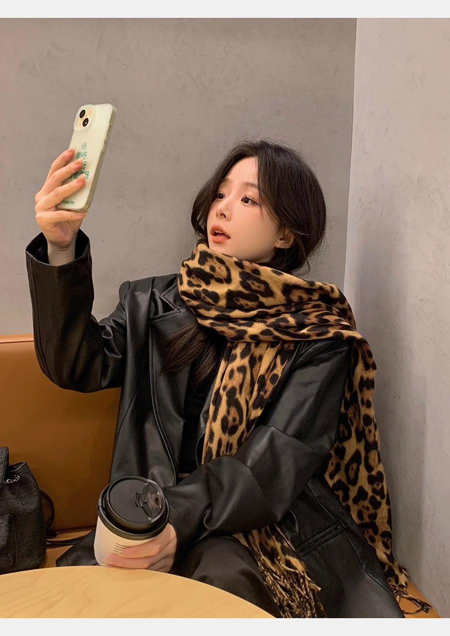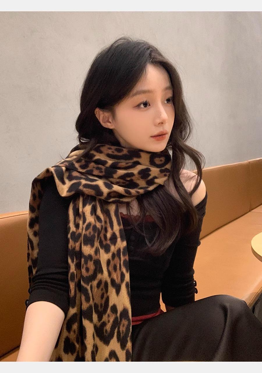 Nueva bufanda chal con borlas de cachemira de imitación de moda coreana europea y americana gruesa y cálida con estampado de leopardo de otoño e invierno