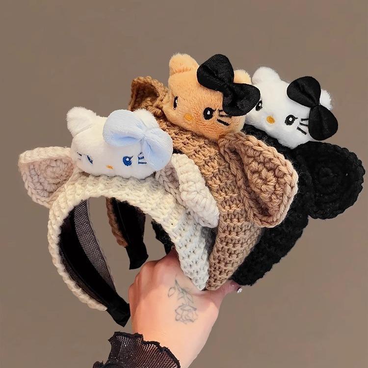 Diadema de lana con diseño de gatito de peluche para lavarse la cara, mascarilla para el cabello de alta presión craneal para mujer, accesorios para el cabello, otoño e invierno 2024, nuevo