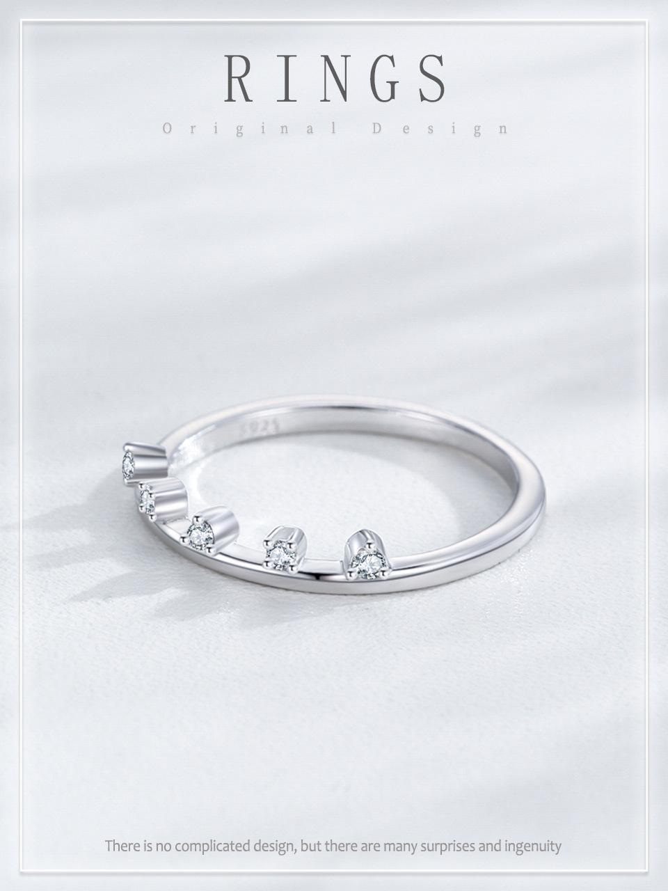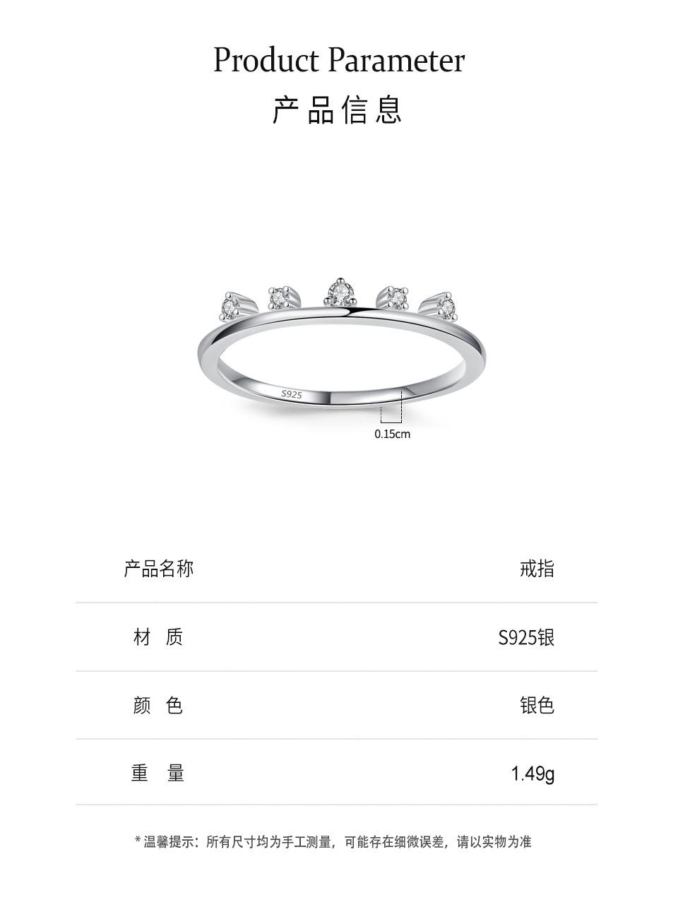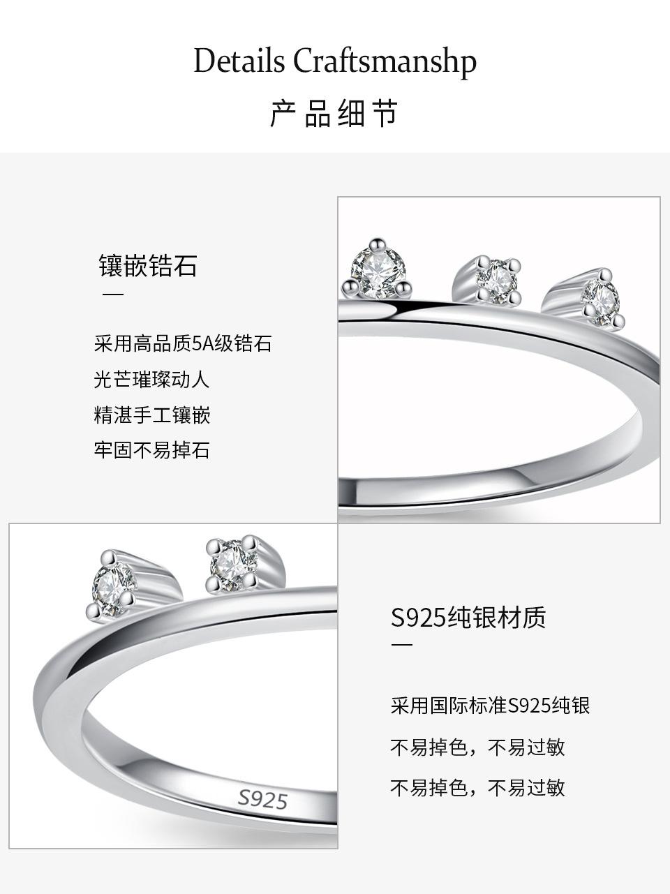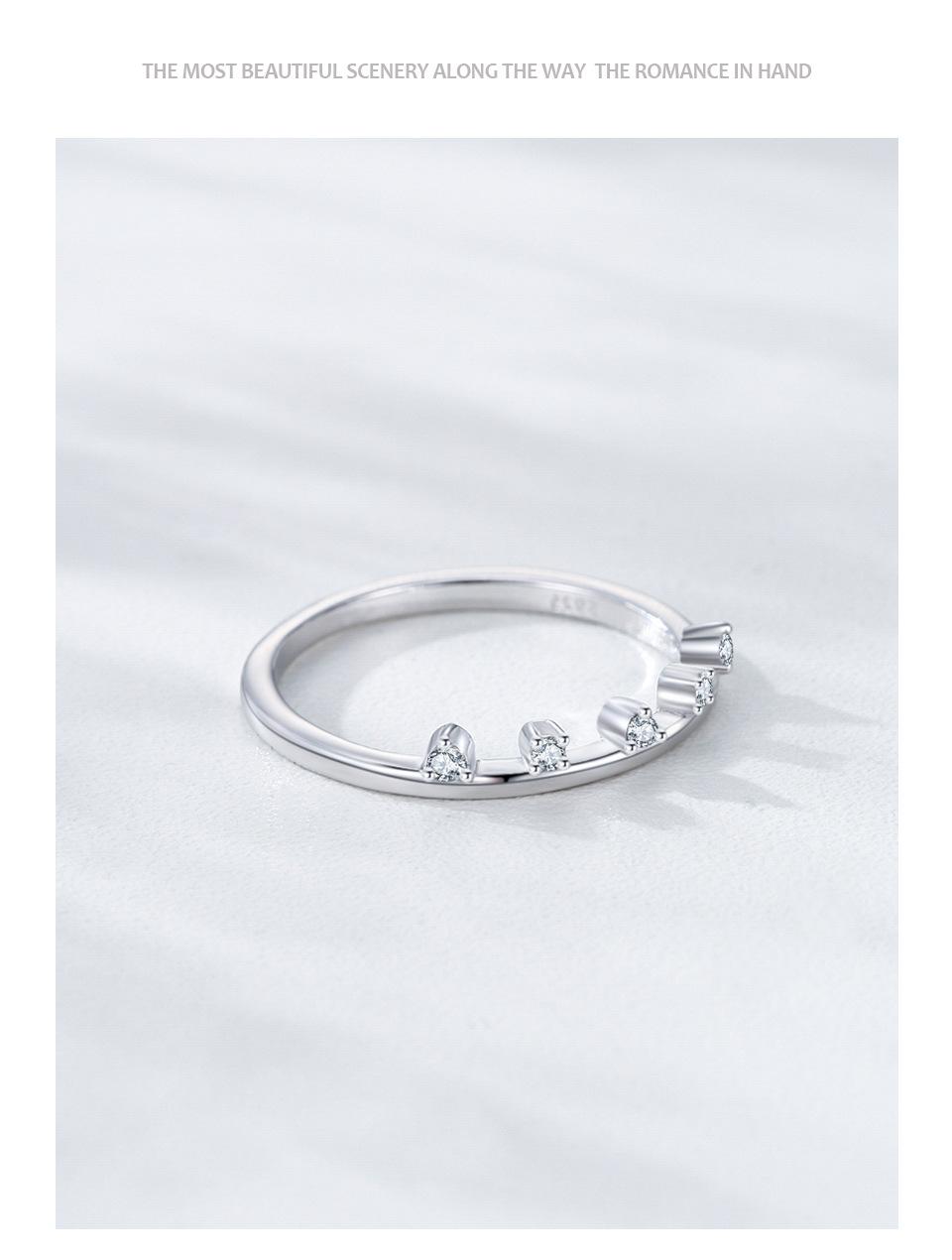Anillo de plata de ley S925 con microincrustaciones y diseño geométrico de corona pequeña para mujer, exquisito anillo para dedo índice con INS de estilo apilado pequeño.