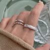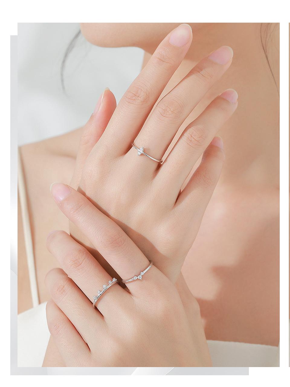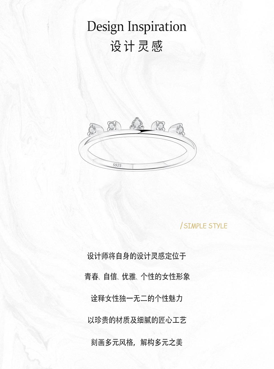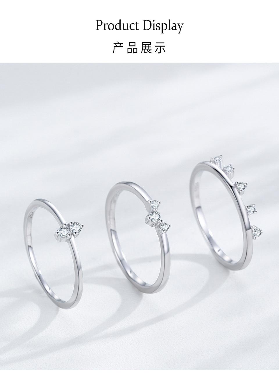 Anillo de plata de ley S925 con microincrustaciones y diseño geométrico de corona pequeña para mujer, exquisito anillo para dedo índice con INS de estilo apilado pequeño.