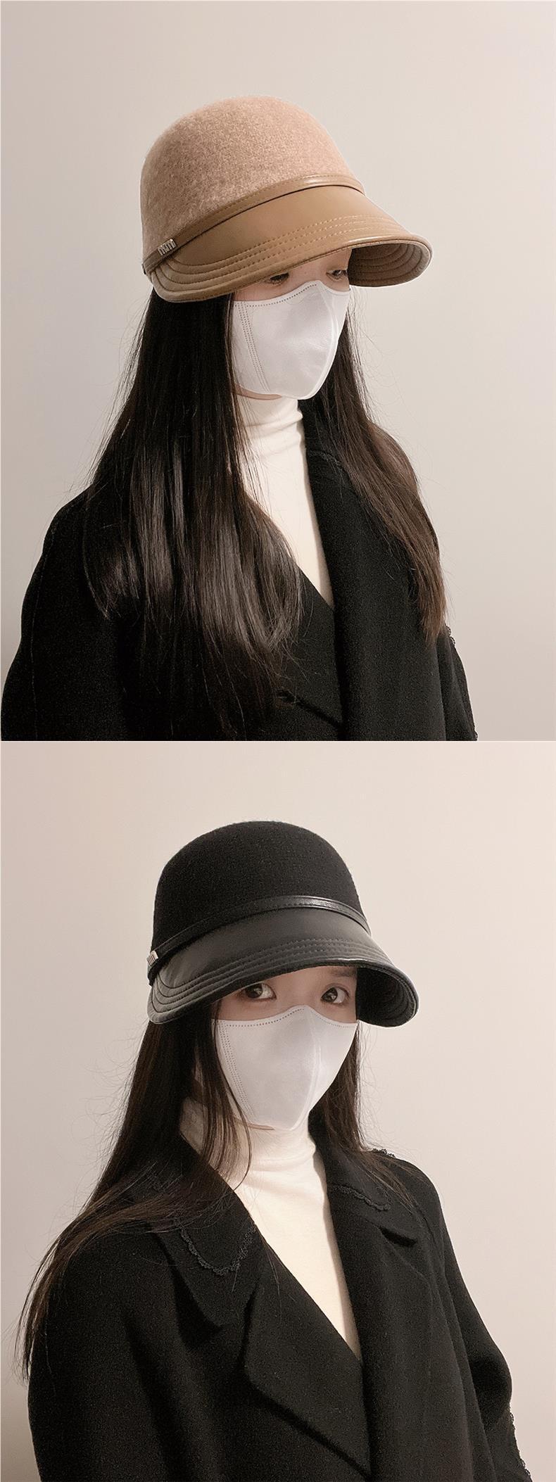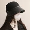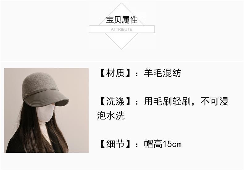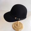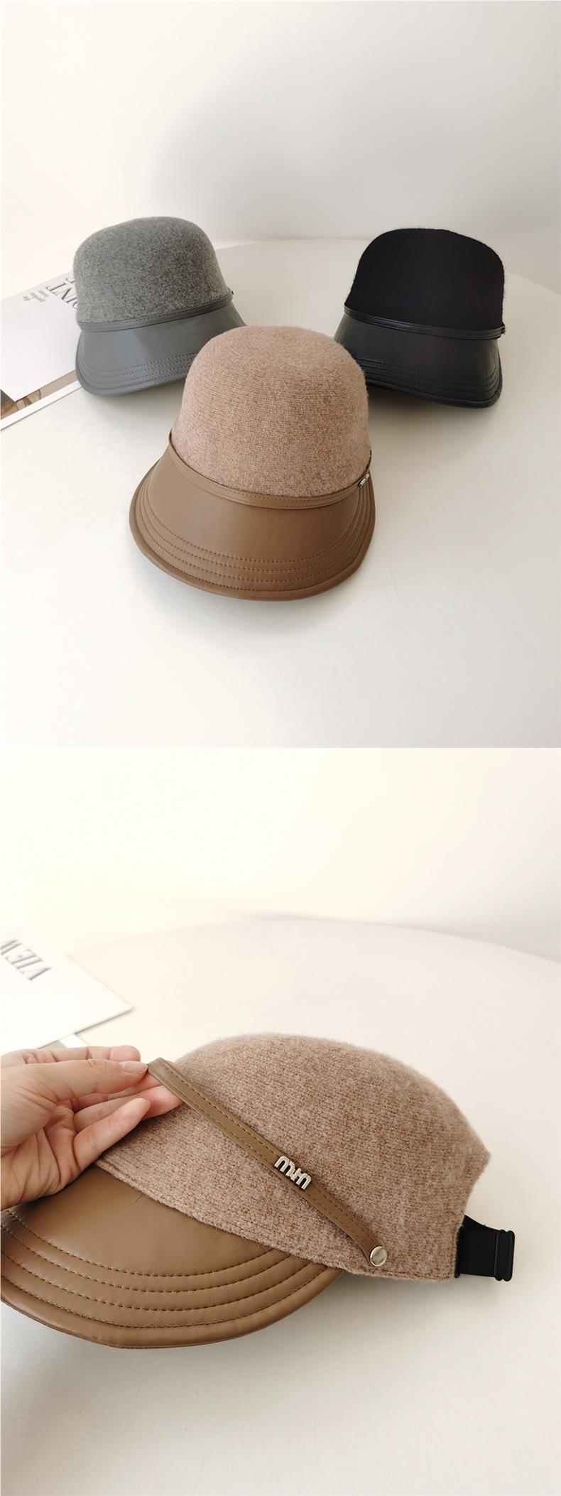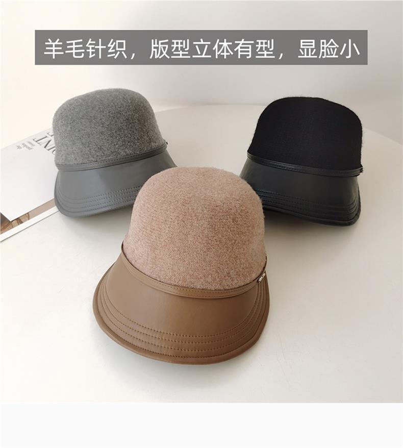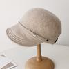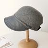 Elegante gorra ecuestre de punto de lana con ala de cuero, estilo de celebridades para otoño e invierno, gorra de béisbol pequeña de estilo coreano para mujer