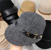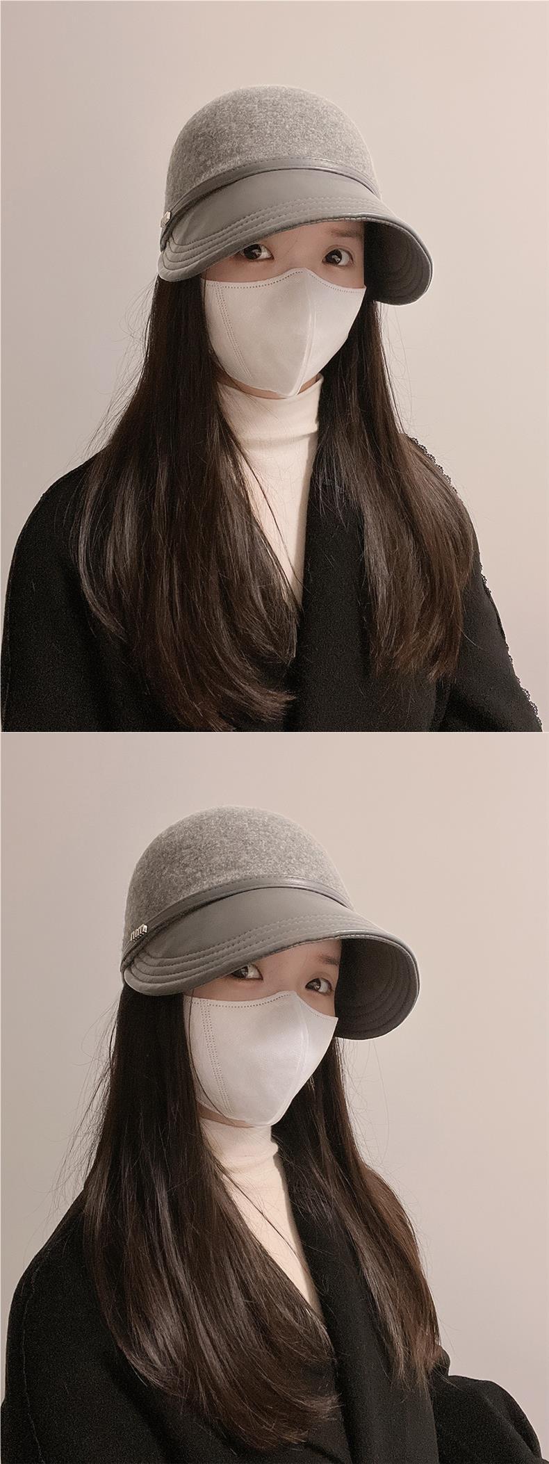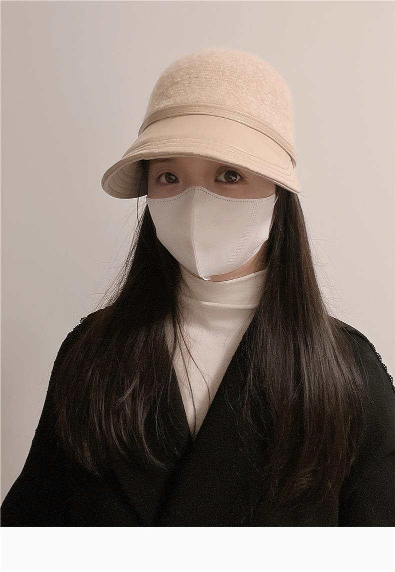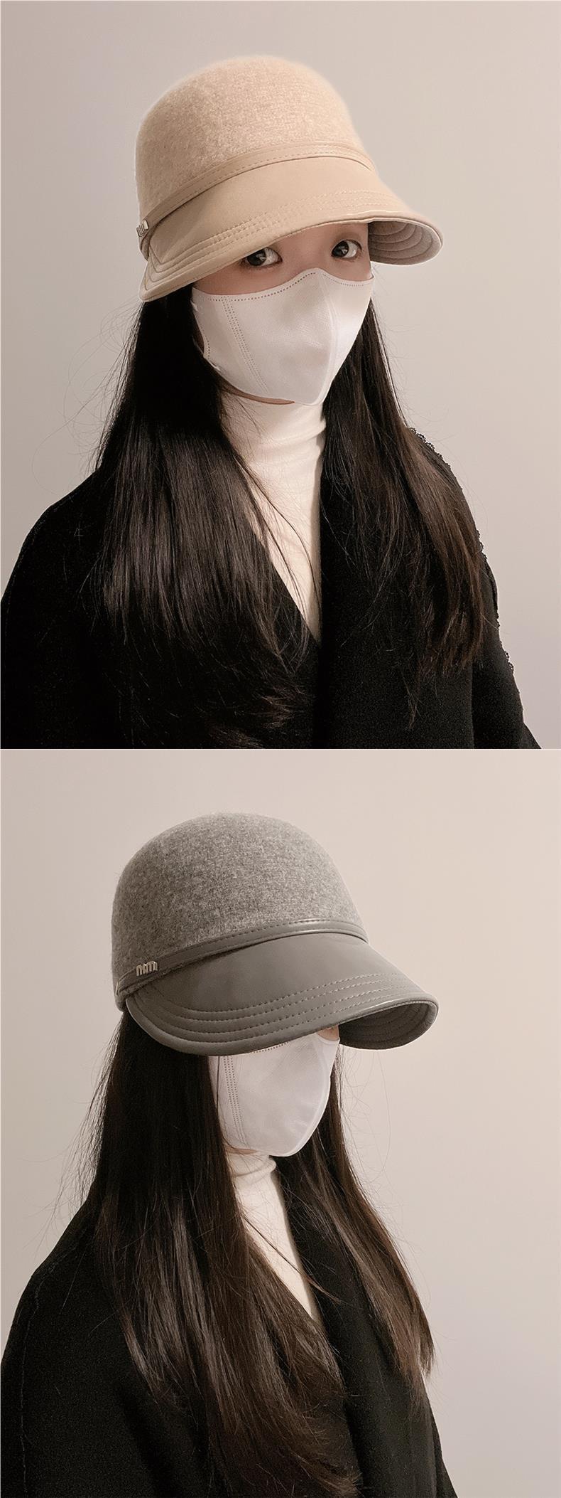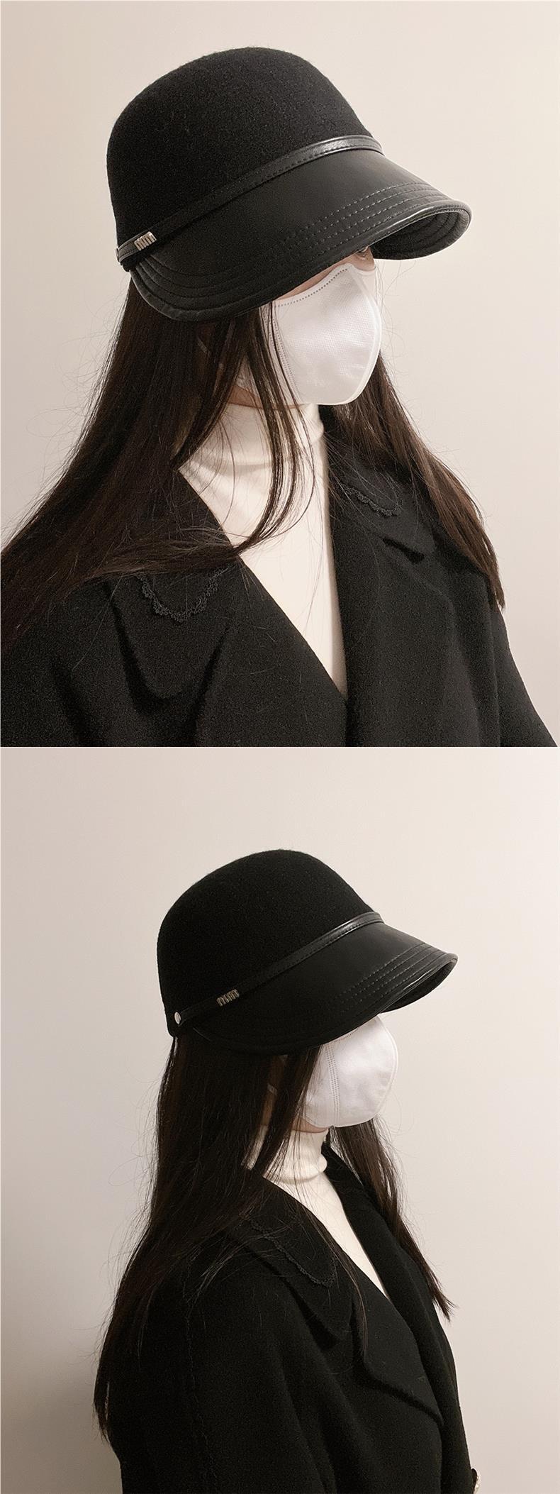 Elegante gorra ecuestre de punto de lana con ala de cuero, estilo de celebridades para otoño e invierno, gorra de béisbol pequeña de estilo coreano para mujer