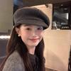 Gorra octogonal de lana con temperamento para niños, otoño e invierno 2024, nueva gorra de pintor pequeña, gorra de vendedor de periódicos a juego, boina