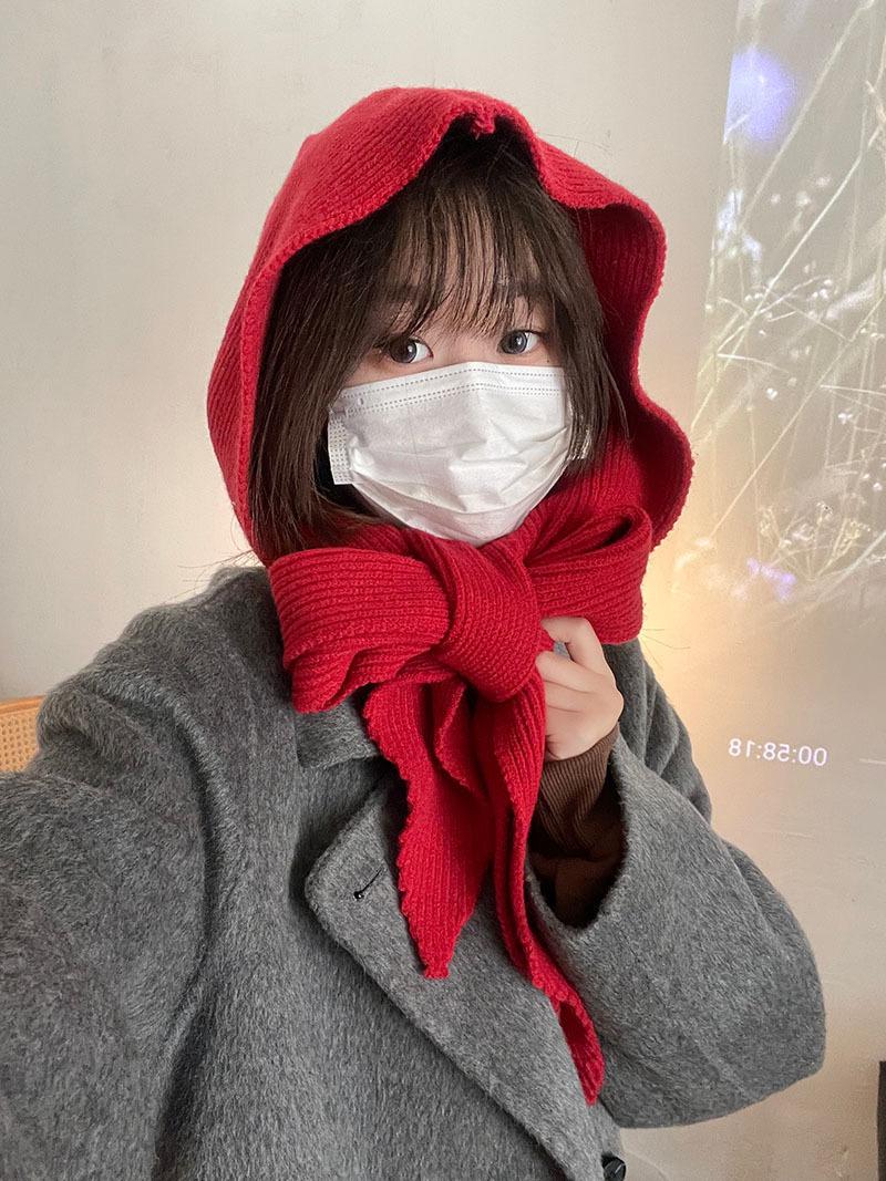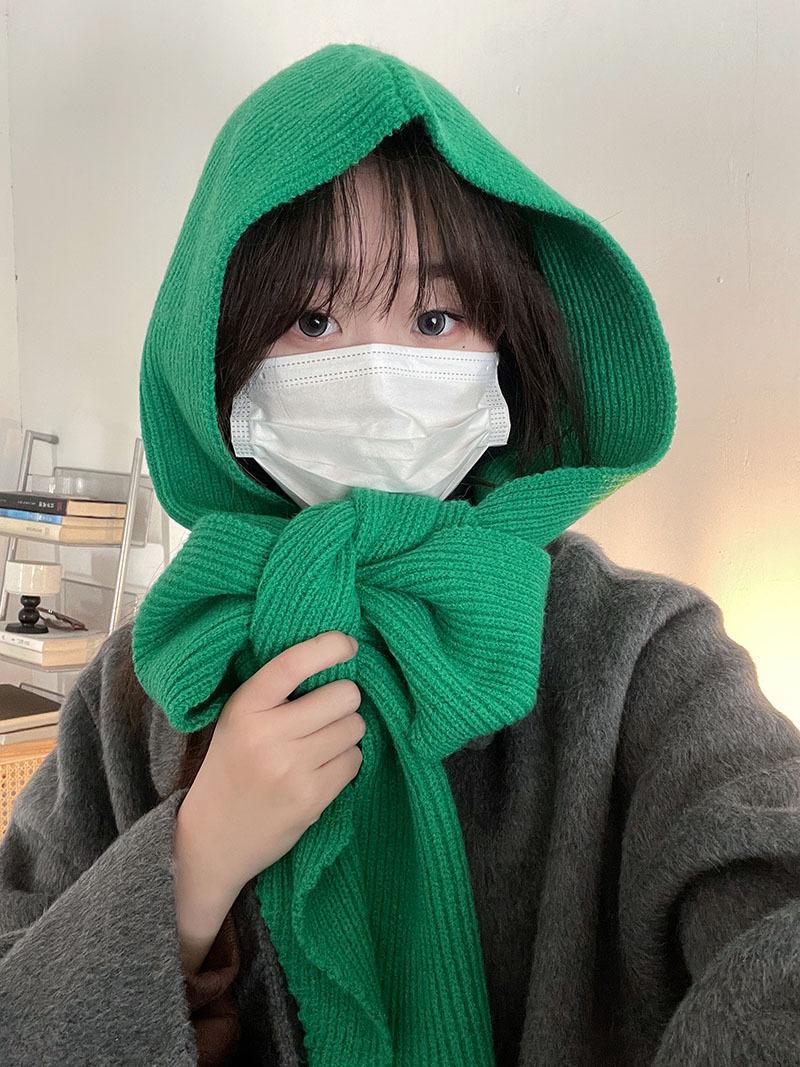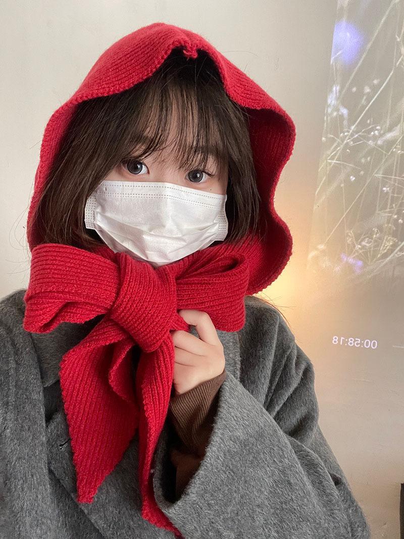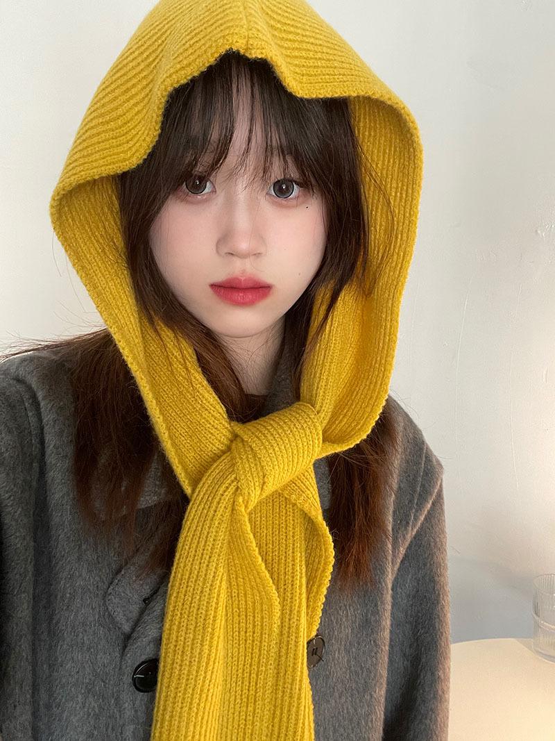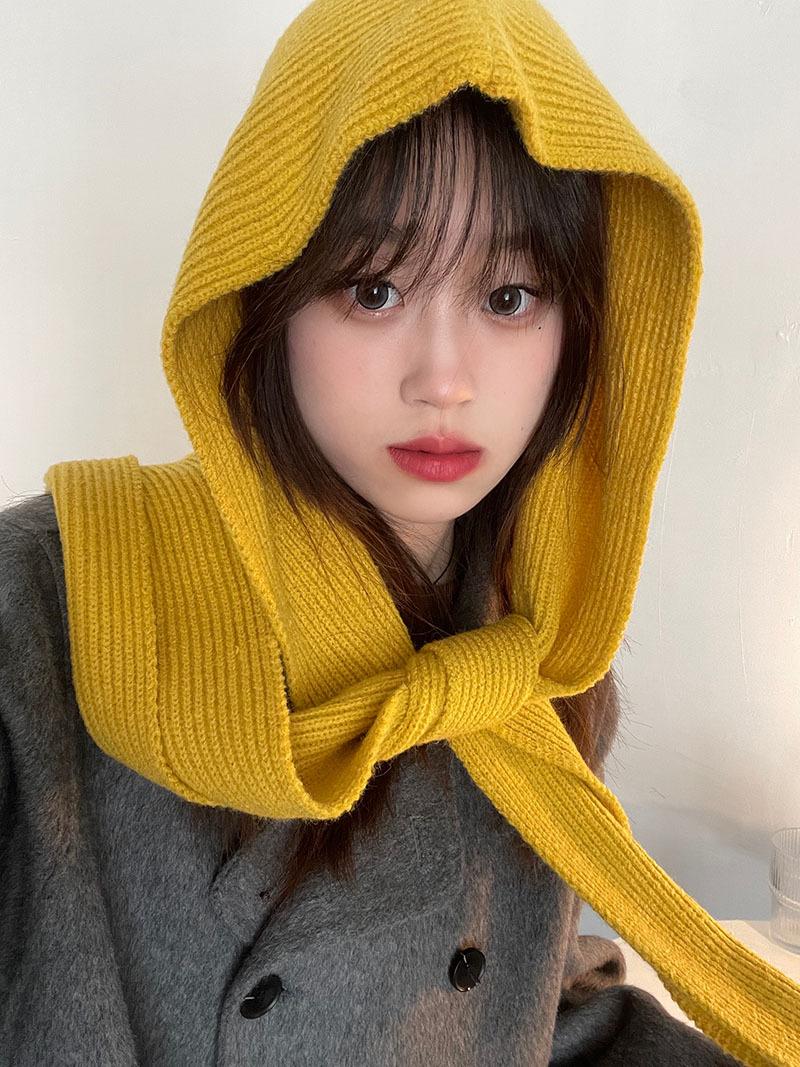 Gorro y bufanda de cachemira sintética para mujer, chal de punto con capucha, protección para las orejas, bufanda de doble uso, para otoño e invierno