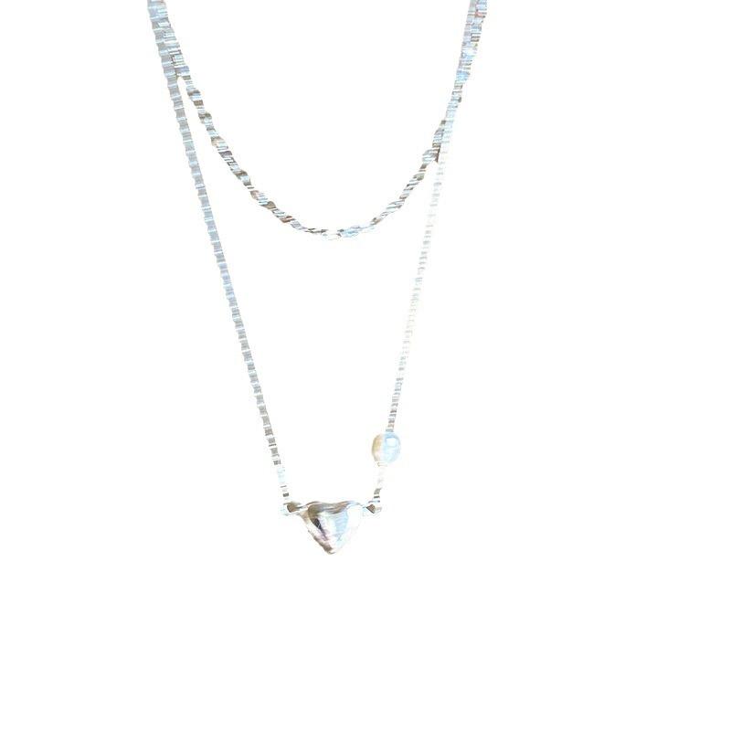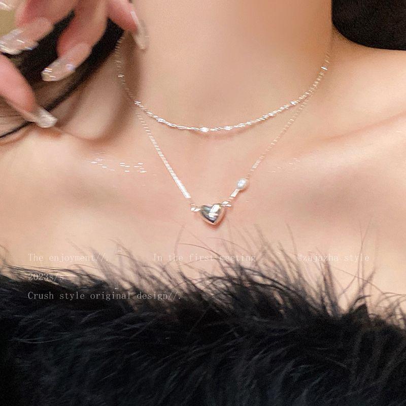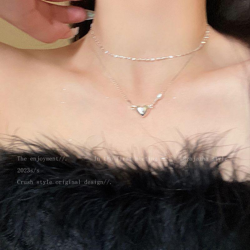 Collar con colgante de doble capa apilada para mujer, cadena de clavícula con estilo simple y elegante, con personalidad y estilo frío.