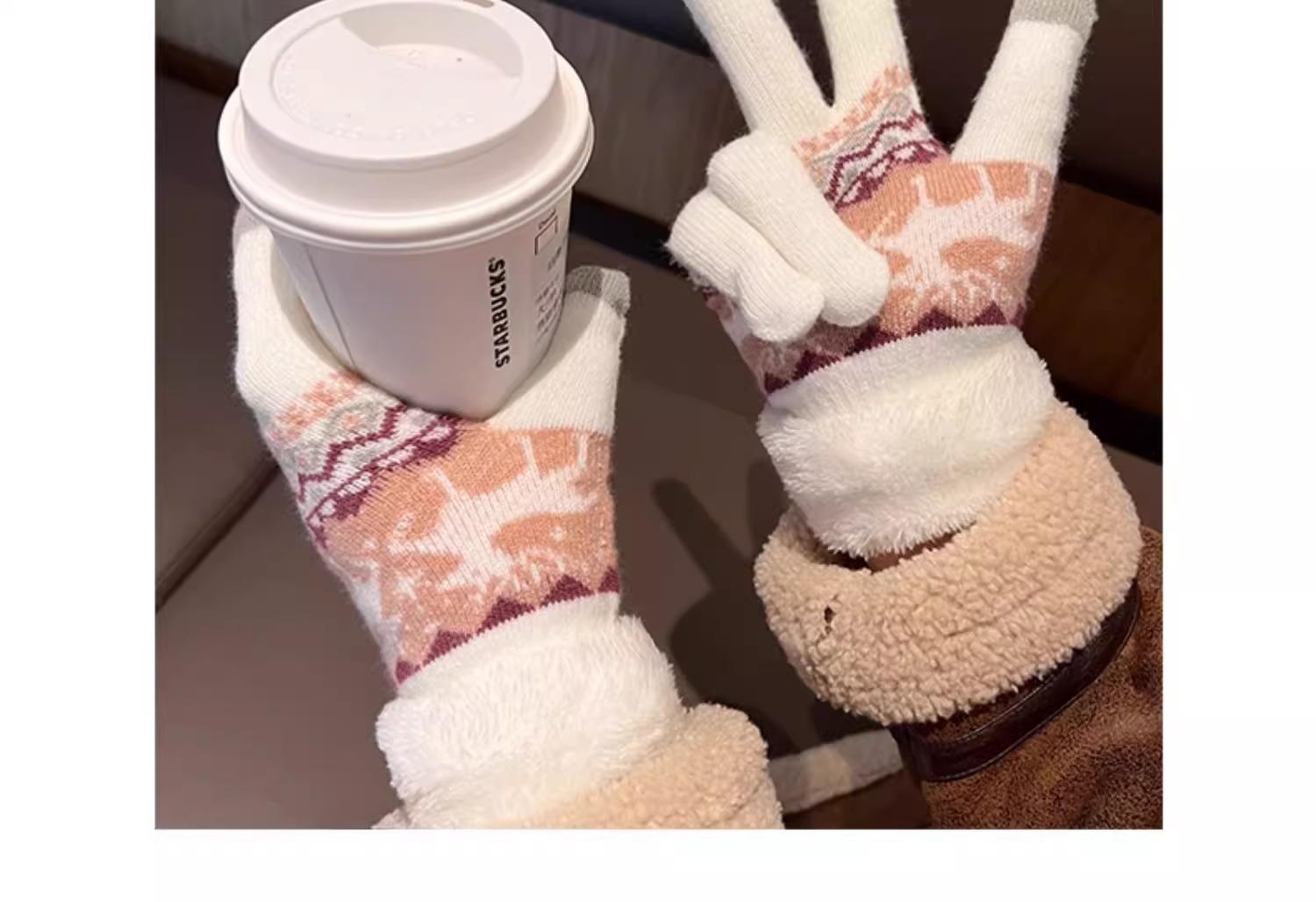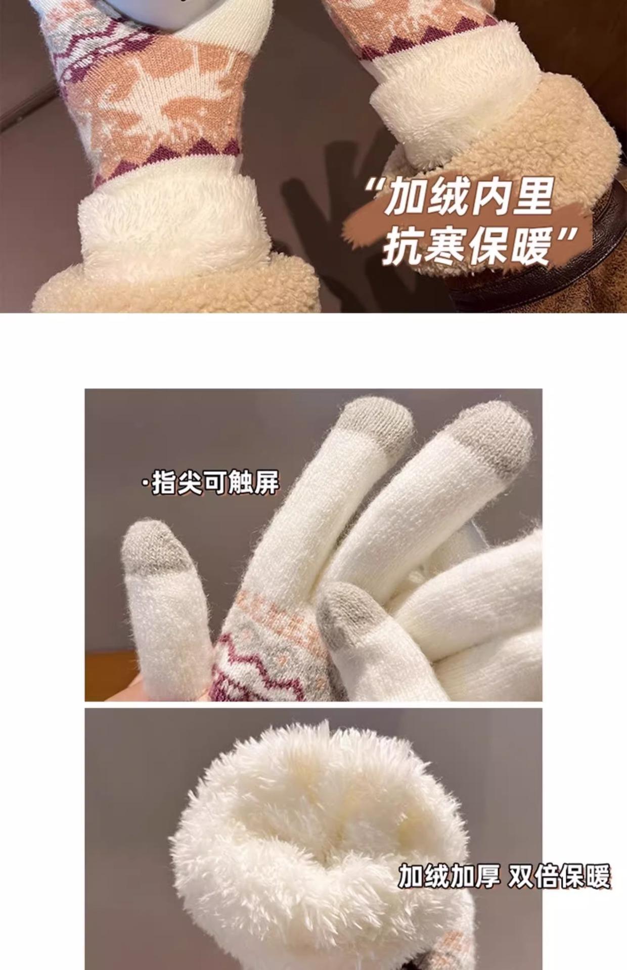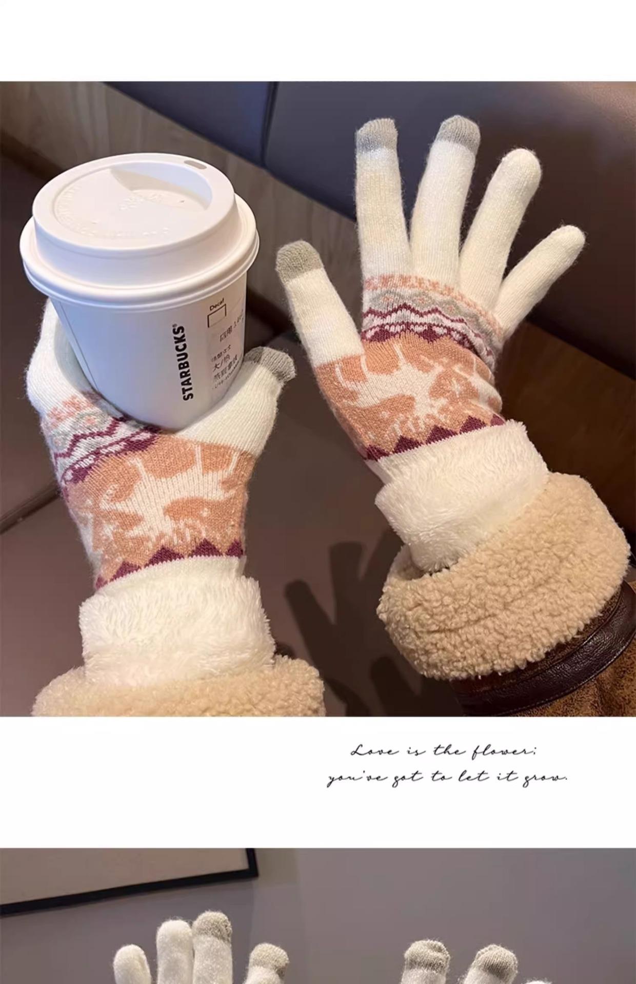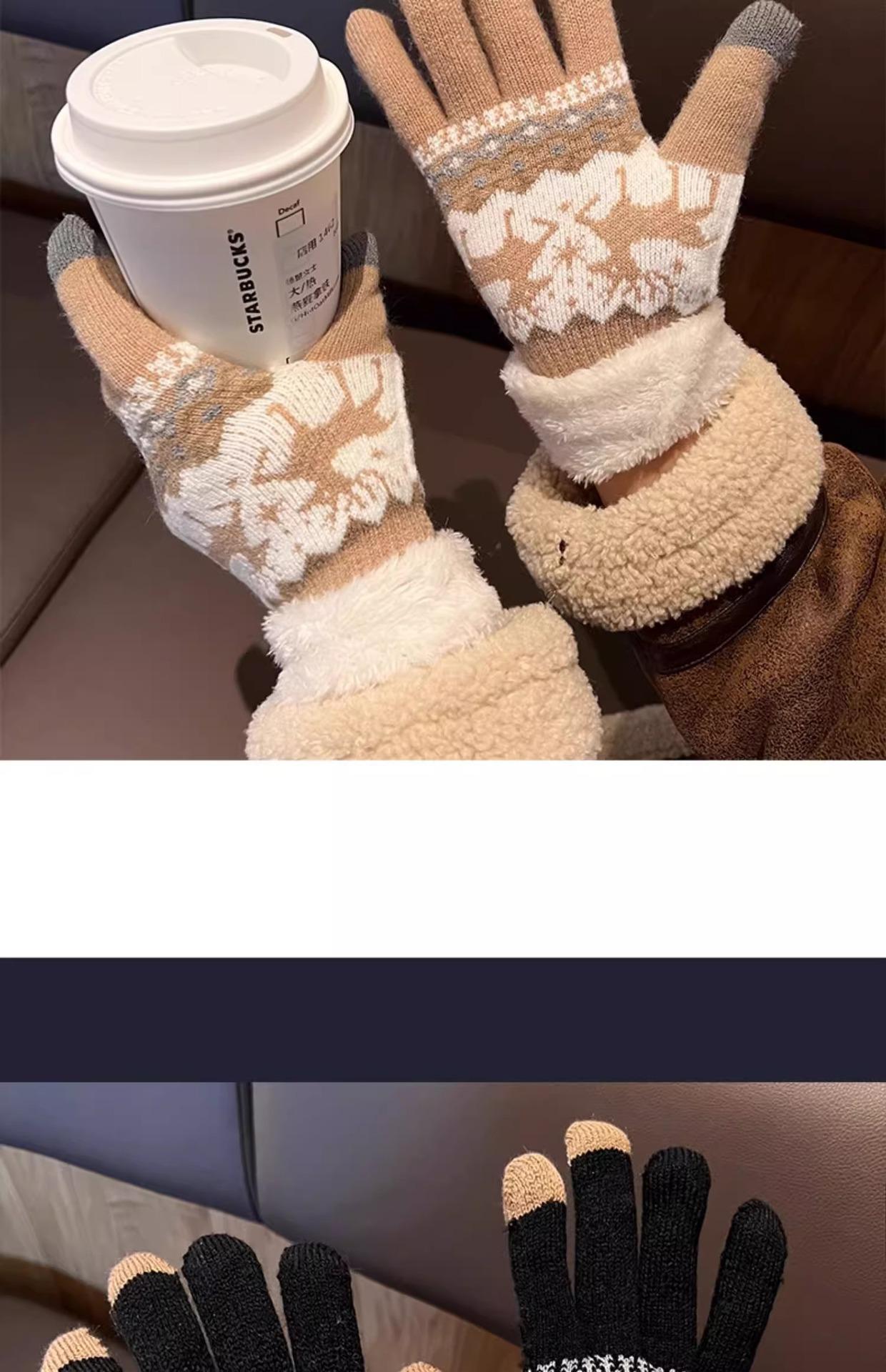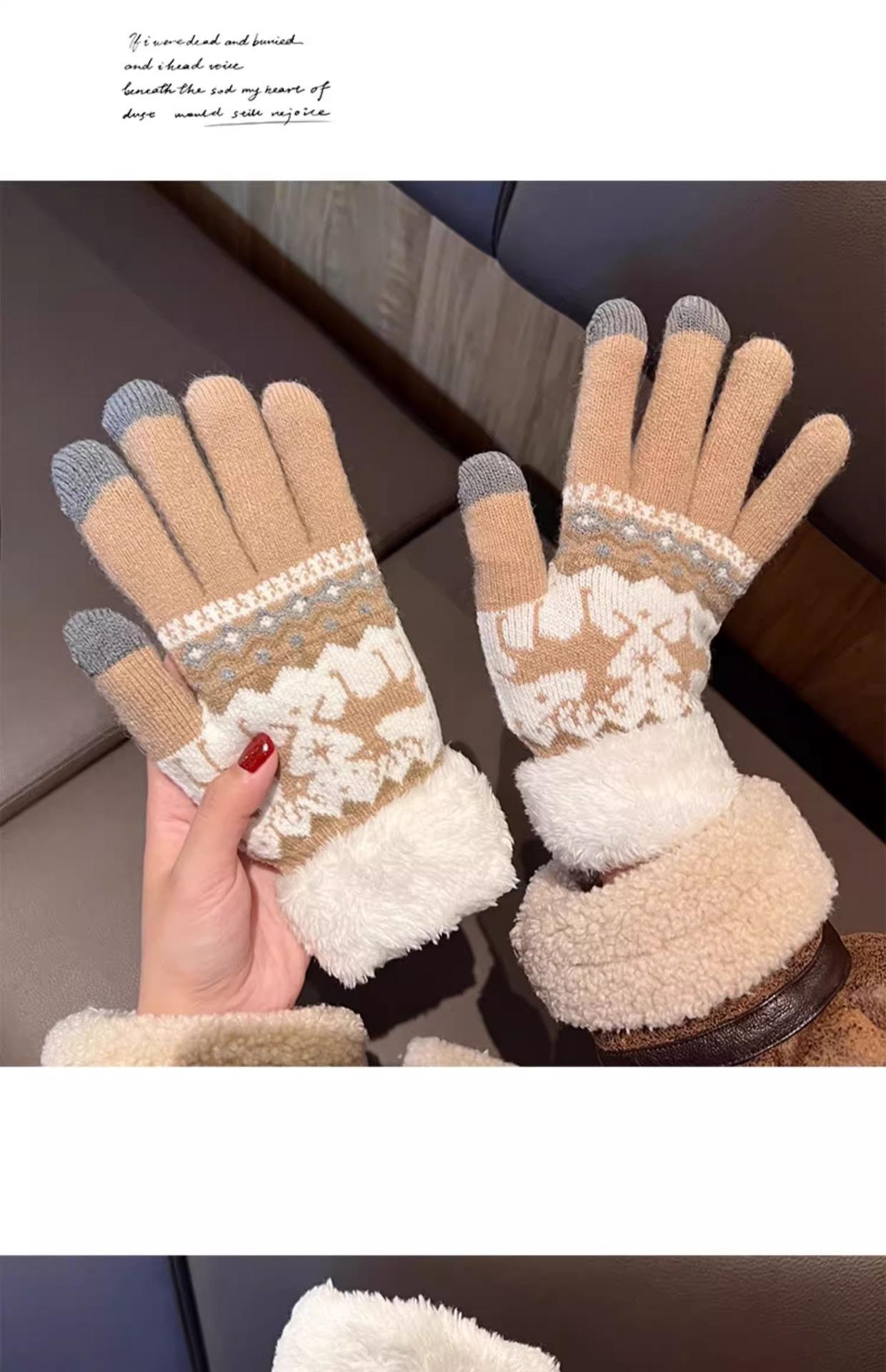 Guantes cálidos para estudiantes en otoño e invierno con forro polar grueso para ciclismo, de lana de punto color cervatillo, bonitos guantes para dedos para mujer.