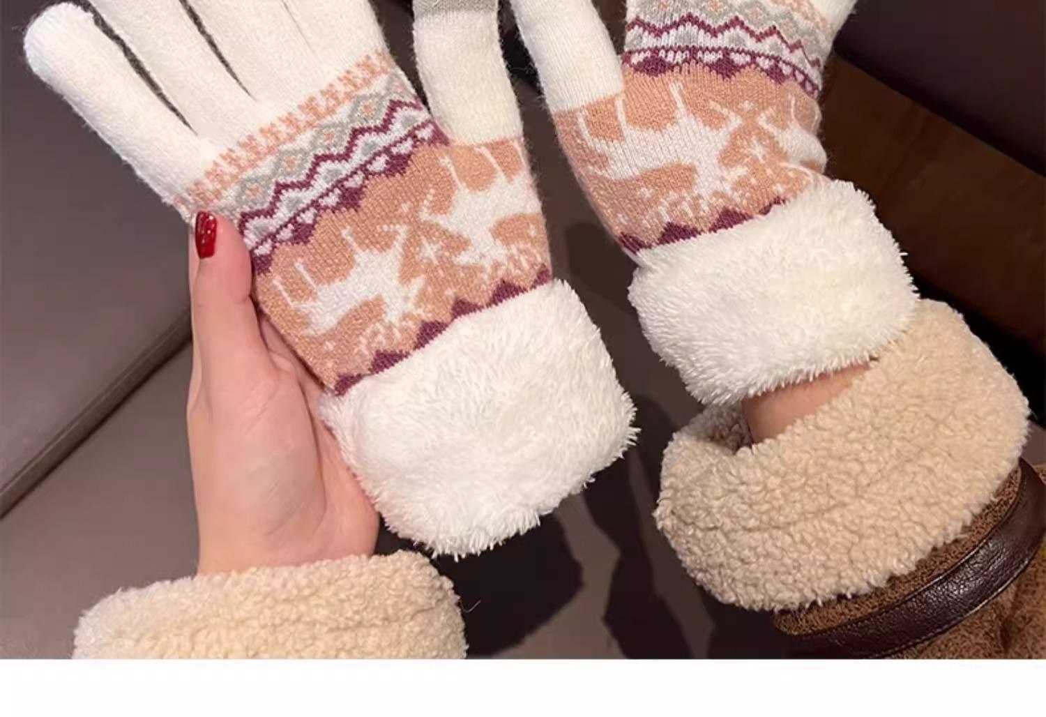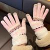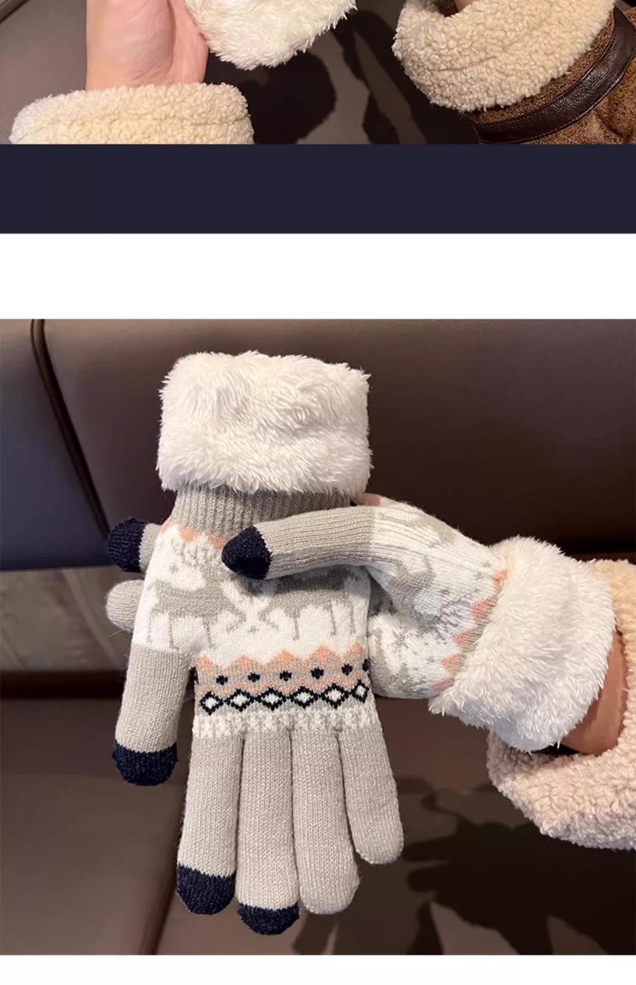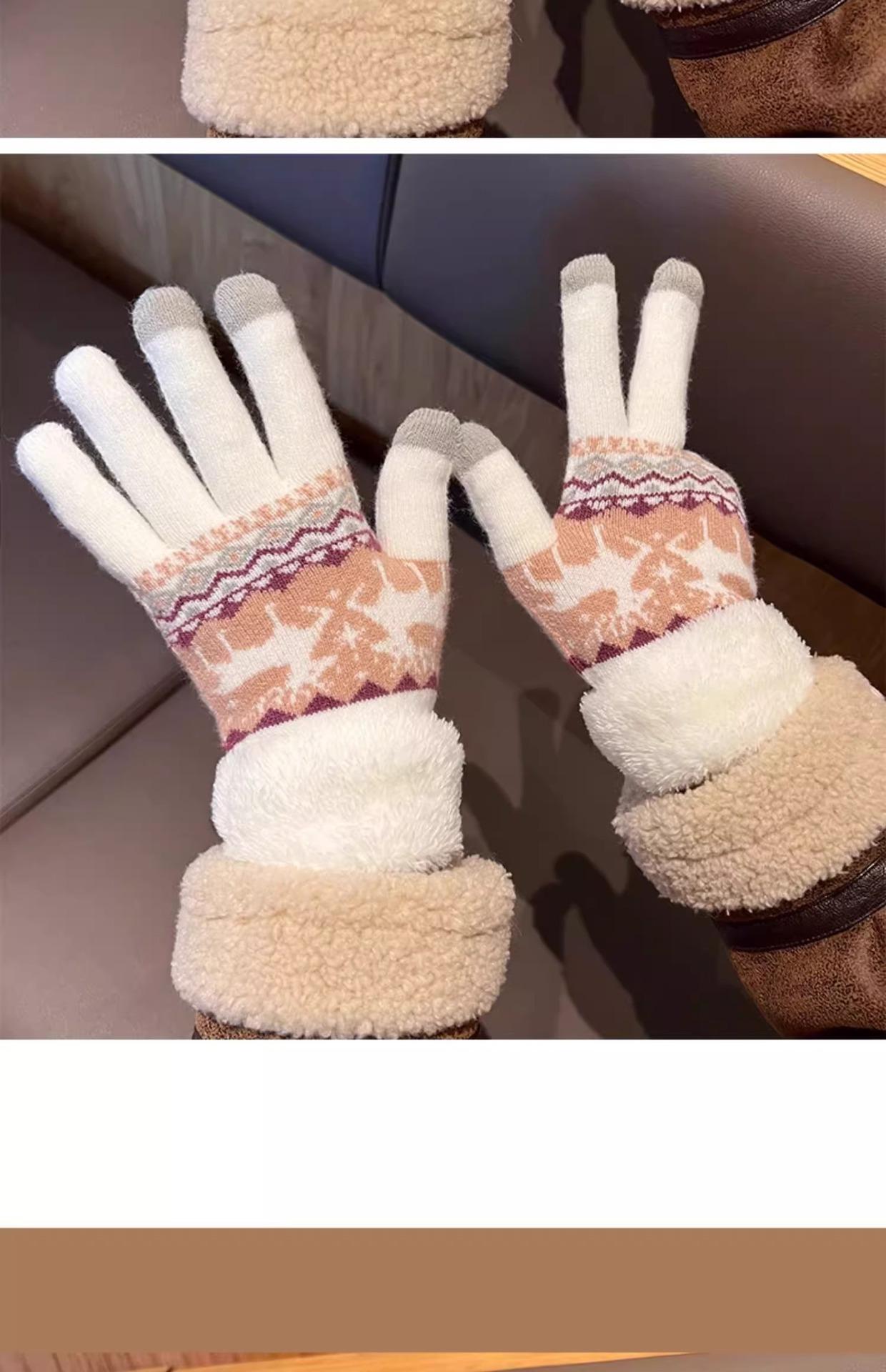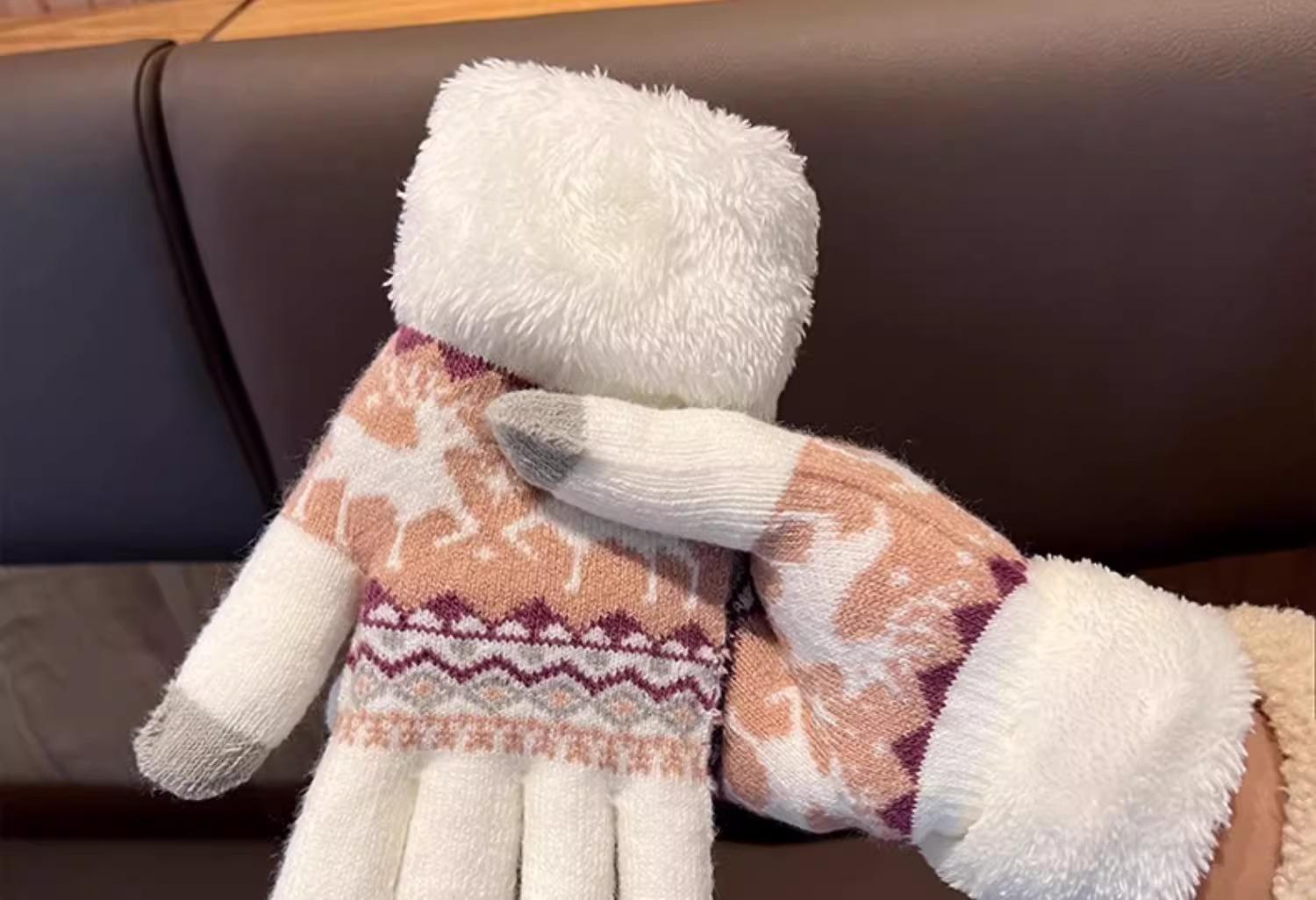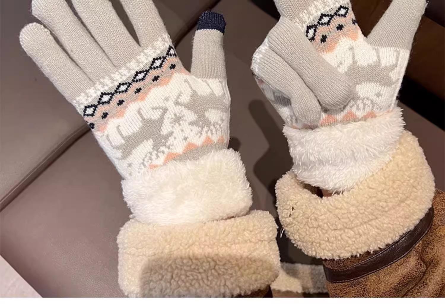 Guantes cálidos para estudiantes en otoño e invierno con forro polar grueso para ciclismo, de lana de punto color cervatillo, bonitos guantes para dedos para mujer.
