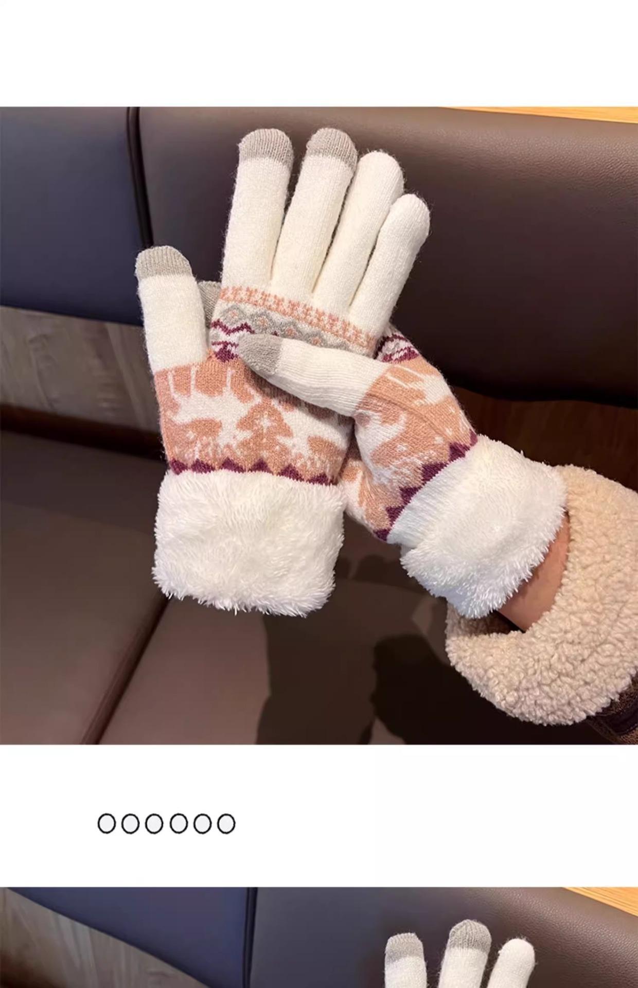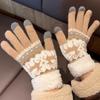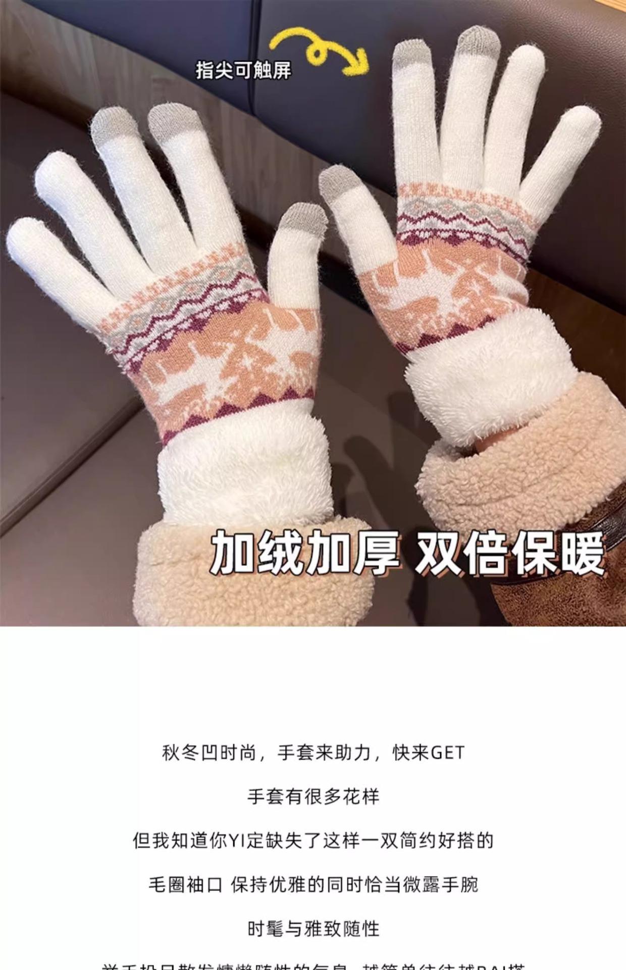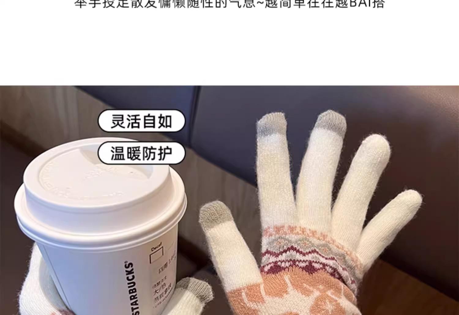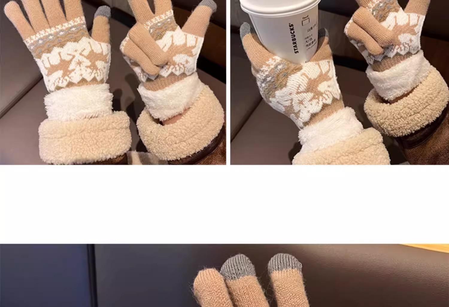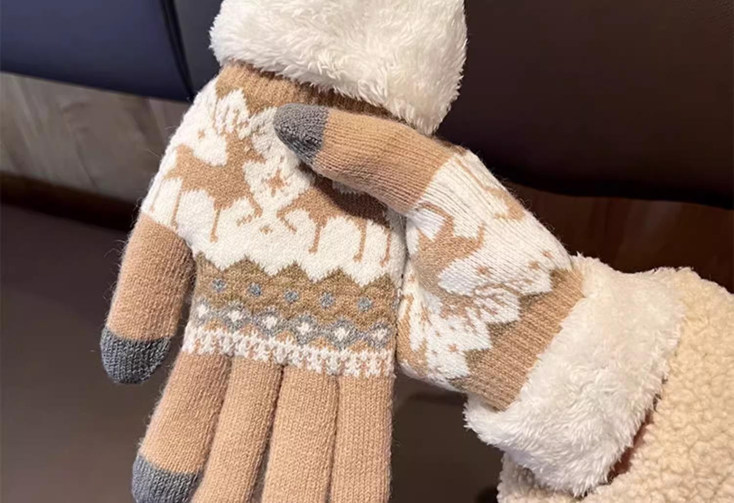 Guantes cálidos para estudiantes en otoño e invierno con forro polar grueso para ciclismo, de lana de punto color cervatillo, bonitos guantes para dedos para mujer.