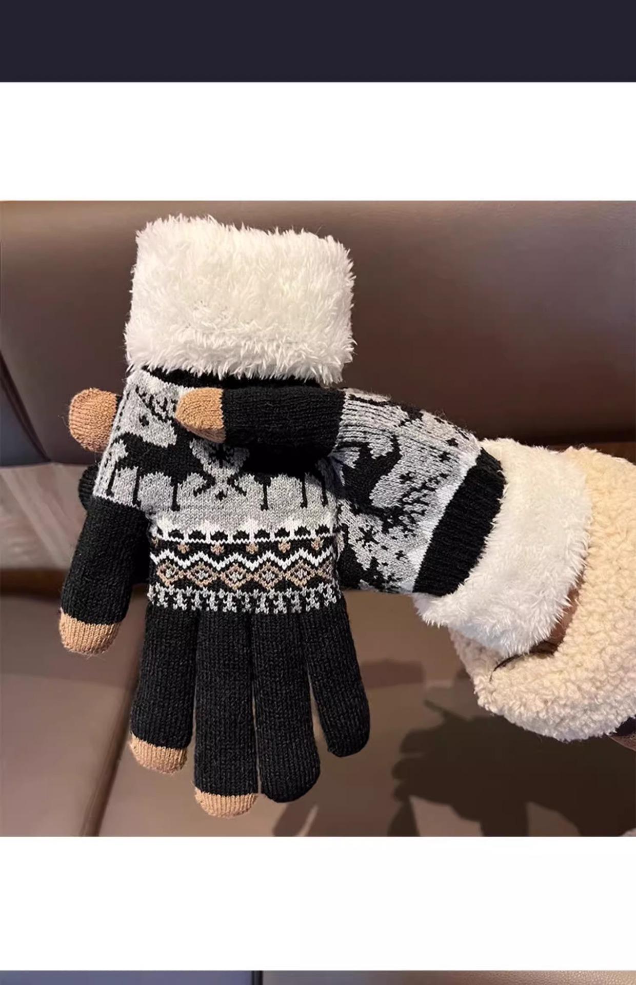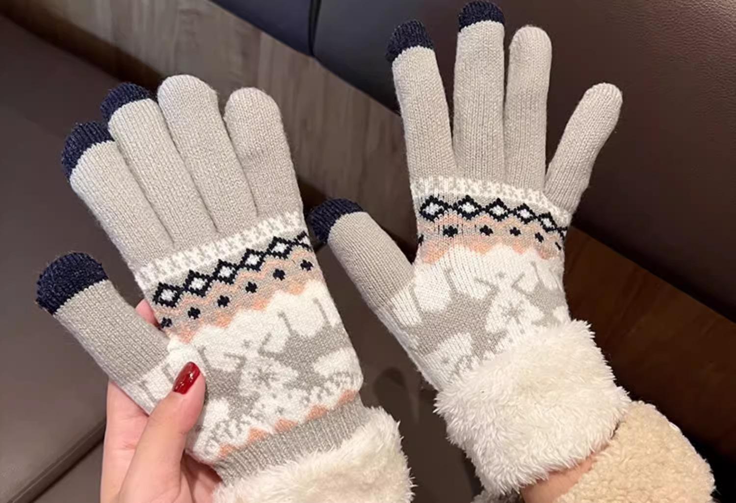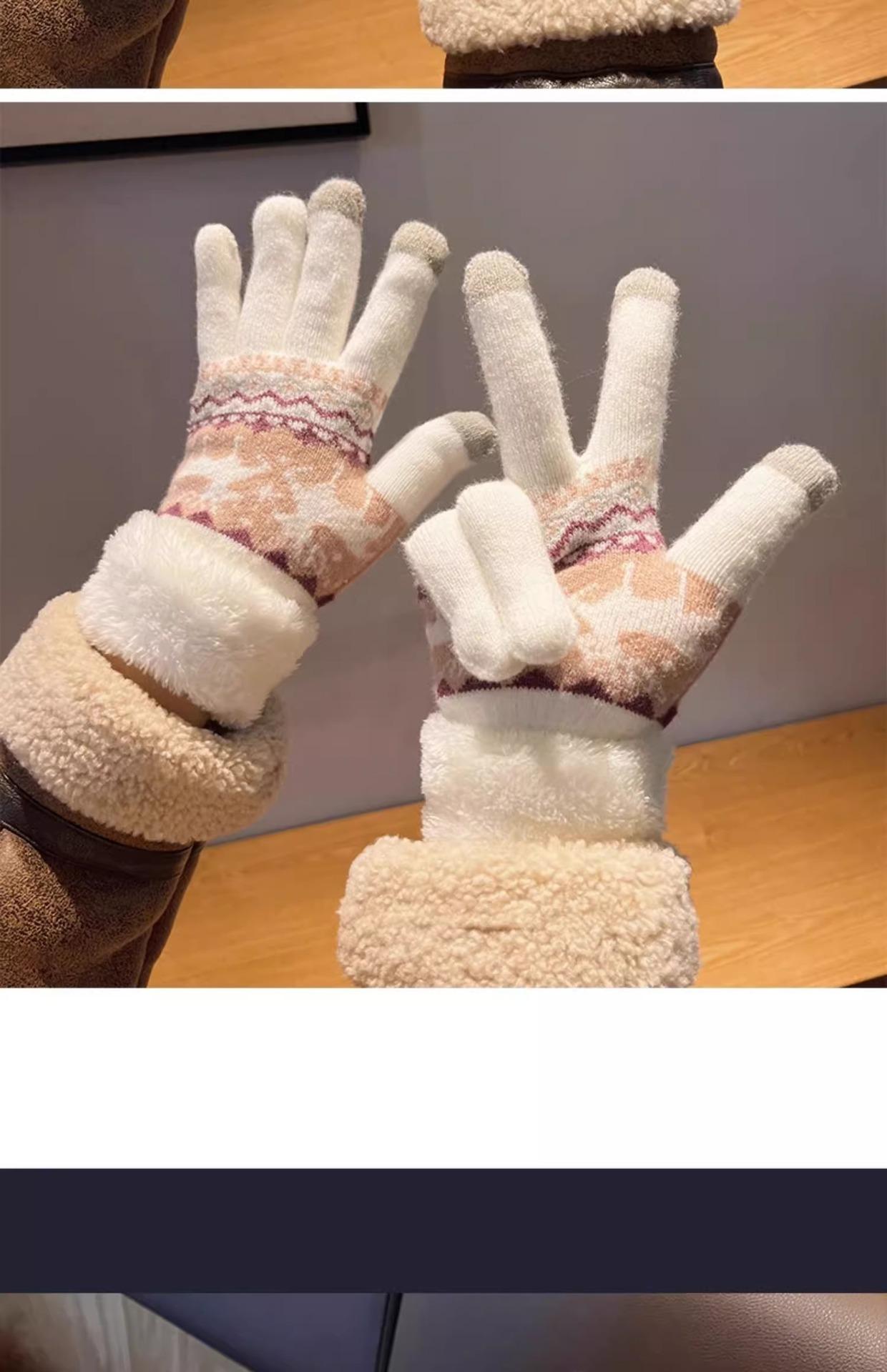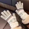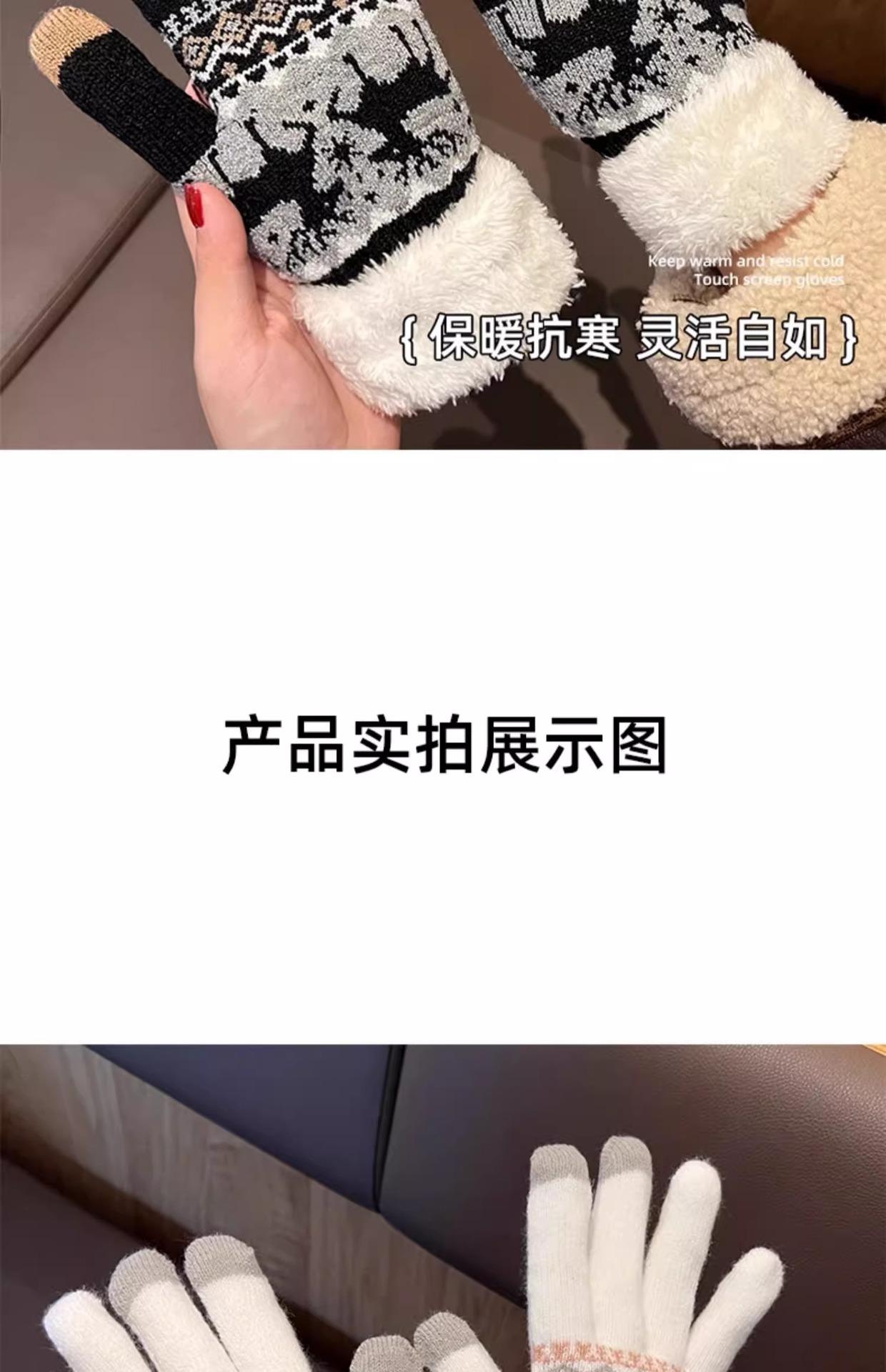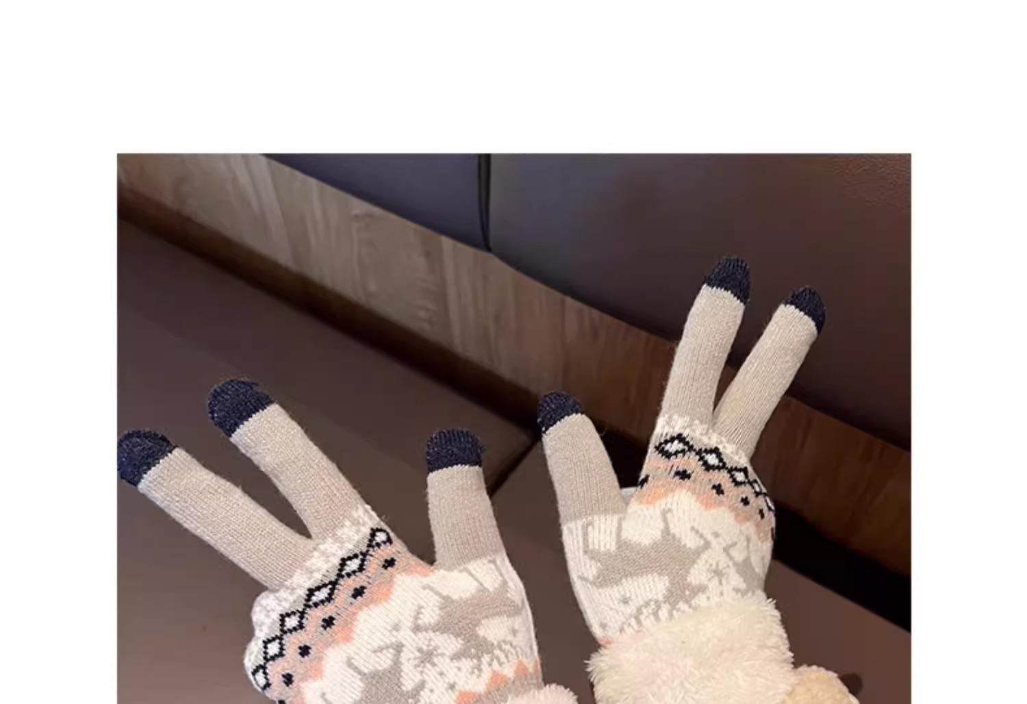 Guantes cálidos para estudiantes en otoño e invierno con forro polar grueso para ciclismo, de lana de punto color cervatillo, bonitos guantes para dedos para mujer.