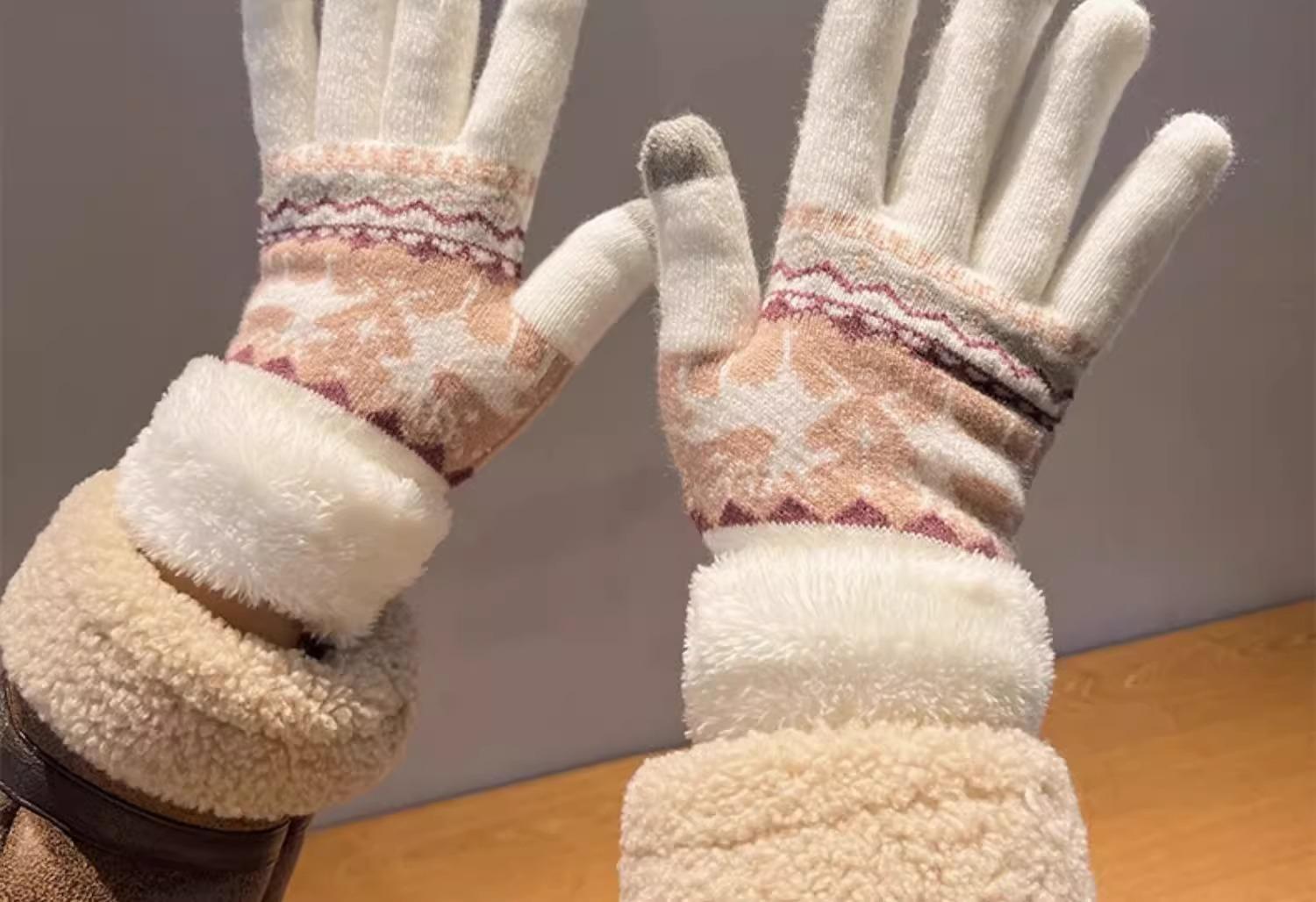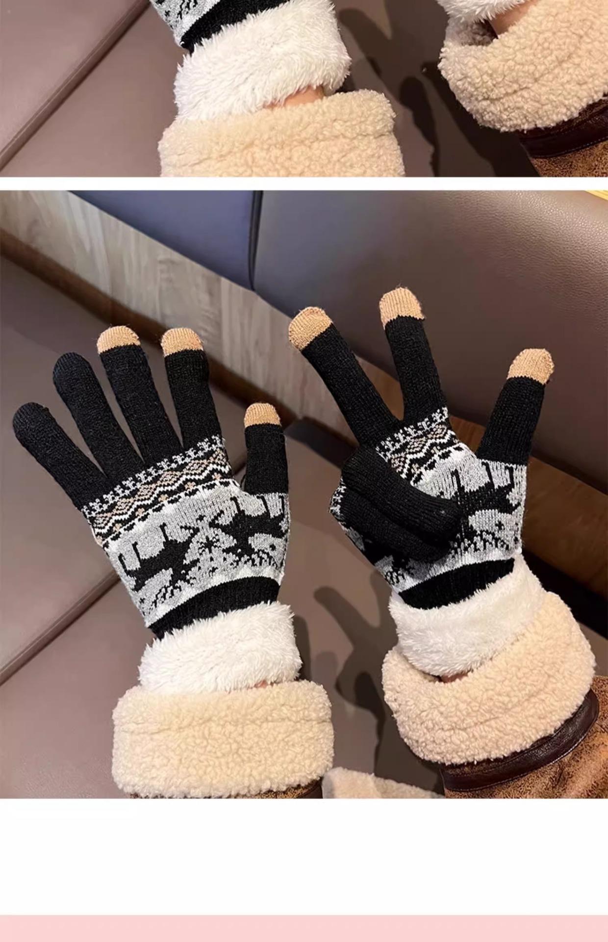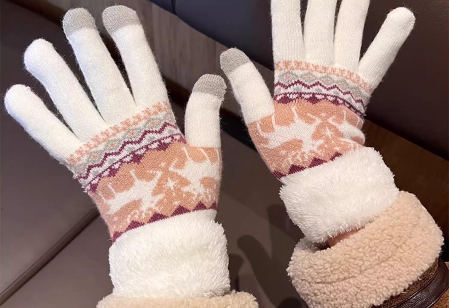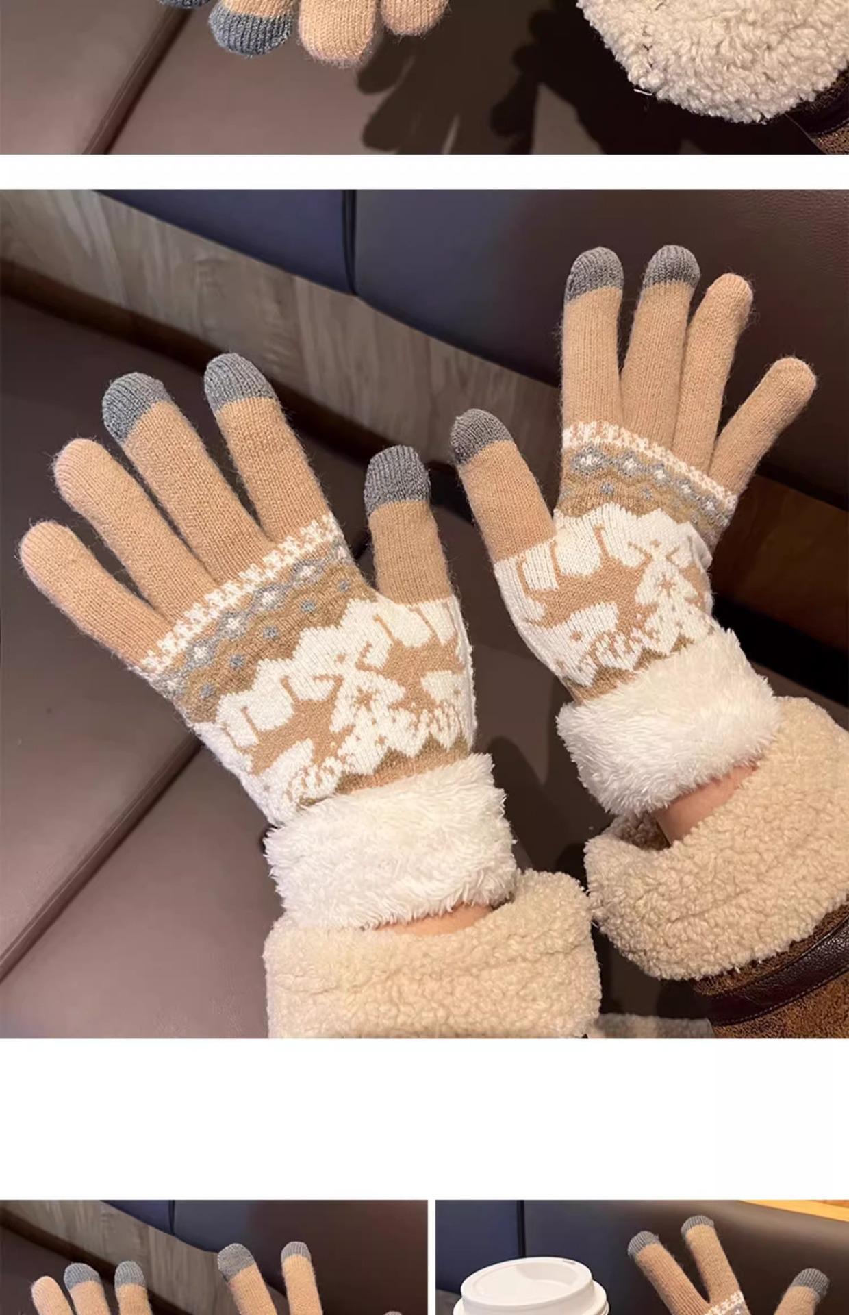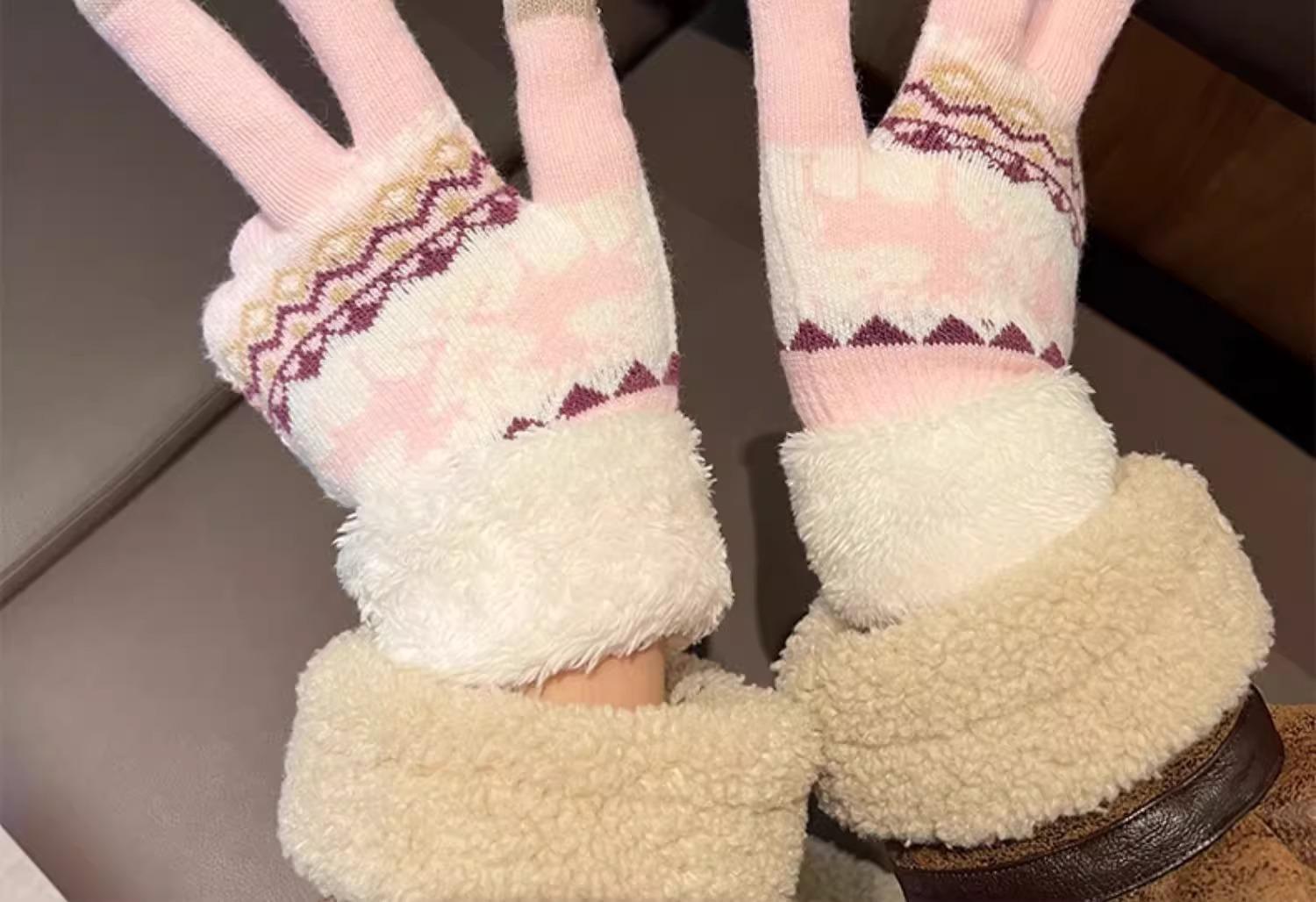Guantes cálidos para estudiantes en otoño e invierno con forro polar grueso para ciclismo, de lana de punto color cervatillo, bonitos guantes para dedos para mujer.