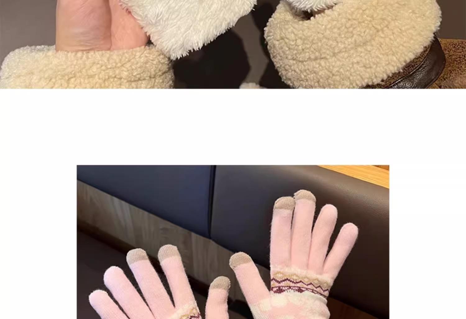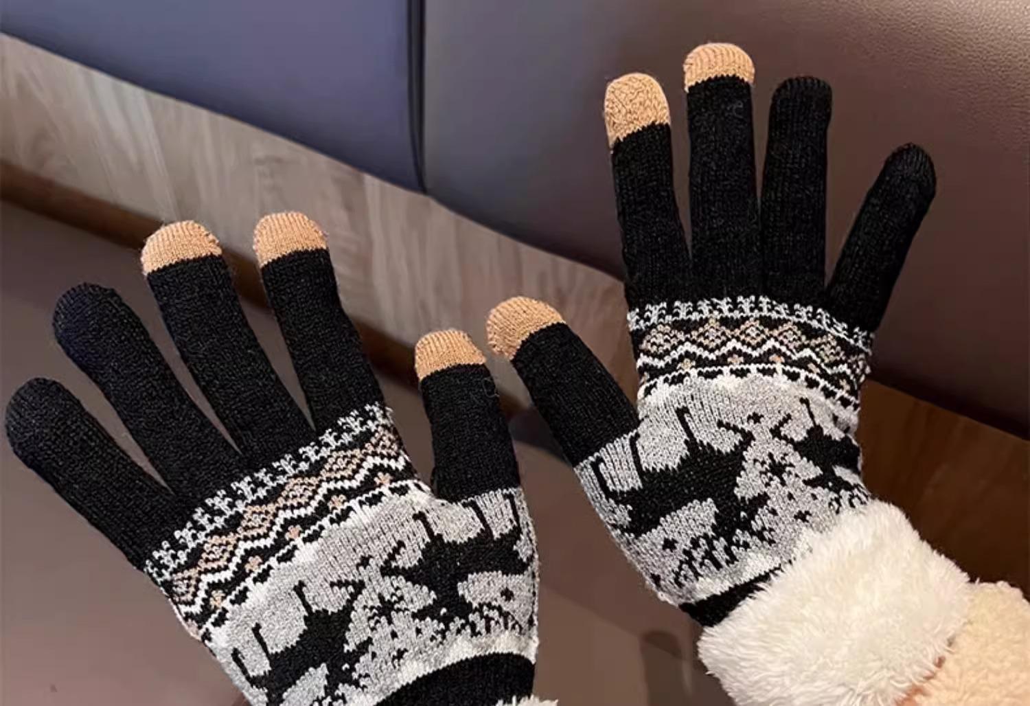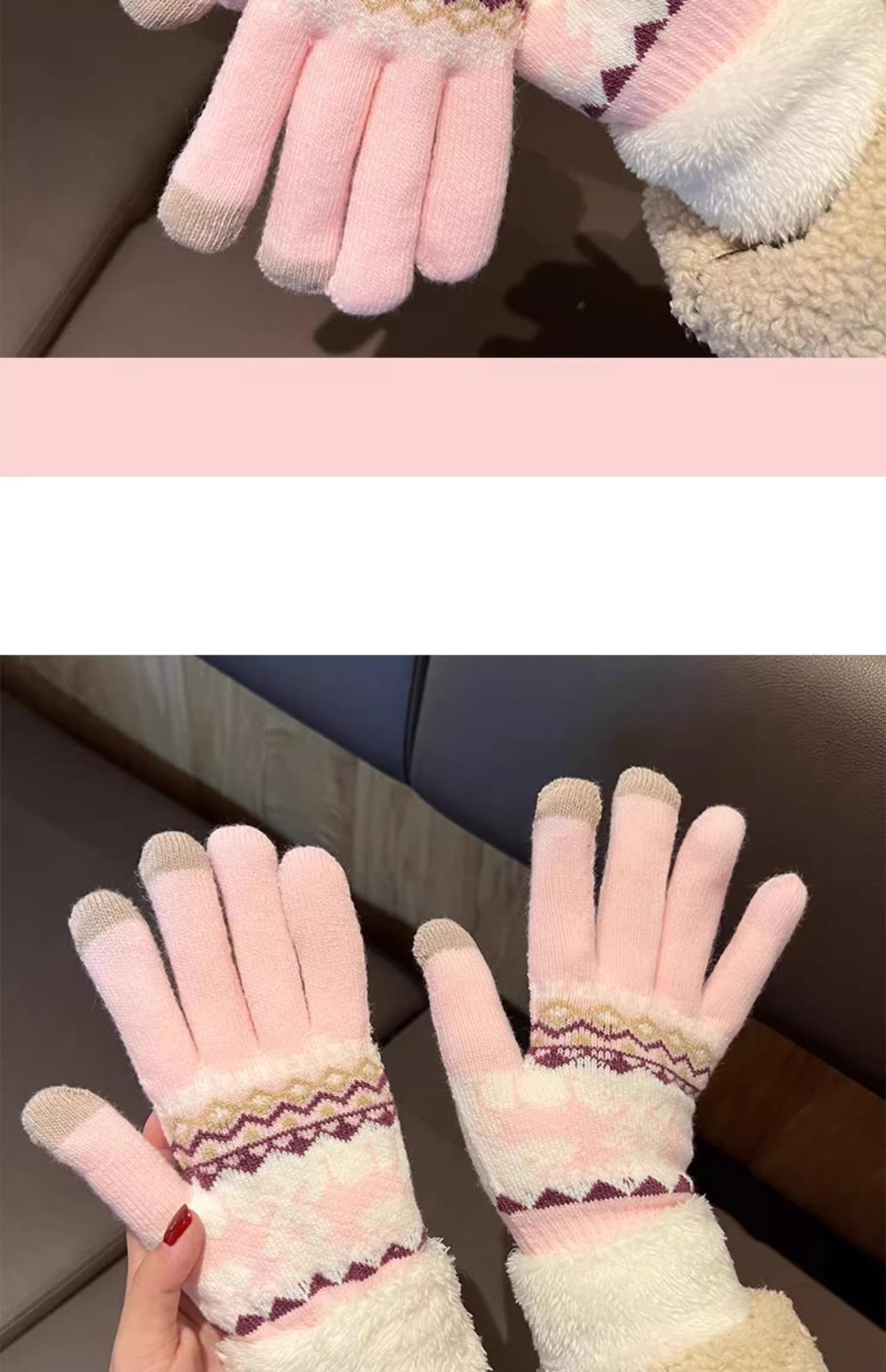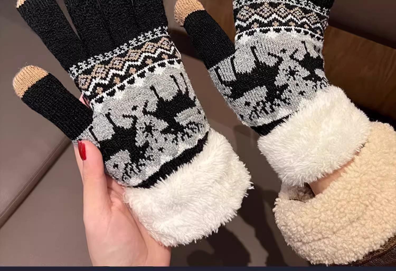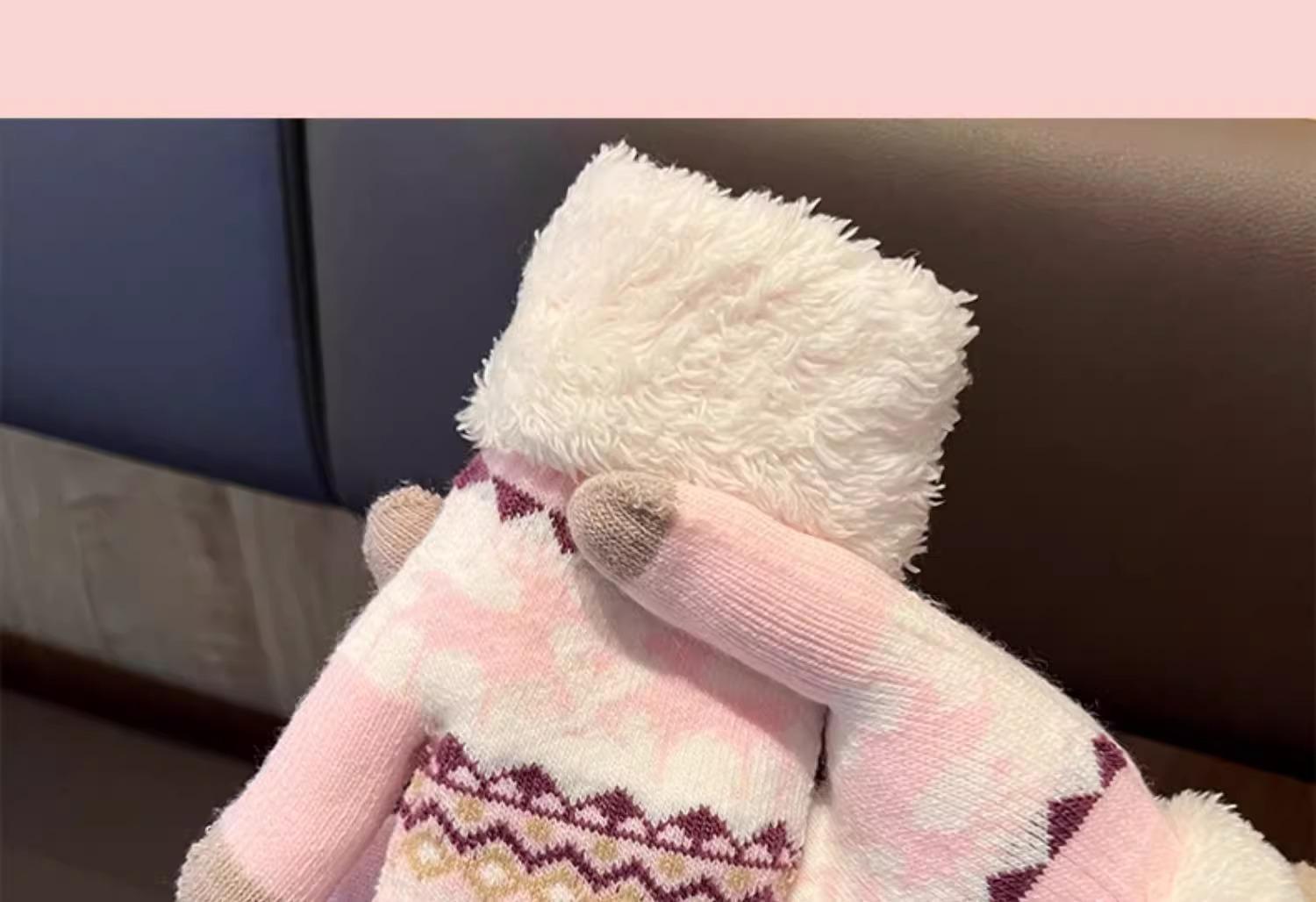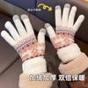 Guantes cálidos para estudiantes en otoño e invierno con forro polar grueso para ciclismo, de lana de punto color cervatillo, bonitos guantes para dedos para mujer.