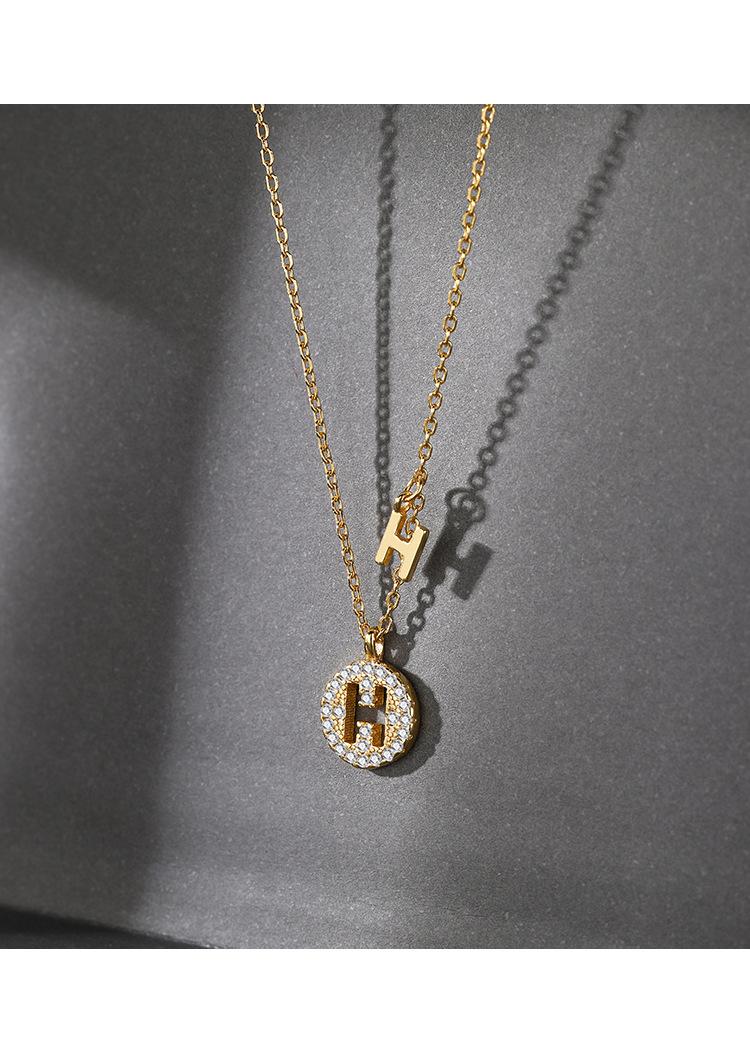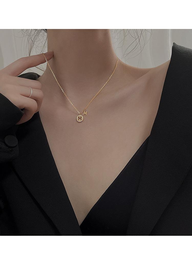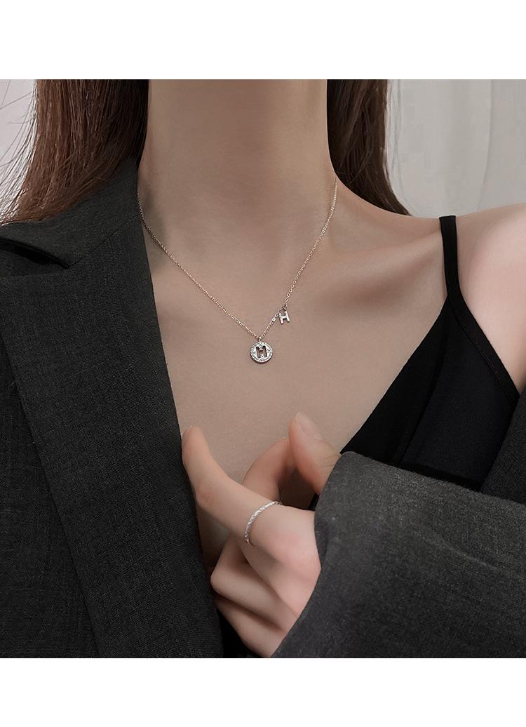 Collar con Colgante Redondo Simple con Letra H Estilo Coreano 2024 Nuevo Diseño Nicho para Mujer Cadena Clavicular Accesorios para Mujer Geométrico