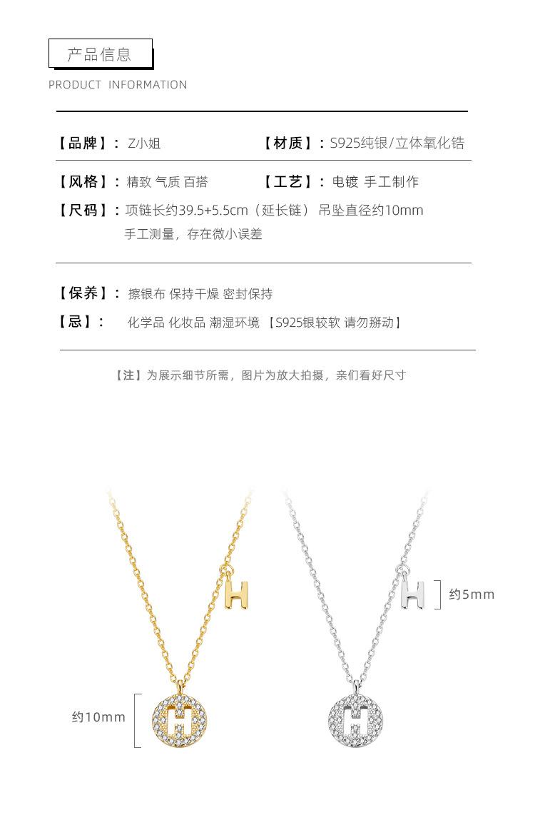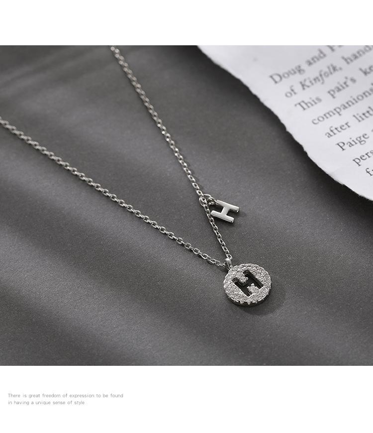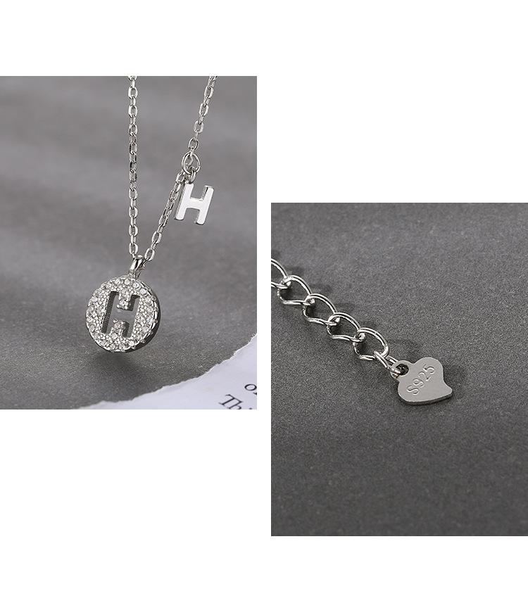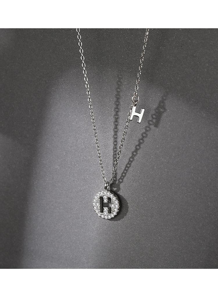 H letter micro inlay necklace Silver
